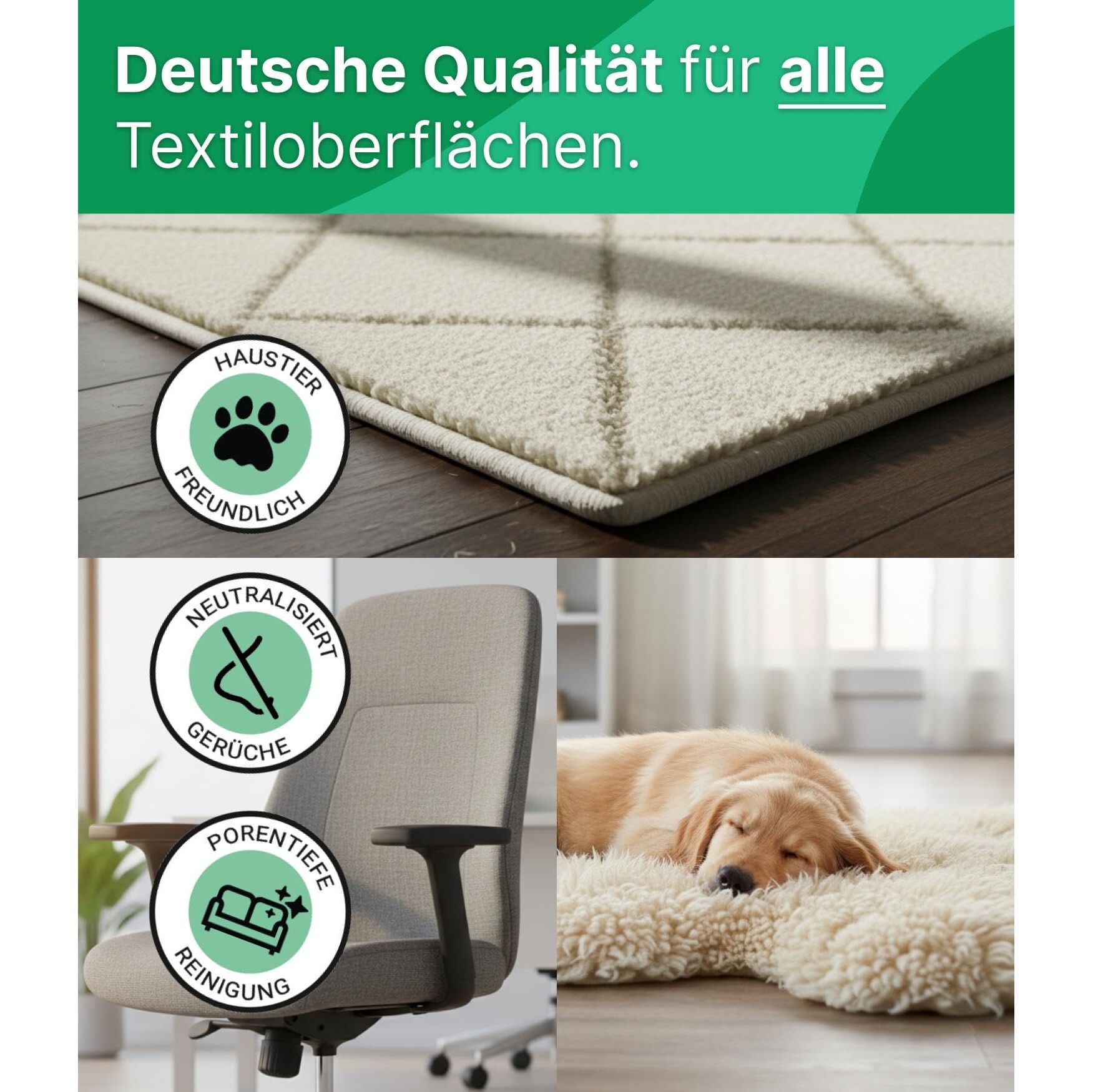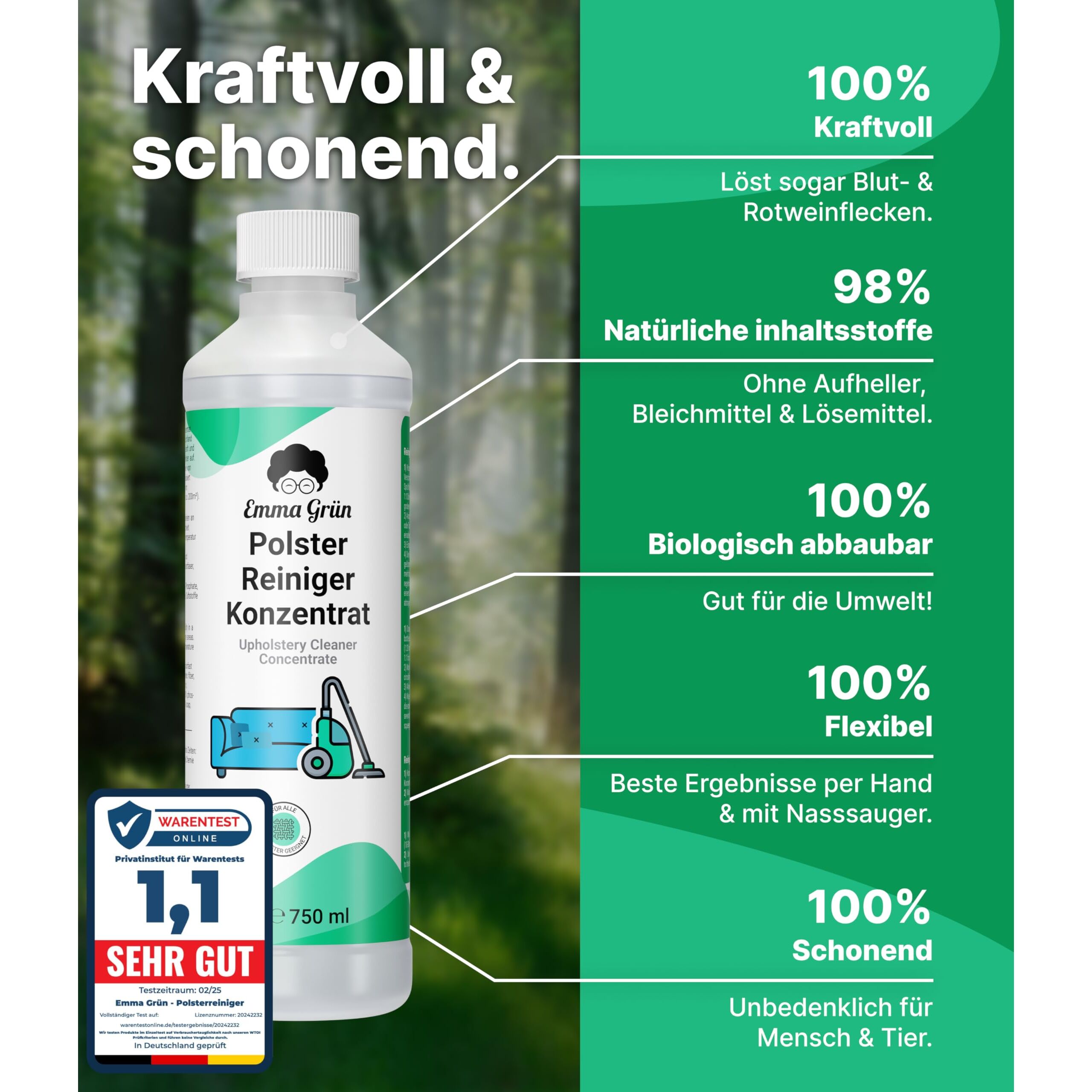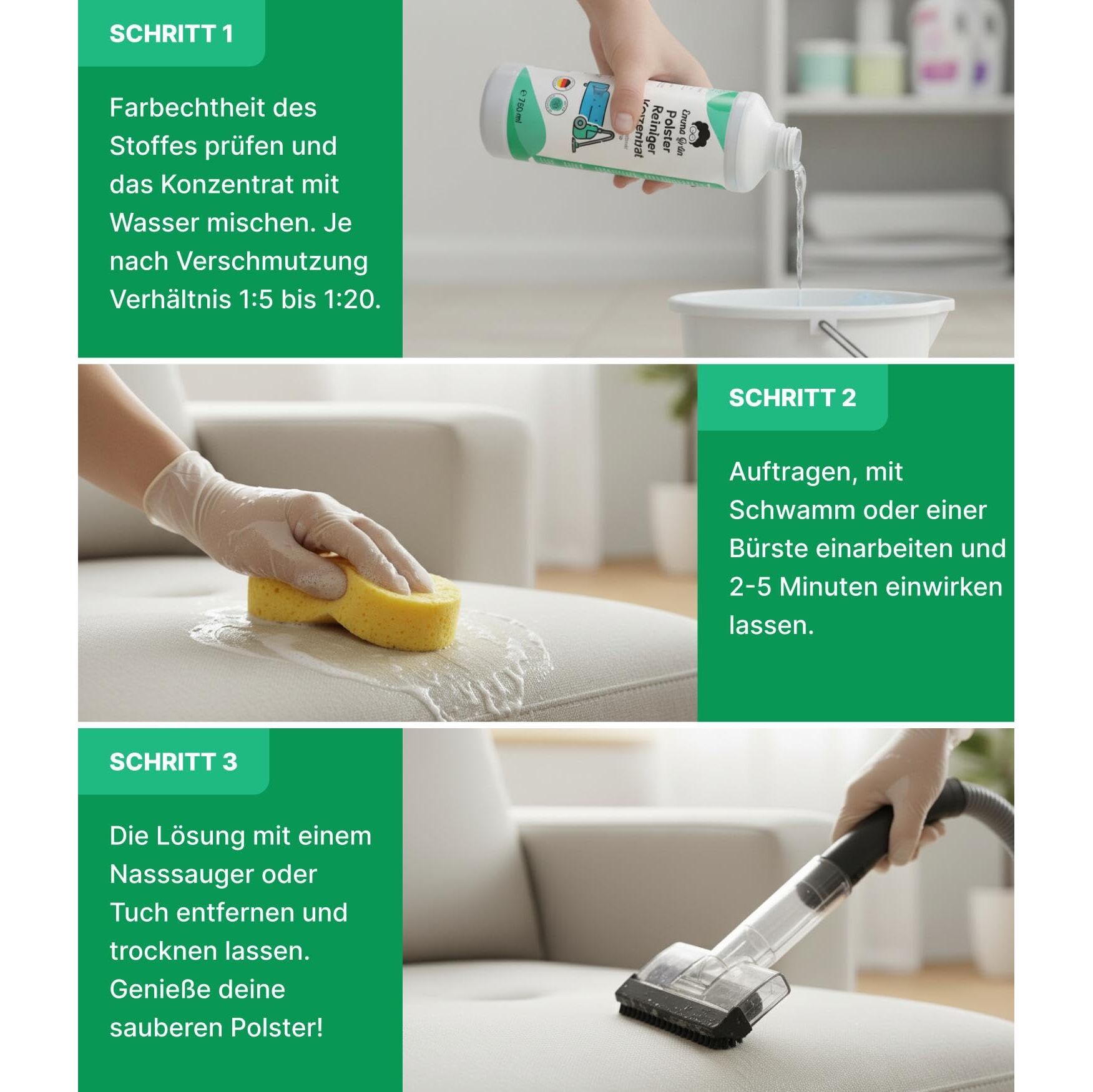 Emma Grün® Teppichreiniger & Polsterreiniger Konzentrat 750ml - Waschsauger Reinigungsmittel für Teppiche, Sofas & Textilien - Reinigungsmittel Nasssauger - Wirksame Polster Reinigung Made in Germany