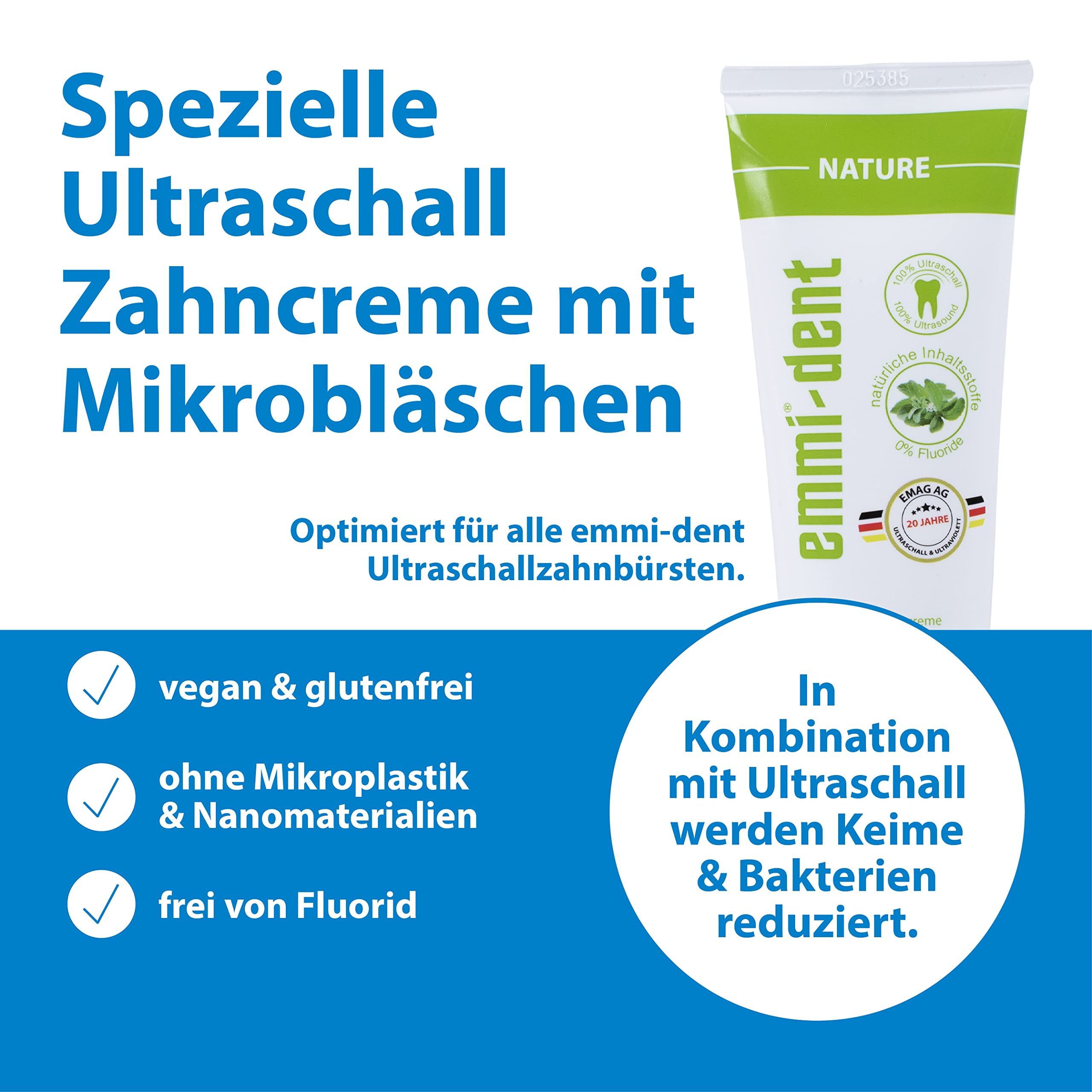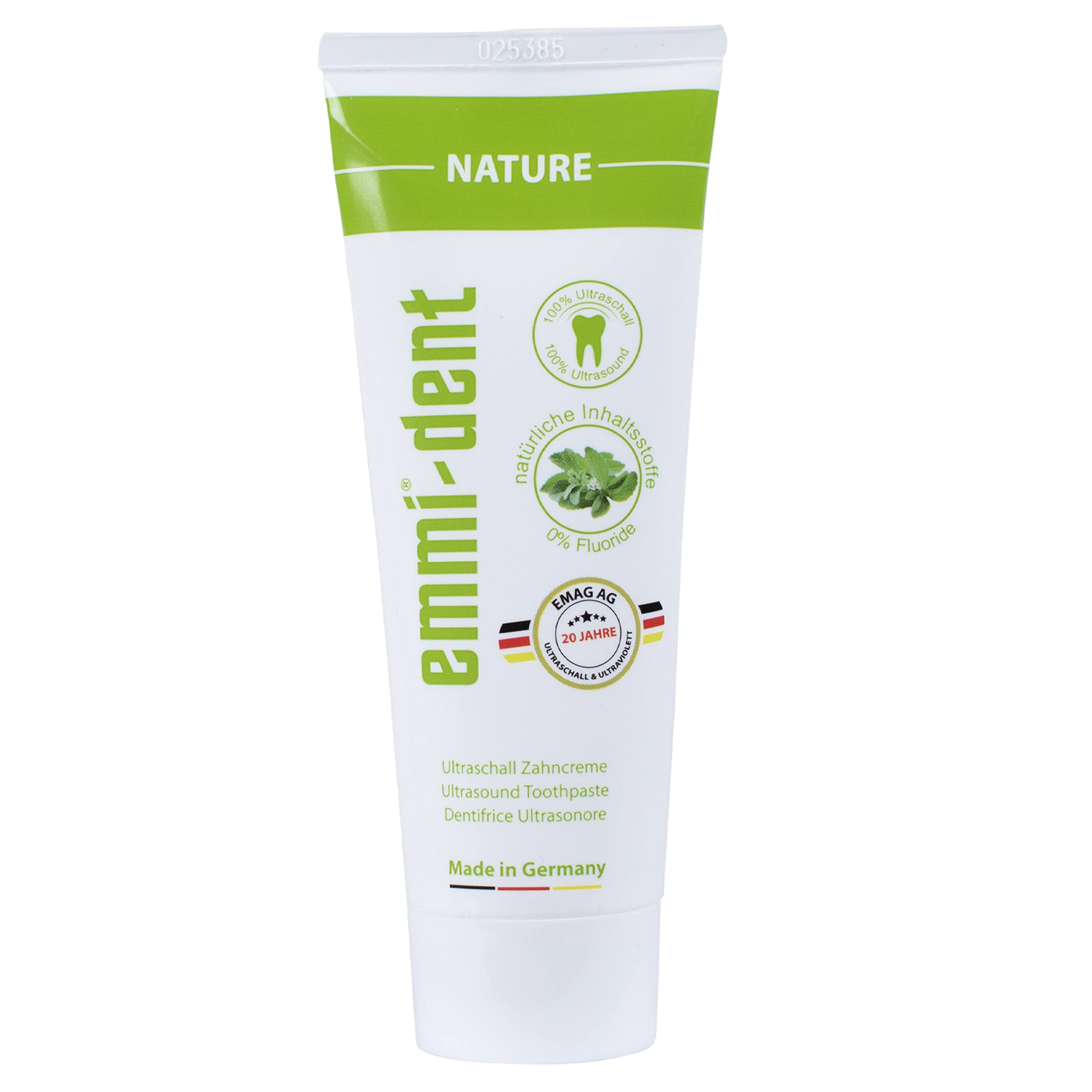 emmi-dent Ultraschall Zahncreme „Nature“ I Ideal für empfindliche Zähne und Zahnfleisch I Frei von Mikroplastik & Nanomaterialien I Vegan & glutenfrei I 1x 75 ml