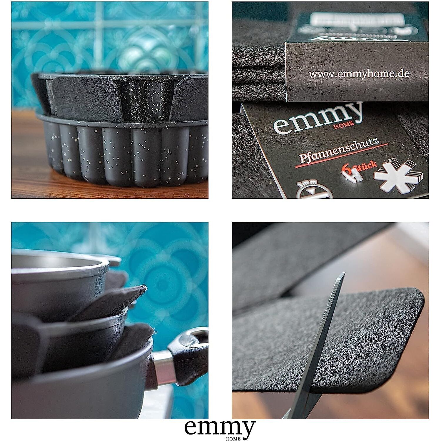 Emmy Home Pfannenschoner - Pfannenschutz Filz 5 Stück Stapelschutz, 38 cm Extra Dicke Topfuntersetzer Anpassbare Grösse Topfschoner (5er)