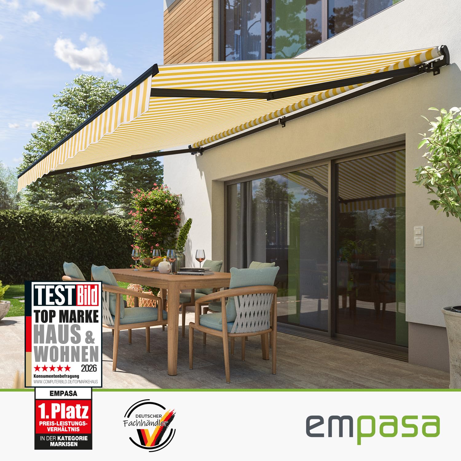 empasa manuelle Gelenkarmmarkise Markise Start Sonnenmarkise Sonnenschutz Alu/Polyester komplett vormontiert, in verschiedenen Grössen und Farben, Farbe:gelb/weiss gestreift, Grösse:350 x 250