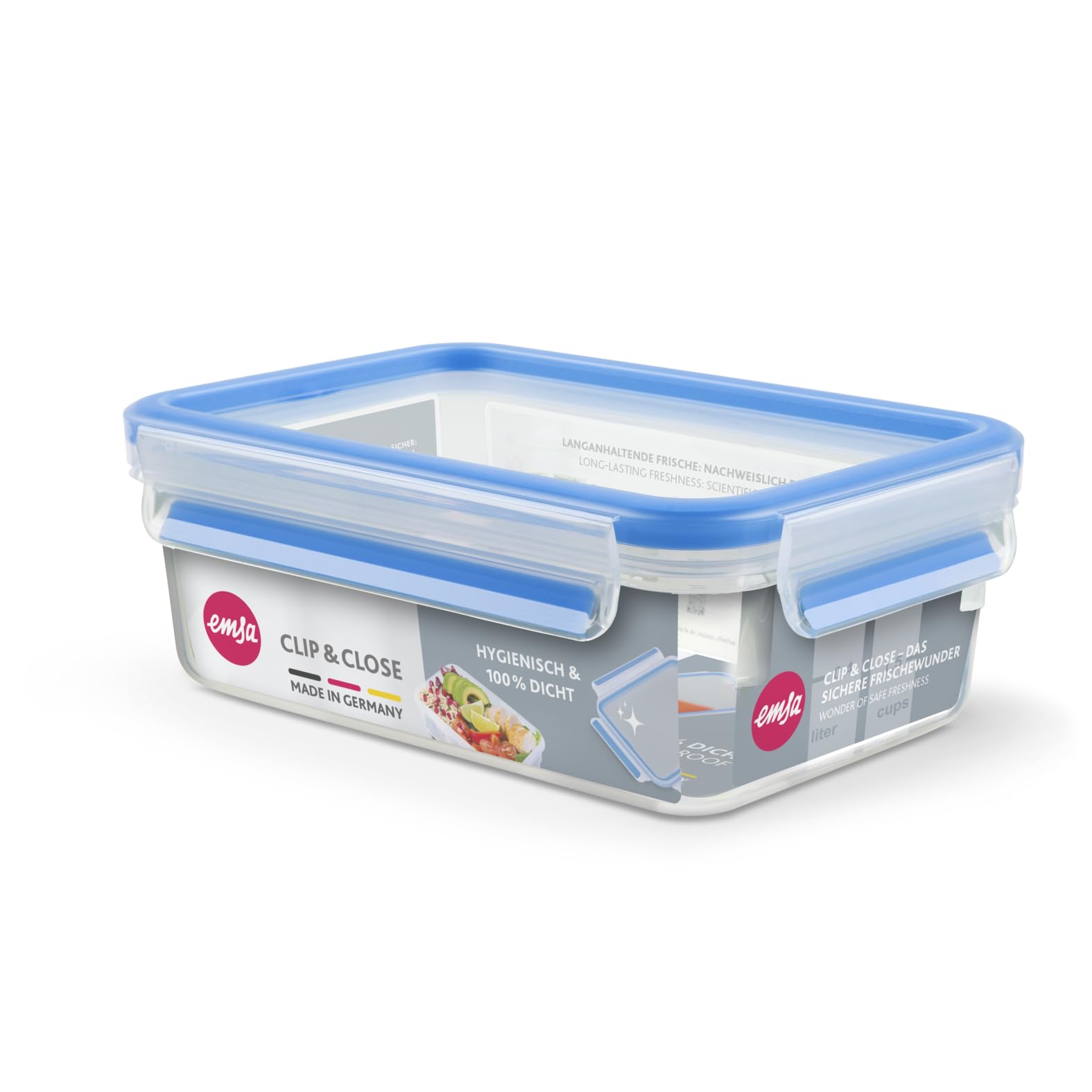 Mit den CLIP & CLOSE Frischhaltedosen bleiben Lebensmittel länger frisch. Die praktische CLIP & CLOSE Frischhaltedose hält Lebensmittel länger frisch - die besondere EMSA Frische-Dichtung macht's möglich. Sie ist zu 100 Prozent dicht, frei von BPA und wird im EMSA Werk in Deutschland hergestellt. 100 Prozent dichte, robuste und absolut hygienische Frischhaltedosen aus Deutschland. Frische garantiert. Ihre Lebensmittel bleiben länger frisch, dank der besonderen, eingespritzten EMSA Frische-Dichtung. ideale Frischhaltung, kein Eindringen externer Gerüche. Frische-Dichtung Dichtung und Deckel sind fest miteinander verbunden. Keine Zwischenräume, keine Keime. Absolut keimfrei, dank eingespritzter Frische-Dichtung. 100 Prozent auslaufsicher, dank Dichtungstechnologie. Höherer Dichtungsdruck für optimalen Schutz. Mikrowellengeeignet. Ideale Frischhaltung, transportsichere und hygienische Frischhaltedose. Ideal zum Frischhalten, Aufbewahren und Transportieren von Lebensmitteln. Qualität und Design made in Germany.