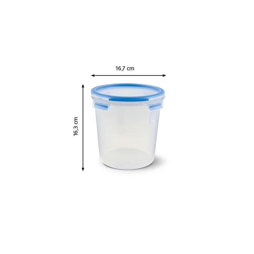 EMSA Clip & Close Frischhaltedose, rund, 2,0 L, Aufbewahrungsbox, 100 Prozent dicht, spülmaschinen-, gefrier-, mikrowellenfest, Transparent, Blau, Made in Germany, 508553