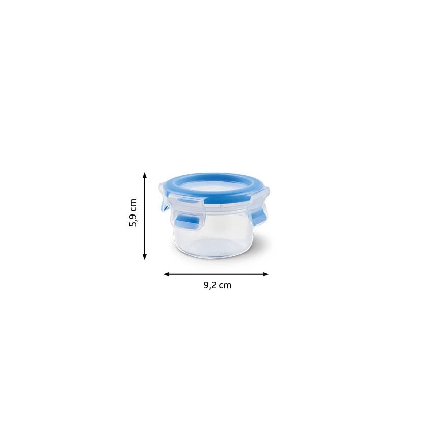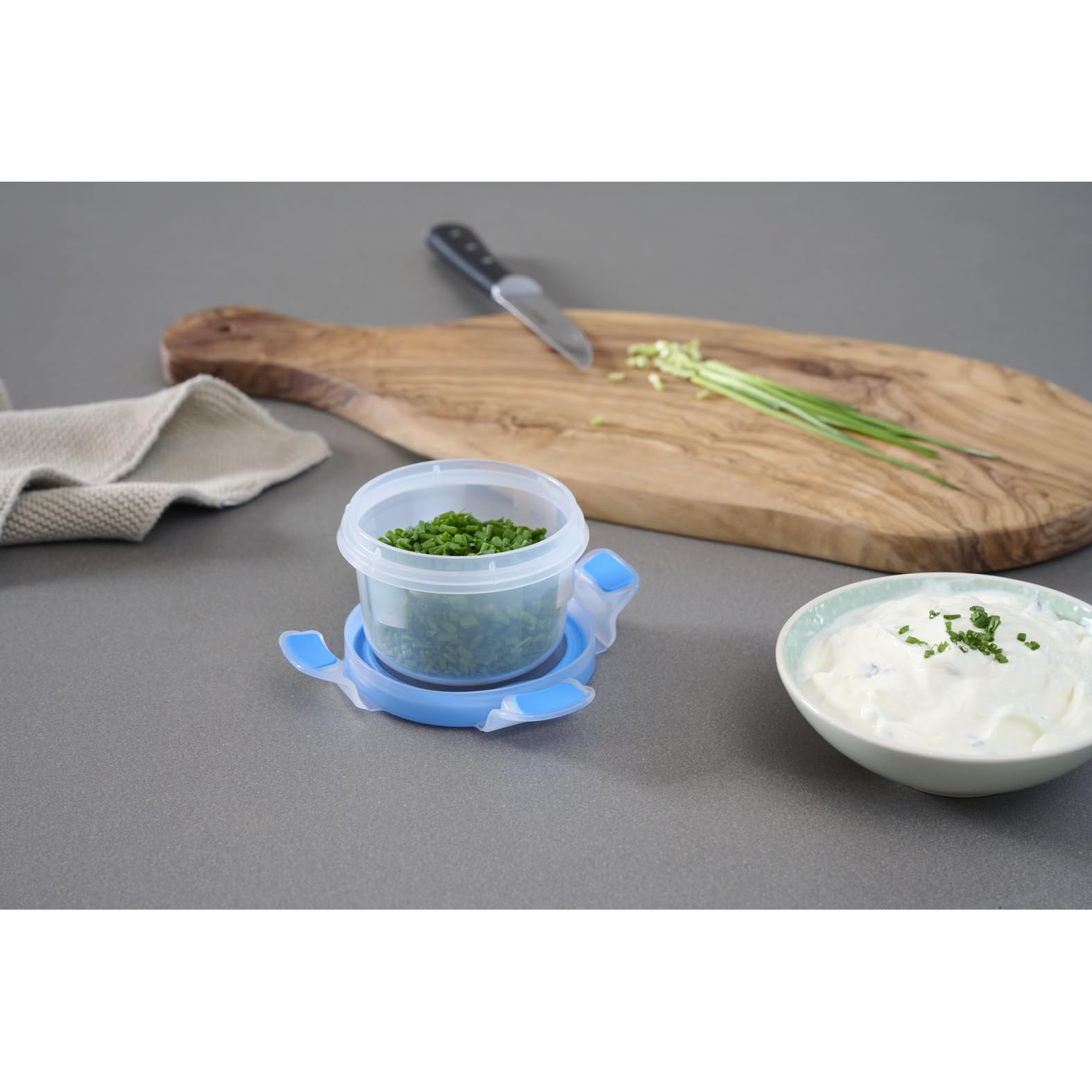 EMSA Clip & Close Frischhaltedose, rund, 0,15 L, Aufbewahrungsbox, 100 Prozent dicht, spülmaschinen-, gefrier-, mikrowellenfest, Transparent, Blau, Made in Germany, 508550