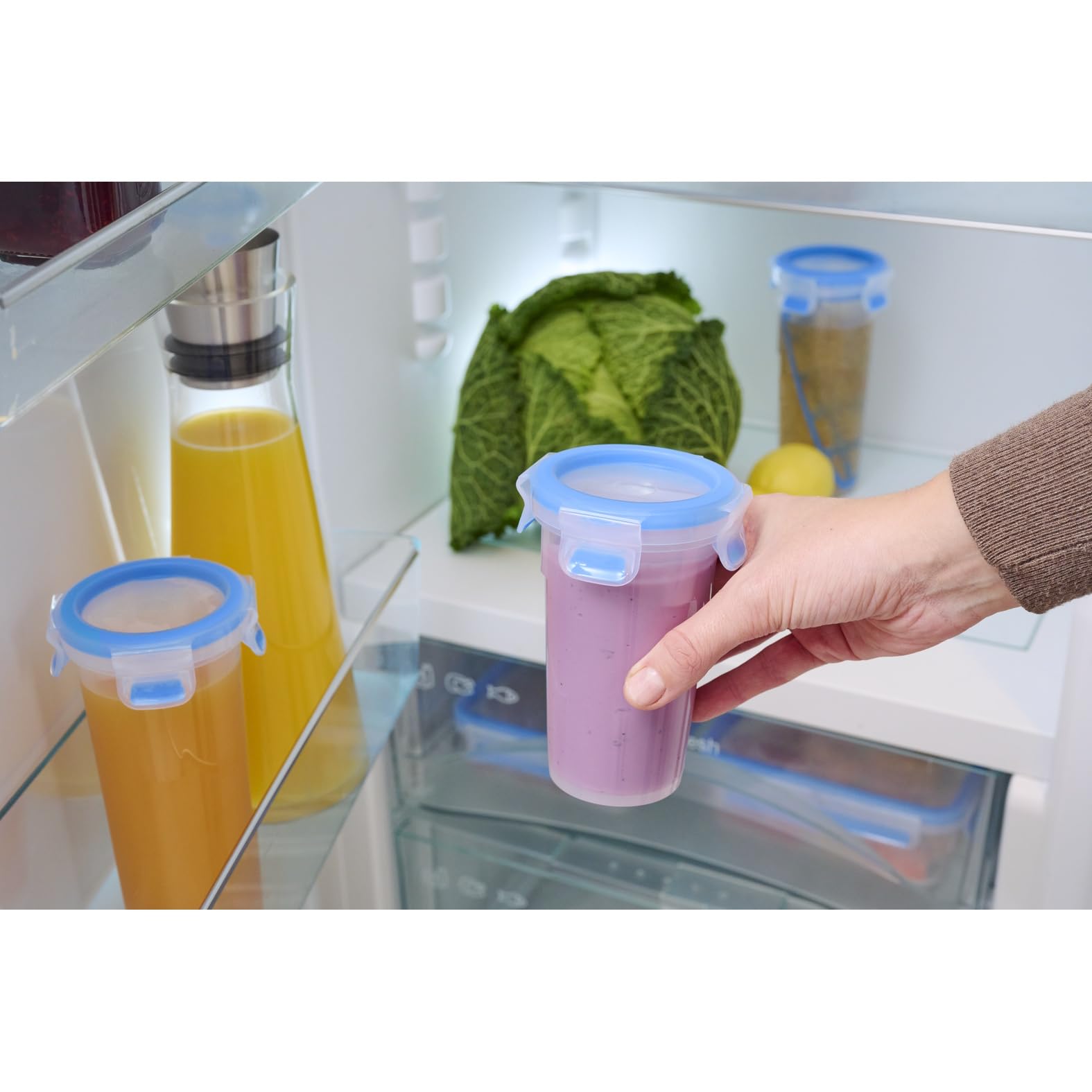 EMSA Clip & Close Frischhaltedose, rund, 0,35 L, Aufbewahrungsbox, 100 Prozent dicht, spülmaschinen-, gefrier-, mikrowellenfest, Transparent, Blau, Made in Germany, 508551