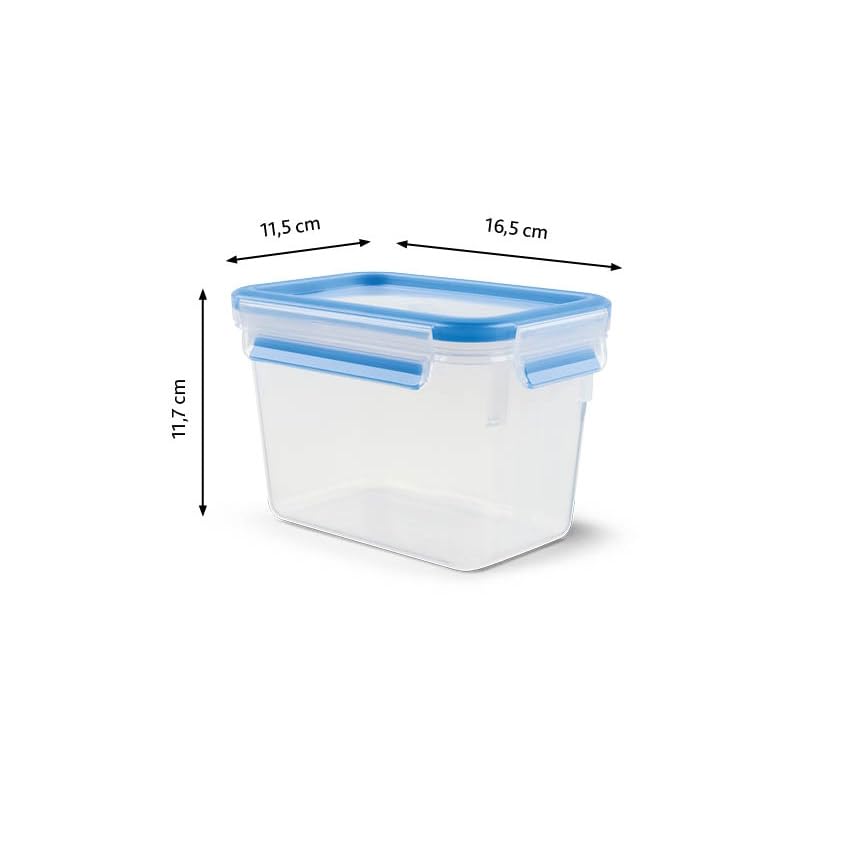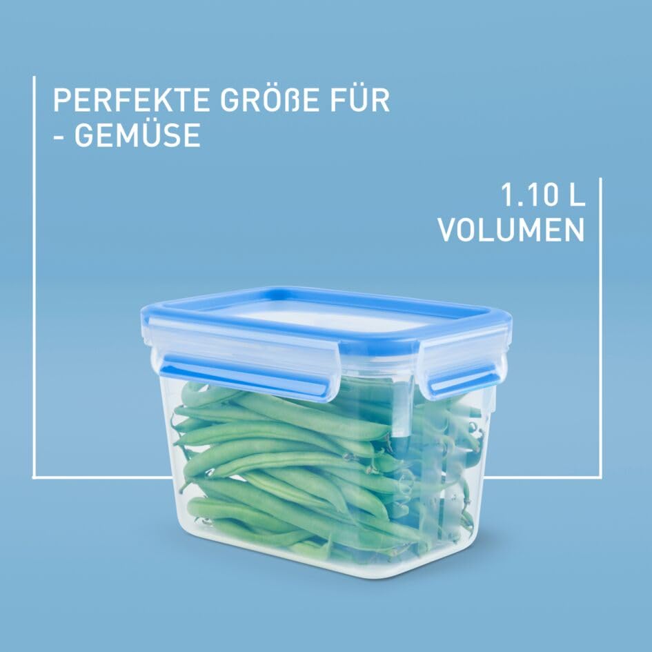 EMSA Clip & Close Frischhaltedose, rechteckig, 1,1 L, mit Deckel, Aufbewahrungsbox, 100 Prozent dicht, spülmaschinen-, gefrier-, mikrowellenfest, Transparent, Blau, Made in Germany, 508541