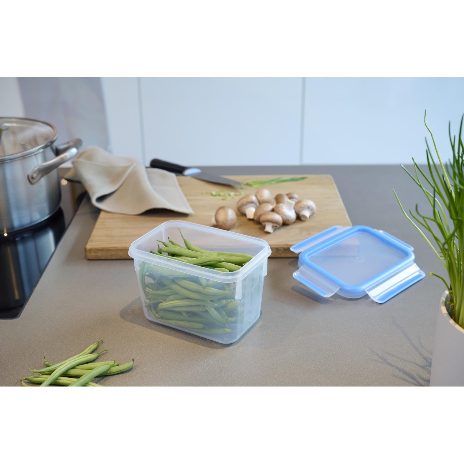 Langere frisheid voor thuis – Ken je ook het probleem? Je koopt verse groenten en fruit, bewaar het in de koelkast en vergeet het daar. Met de Emsa vershoudbox Clip & Close bewaar je nu levensmiddelen langer vers. Dankzij de afdichting blijft vers langer vers. Anders dan bij conventionele afdichtingen is de EMSA versheidsafdichting onlosmakelijk met het deksel verbonden en volledig in het deksel gespoten. Het resultaat: geen tussenruimtes waar ziektekiemen kunnen hechten, en dus een langer aanhoudende frisheid (wetenschappelijk bevestigd houden aardbeien bijvoorbeeld tot 14 dagen vers). - 100% dicht voor onderweg: praktisch en comfortabel neem je eten eenvoudig mee naar kantoor. Of het nu gaat om yoghurt, soep of saus - met de vershouddoos van Emsa transporteer je vloeistoffen lekvrij in de tas naast de laptop door de innovatieve vershoudafdichting. - 100% Made in Germany - 100% in Duitsland gemaakt belooft de Emsa vershouddoos de hoogste kwaliteit. Met een temperatuurbereik van -40 graden tot +110 graden is de doos de perfecte keukenhulp. Om dit te doen, kun je de blikjes eenvoudig in de vaatwasser steken. Om het voedsel eenvoudig warm te maken, pak je het blik en het deksel in de magnetron. Vries gerechten bovendien direct in het blikje. AV52 LÄNGERE FRISCHE FÜR ZUHAUSE - Kennen Sie auch das Problem? Sie kaufen frisches Gemüse und Obst, lagern es im Kühlschrank und vergessen es dort. Mit der Emsa Frischhaltebox CLIP & CLOSE bewahren Sie nun Lebensmittel länger frisch auf. Dank der Dichtung bleibt Frisches länger frisch. Anders als bei herkömmlichen Dichtungen ist die EMSA Frischedichtung untrennbar mit dem Deckel verbunden und lückenlos in den Deckel eingespritzt. Das Ergebnis: Keine Zwischenräume, in denen Keime haften können, und somit eine länger anhaltende Frische (Wissenschaftlich bestätigt halten Erdbeeren zum Beispiel bis zu 14 Tage frisch). - 100% DICHT FÜR UNTERWEGS - Praktisch und komfortabel nehmen Sie Ihr Essen einfach mit ins Büro. Ob Joghurt, Suppe oder Sauce - mit der Frischhaltebox von Emsa transportieren Sie Flüssigkeiten auslaufsicher in der Tasche neben dem Laptop durch die innovative Frischedichtung. - 100% MADE IN GERMANY - 100 % in Deutschland gefertigt verspricht die Emsa Frischhaltebox höchste Qualität. Mit einem Temperaturbereich von - 40 Grad bis + 110 Grad ist die Dose der perfekte Küchenhelfer. Zur können Sie die Dosen einfach problemlos in die Spülmaschine stecken. Zum unkomplizierten Warmmachen der Speisen packen Sie die Dose und den Deckel in die Mikrowelle. Frieren Sie Speisen zudem direkt in der Dose ein. AV52Evde daha uzun taze – problemi siz de biliyor musunuz? Taze sebze ve meyve satın alırsınız, buzdolabında saklayın ve orada unutun. Emsa Clip & CLOSE saklama kutusu ile yiyecekleri daha uzun süre taze tutabilirsiniz. Conta sayesinde taze daha uzun süre taze kalır. Geleneksel contaların aksine, EMSA taze sızdırmazlık kapağa ayrılmaz şekilde bağlanır ve boşluksuz bir şekilde kapağa enjekte edilmiştir. Sonuç: Mikropların yapışabileceği boşluk yoktur ve böylece daha uzun süre kalıcı tazelik sağlar (çilekleri örneğin 14 güne kadar taze tutar). - Yolculuk için %100 sızdırmaz - Pratik ve konforlu, yemeklerinizi kolayca ofise götürebilirsiniz. İster yoğurt, çorba veya sos olsun - Emsa saklama kutusu ile sıvıları sızdırmaz şekilde dizüstü bilgisayarınızın yanındaki sızdırmaz bir şekilde taşıyabilirsiniz. - %100 Almanya'da üretilmiştir - %100 Almanya'da üretilmiş Emsa saklama kutusu en yüksek kaliteyi vaat eder. 40 derece ila + 110 derece sıcaklık aralığıyla bu kutu mükemmel bir mutfak yardımcısıdır. Bu kutular kolayca bulaşık makinesinde yıkanabilir. Yemeklerin kolay ısınması için kutuyu ve kapağı mikrodalga fırına koyun. Ayrıca yiyecekleri doğrudan kutunun içinde dondurun. AV52 Delší svěžest pro domov – Znáte také problém? Kupujete čerstvou zeleninu a ovoce, ukládejte ji v ledničce a zapomeňte na to. S boxem na uchovávání čerstvých potravin Emsa Crush & Clouse nyní uchováte potraviny déle čerstvé. Díky těsnění zůstává čerstvý vzduch déle čerstvý. Na rozdíl od běžných těsnění je těsnicí těsnění EMSA neoddělitelně spojené s víkem a bez problémů vstřikované do víka. Výsledek: žádné meziprostory, ve kterých mohou zadržovat zárodky, a tak déle trvající svěžest (vědecky potvrzeno například jahody až 14 dní čerstvý). - 100% těsné na cesty – praktické a pohodlné jídlo jednoduše do kanceláře. Ať už jogurt, polévku nebo omáčku – s boxem pro udržení čerstvosti od Emsa transportujete tekutiny v tašce vedle notebooku díky inovativnímu těsnění čerstvosti. - 100% vyrobeno v Německu – 100% vyrobeno v Německu slibuje box na uchovávání čerstvých potravin Emsa nejvyšší kvalitu. S teplotním rozsahem od – 40 stupňů do + 110 stupňů je tato dóza perfektním kuchyňským pomocníkem. Dózy můžete jednoduše bez problémů vložit do myčky. Pro snadné zahřátí pokrmů zabalte dózu a víko do mikrovlnné trouby. Přímo zmrazte pokrmy přímo v dóze. AV52. Longer freshness at home - do you know the problem? You buy fresh vegetables and fruit, store it in the fridge and forget about it. With the Emsa Clip & Close, you can now keep food fresh for longer. Thanks to the seal, food stays fresh for longer. Unlike conventional seals, EMSA's freshness seal is inseparably connected to the lid and completely injected into the lid. The result: No gaps in which germs can stick and thus a longer lasting freshness (scientifically proven to keep strawberries fresh for up to 14 days, for example). - 100% leak-proof for on the go – practical and comfortable for taking your food with you to the office. Whether yoghurt, soup or sauce - with the food storage container from Emsa you can transport liquids leak-proof in the bag next to the laptop thanks to the in