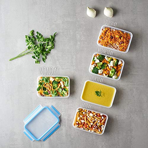 EMSA Clip & Close Frischhaltedosen-Set, rechteckig, 5 X 0,8 L, Aufbewahrungsboxen, 100 Prozent dicht, spülmaschinen-, gefrier-, mikrowellenfest, Transparent, Blau, Made in Germany, N10307