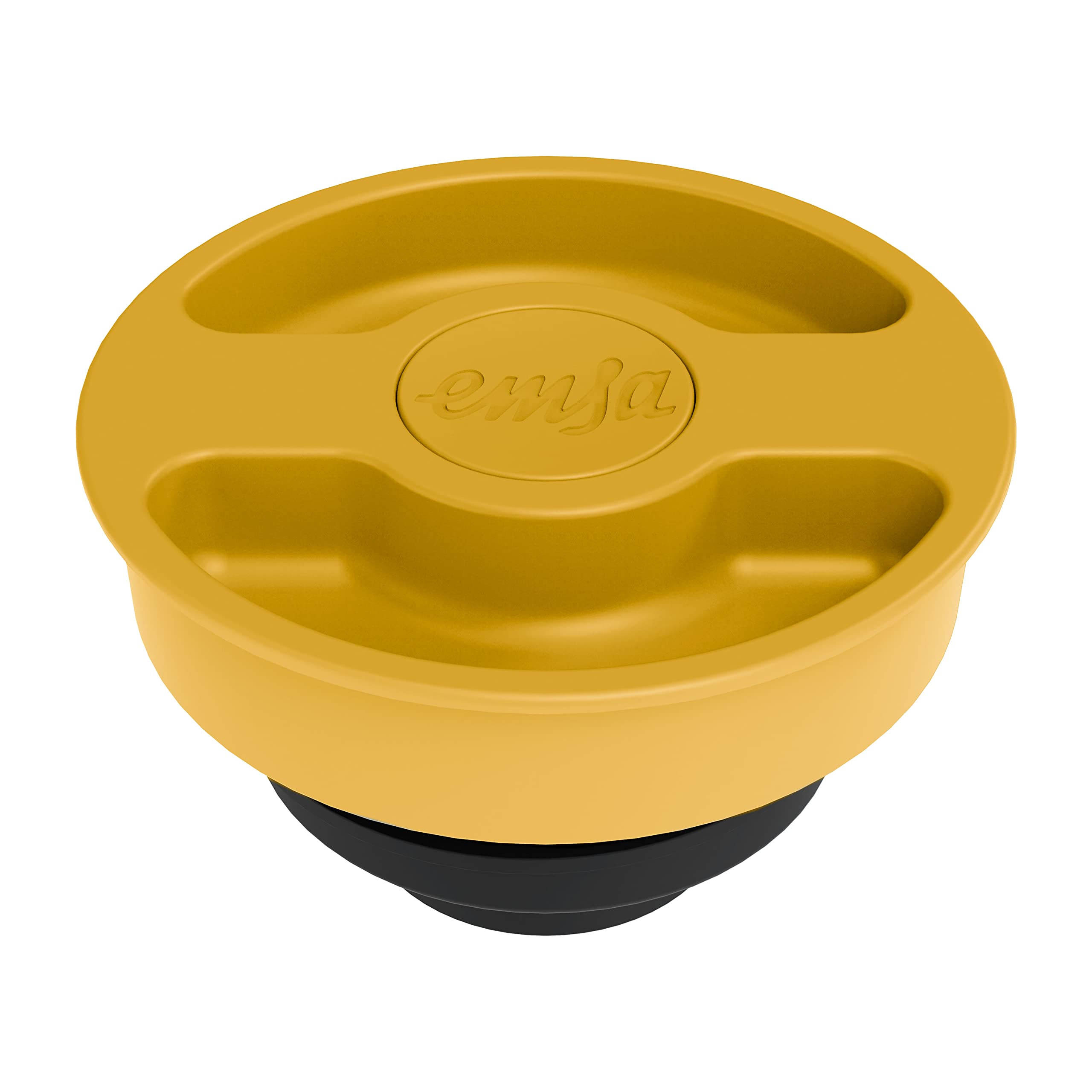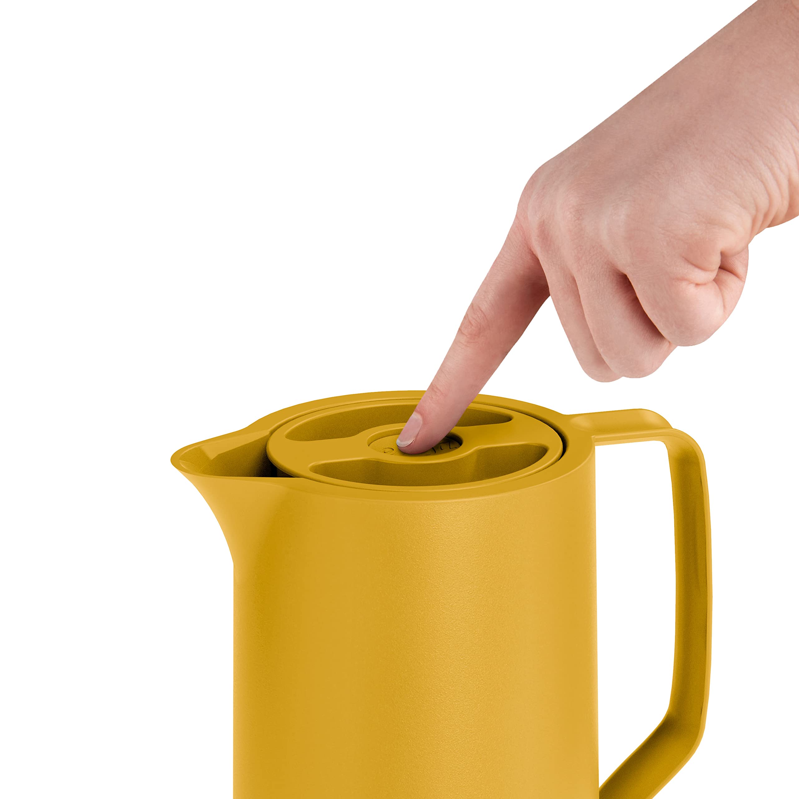 Emsa Motiva Isolierkanne, Thermoskanne 1 Liter, Quick-Press-Verschluss, lange Wärmespeicherung, 12h heiss, 24h kalt, auslaufsicher, Glaskolben, Kaffeekanne, Made in Germany, gelb, N41708