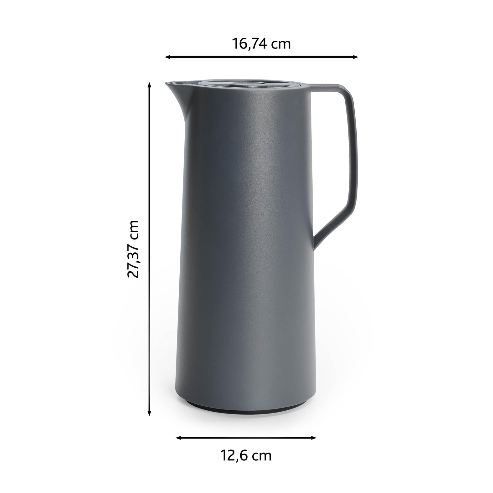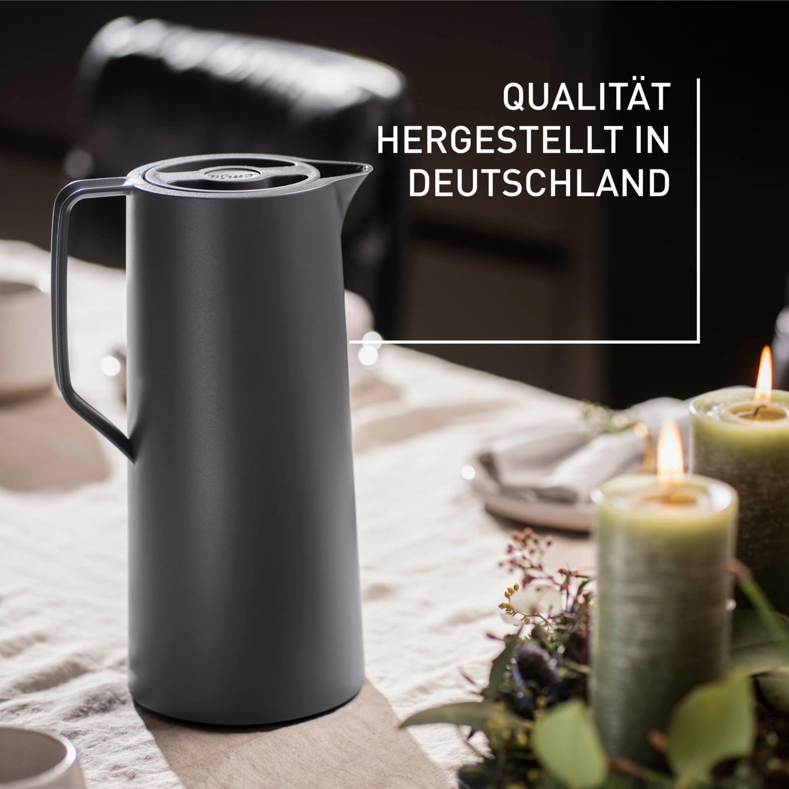Emsa Motiva Thermoskanne 1l, Isolierkanne mit Quick-Press-Verschluss, 12h heiss, 24h kalt, Glaskolben, Made in Germany, Teekanne Thermo, Nordisches Design, anthrazit, N41701
