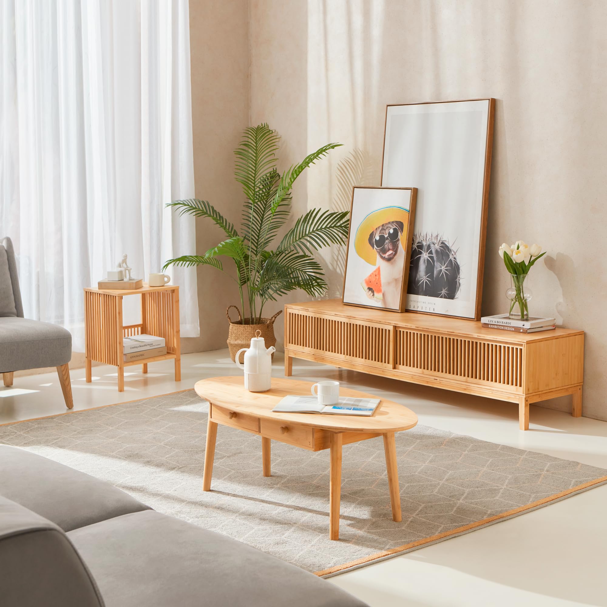 Dieser vielseitige Bambustisch eignet sich nicht nur als Beistelltisch, sondern auch hervorragend als Nachttisch in Ihrem Schlafzimmer. Hier können Sie Ihre Nachtlektüre, eine Tasse Tee oder andere Dinge bequem in Reichweite aufbewahren. Die praktische Ablage sorgt dafür, dass Ihr Schlafzimmer aufgeräumt und gut organisiert bleibt.