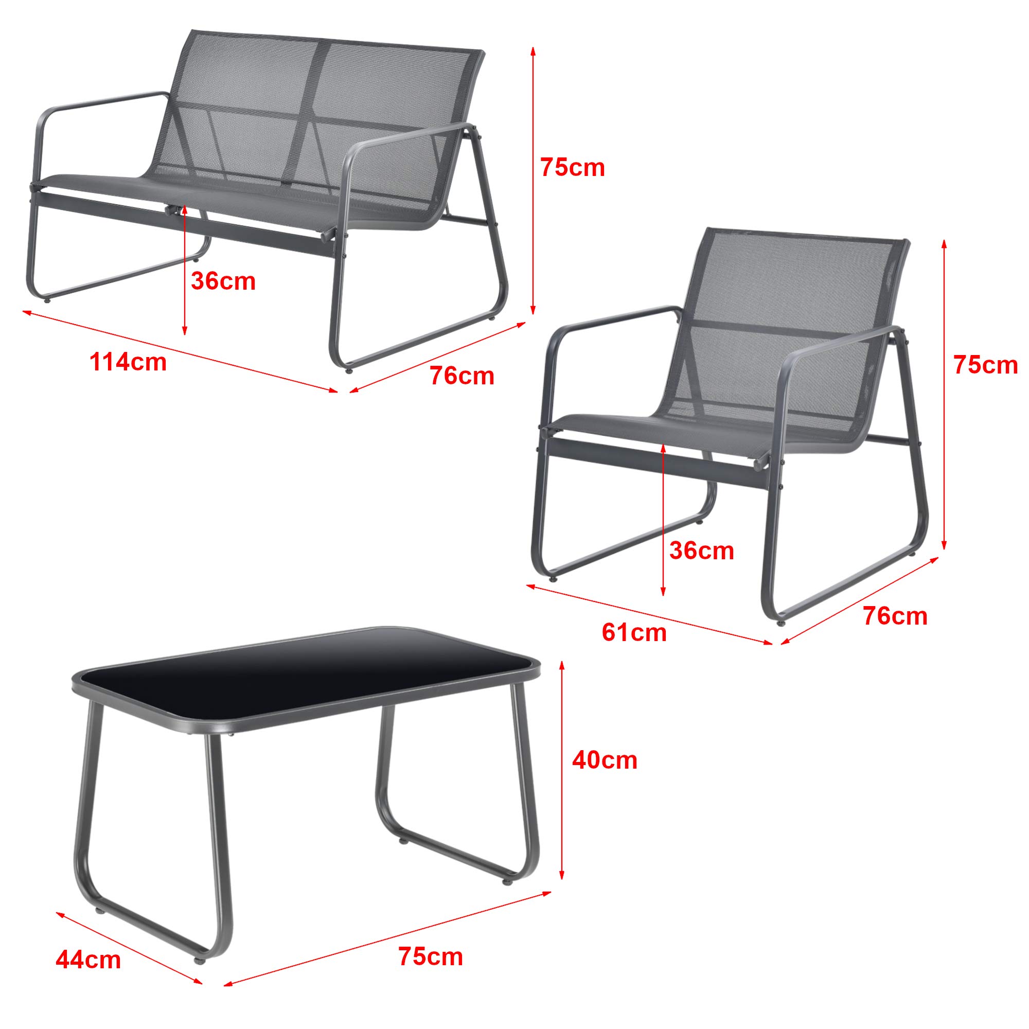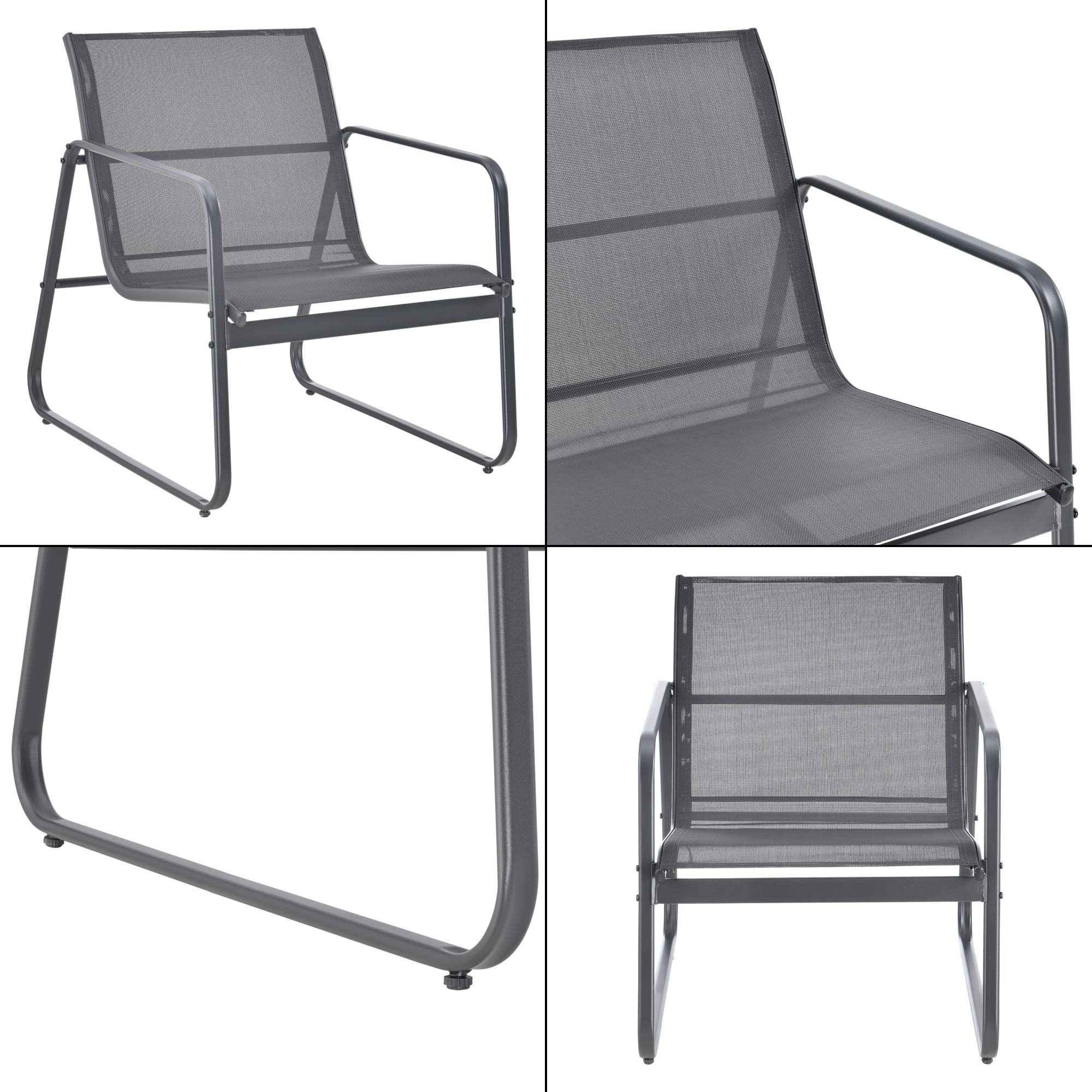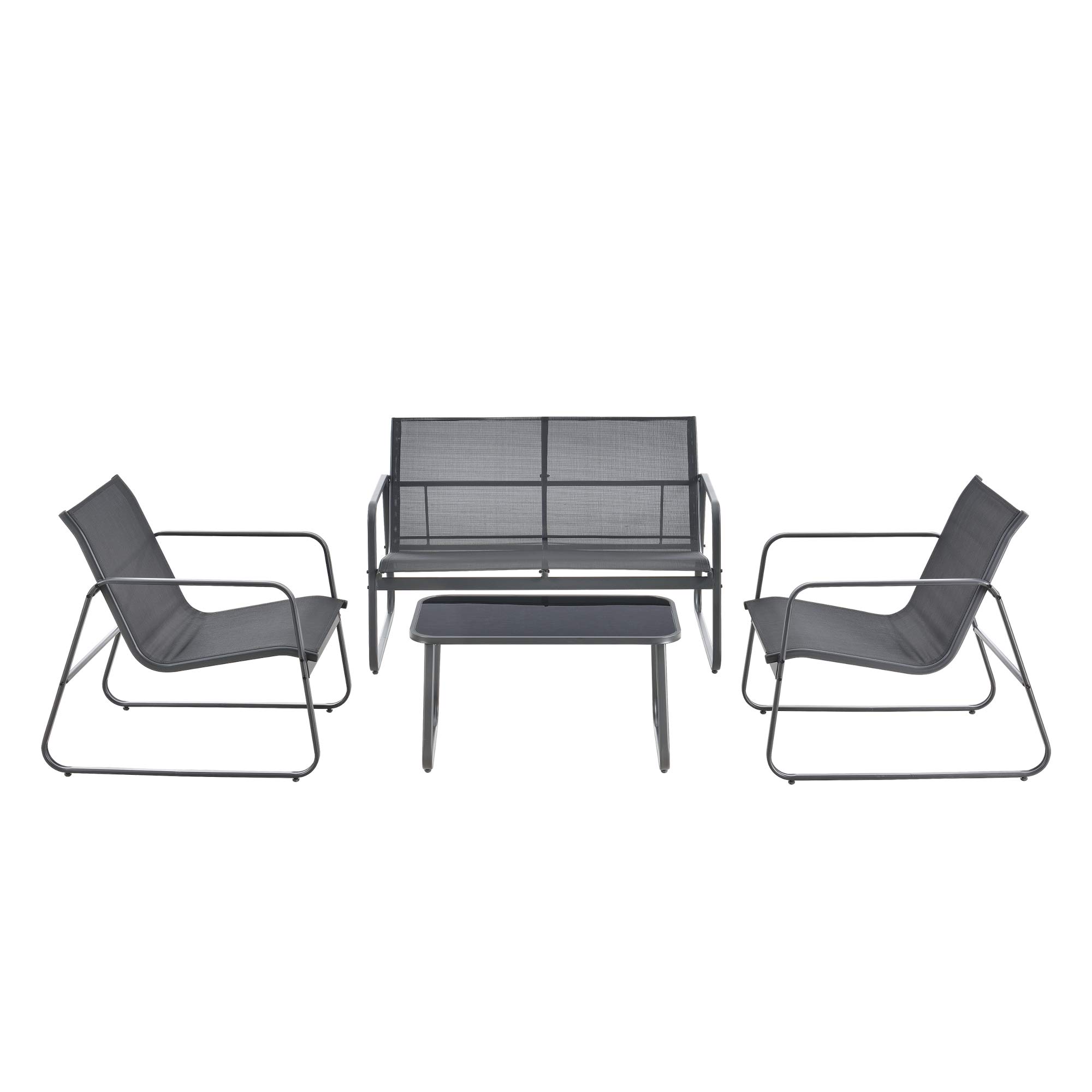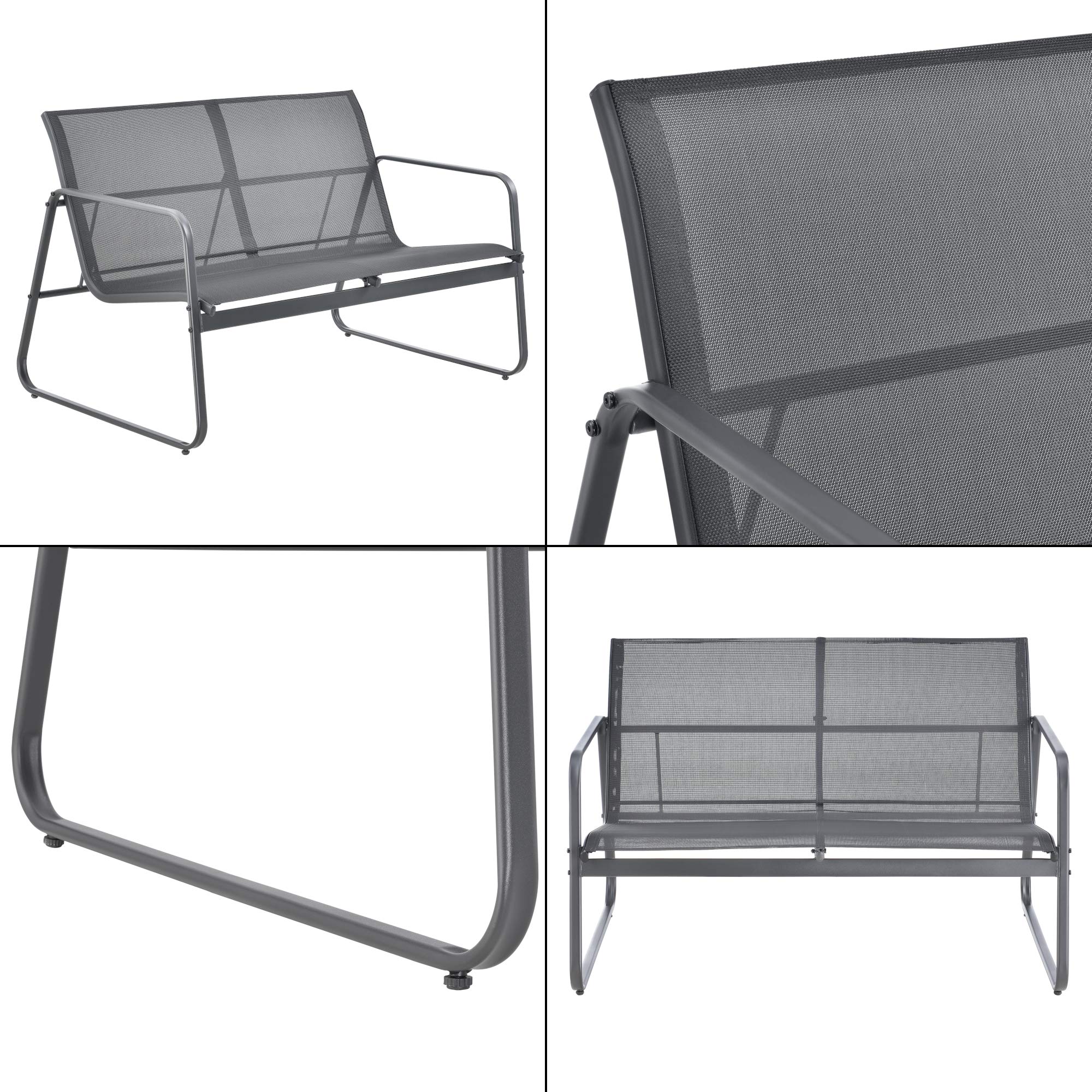 [en.casa] Gartenmöbelset Palencia Sitzgruppe Gartengarnitur Sitzbank für 2 Personen mit Couchtisch Gestell aus Stahl Dunkelgrau Schwarz