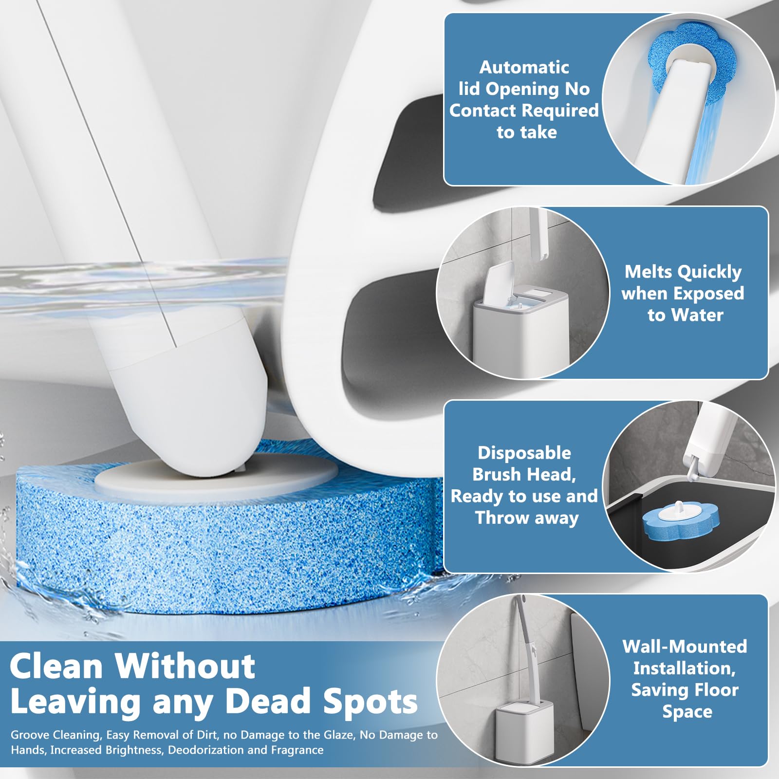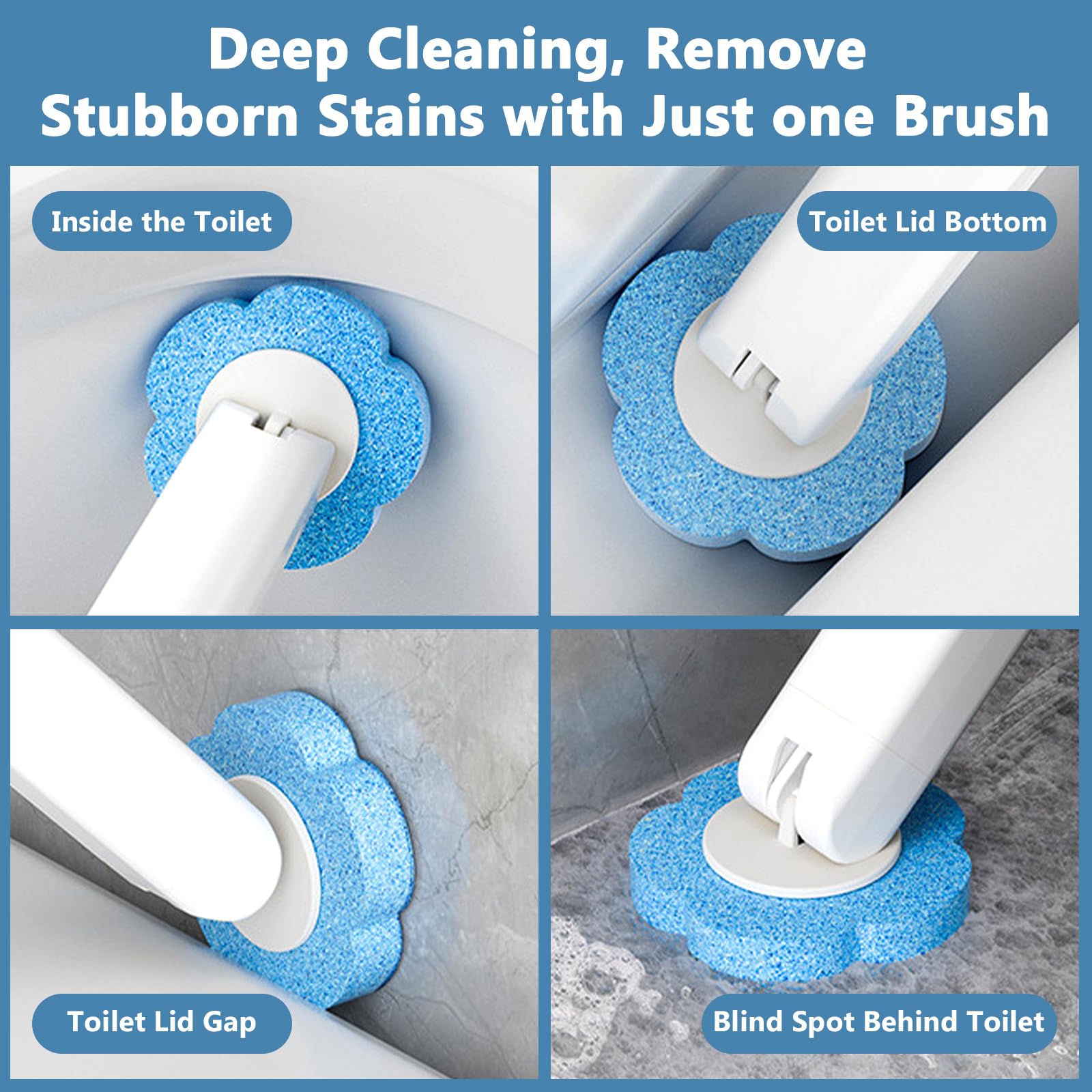 • ????????RUNDUM-REINIGUNG OHNE TOTE ECKEN: Einweg-Toilettenbürste verfügt über einen flexiblen Schwamm-Reinigungskopf, mit dem Kanten, Ecken, Rohre, Rillen und andere schwer zu reinigende Stellen problemlos entfernt werden können, sodass keine toten Ecken zum Reinigen übrig bleiben.