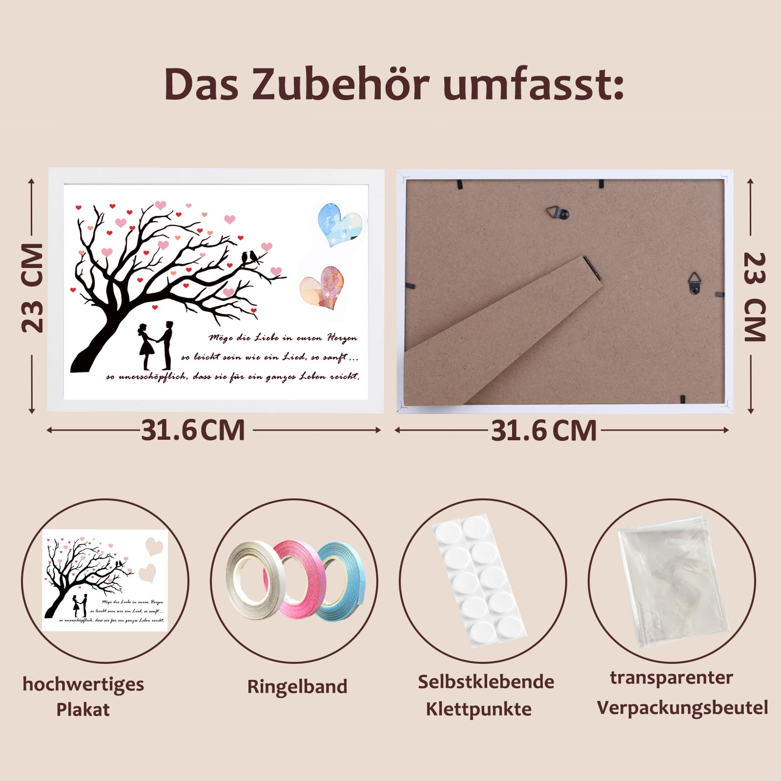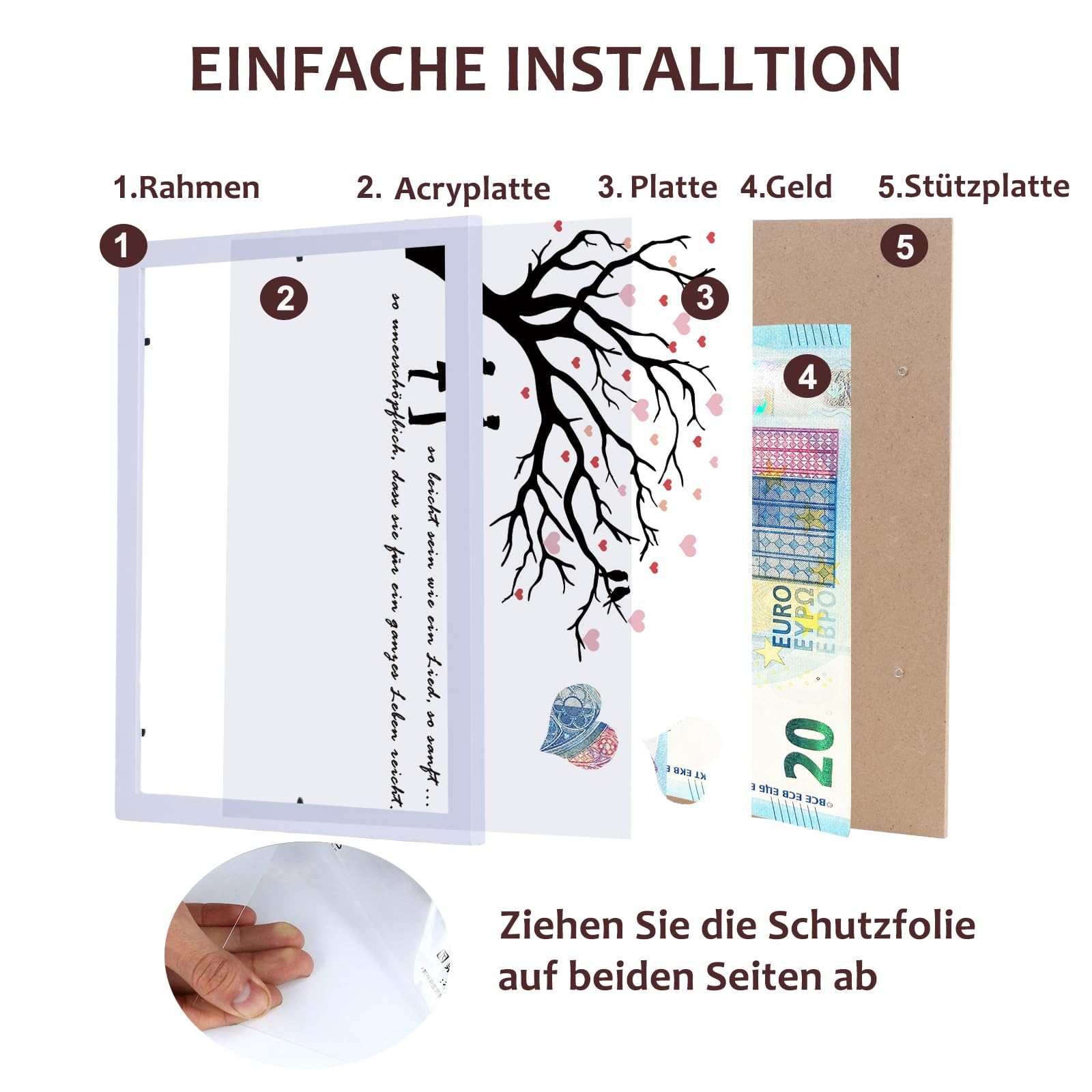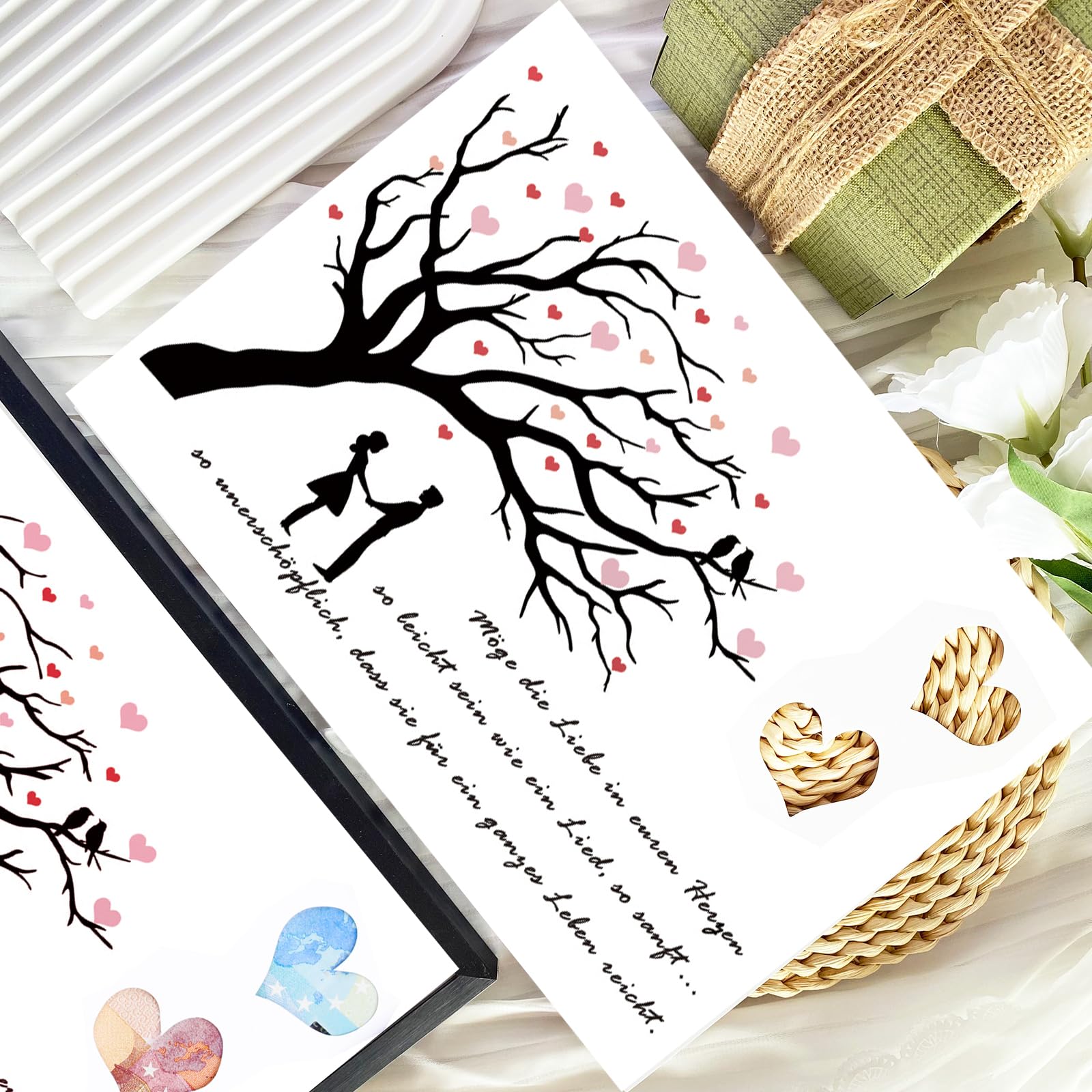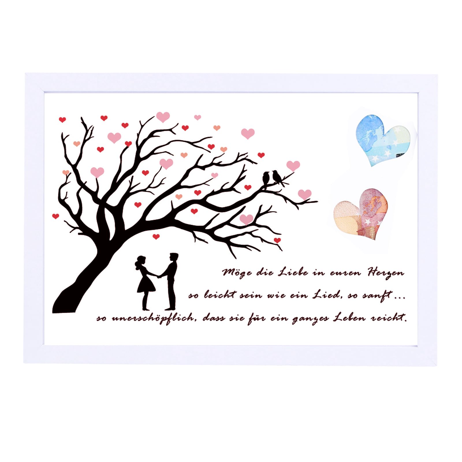 EngGlück Hochzeitsgeschenke für Brautpaar, Geldgeschenk Hochzeit Bilderrahmen, Lustige Geldgeschenke zur Hochzeit Geldbaum Hochzeitsgeschenk Geld ideen Grösse Din A4 Weiss (Weiss-Tree of Life)