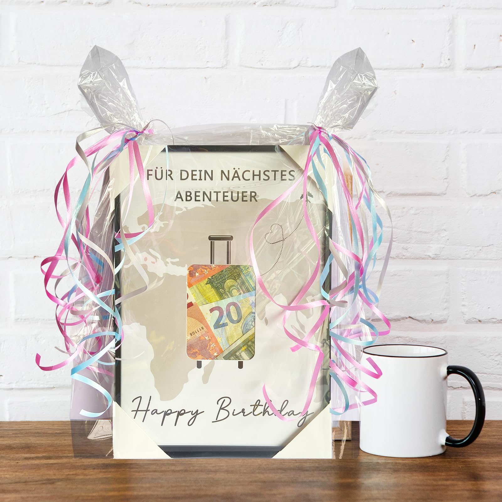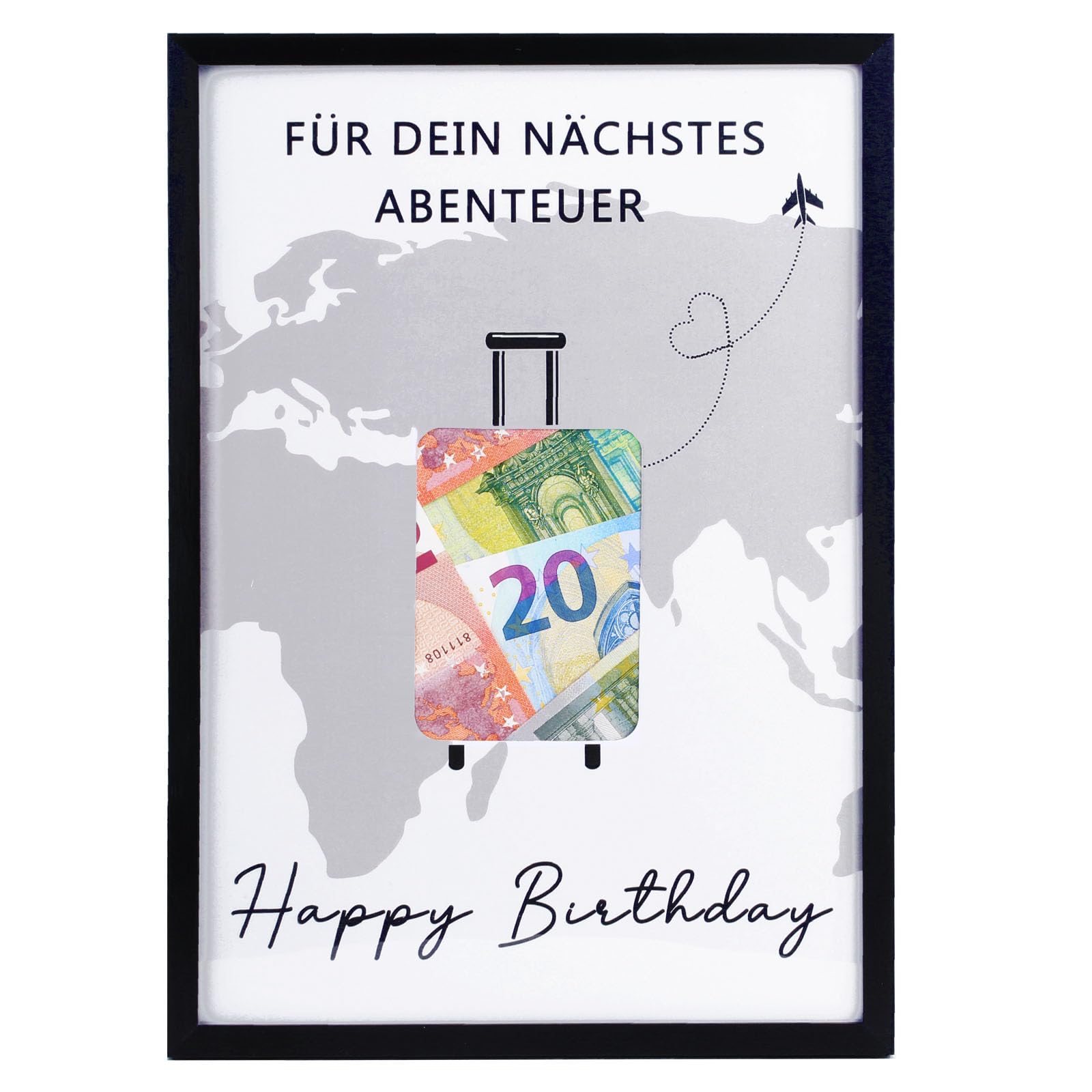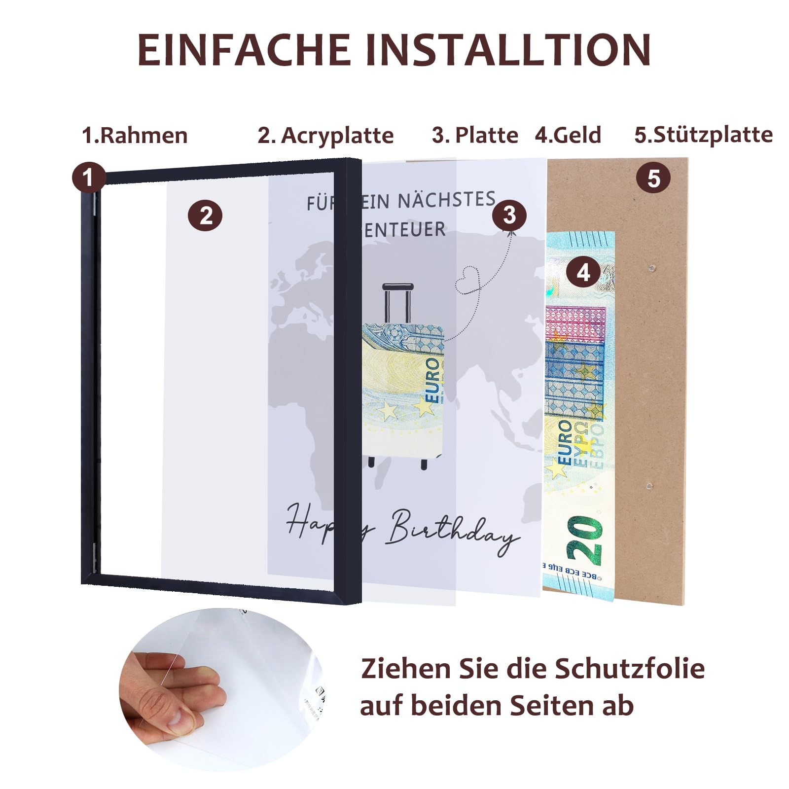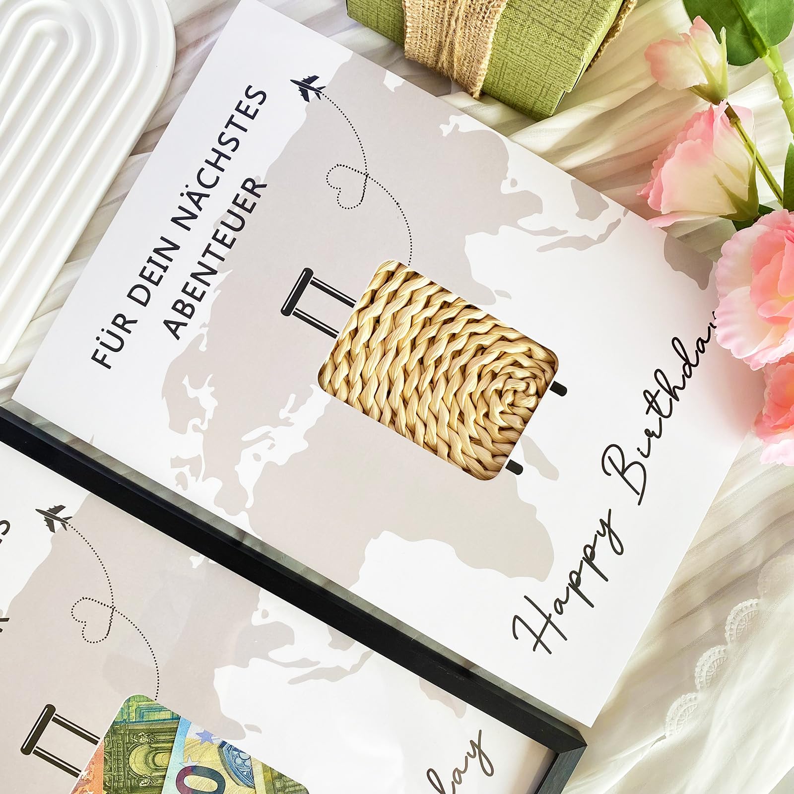 EngGlück Geldgeschenk Weltkarte Geburtstag, Geld Bilderrahmen Geburtstag Geschenk, Verpackung Geldgeschenk Mann Frau Geschenkideen zum Geburtstag Grösse Din A4 (Weltkarte-B)