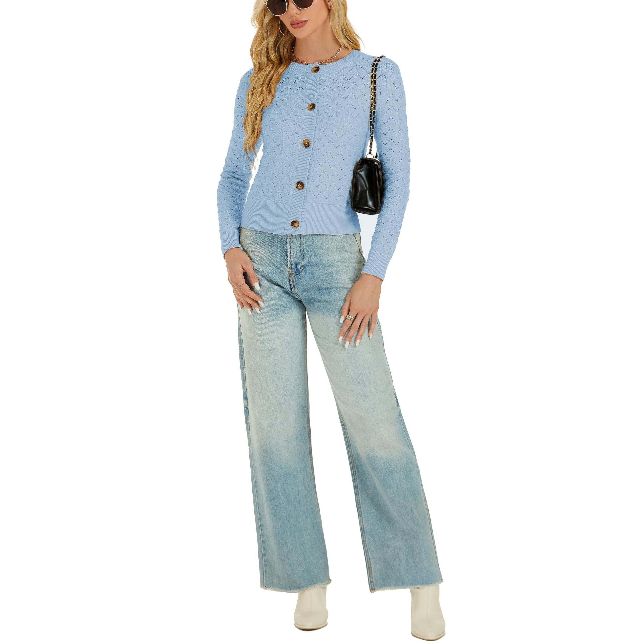 Enjyam Damen Strickjacke Elegant Langarm Rundhals Cardigan Leicht Bolero Jäckchen mit Knöpfe Weiche Jacke über Top Kleid