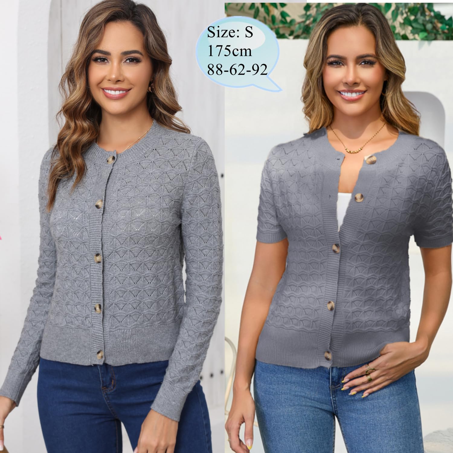 Enjyam Damen Strickjacke Elegant Langarm Rundhals Cardigan Leicht Bolero Jäckchen mit Knöpfe Weiche Jacke über Top Kleid