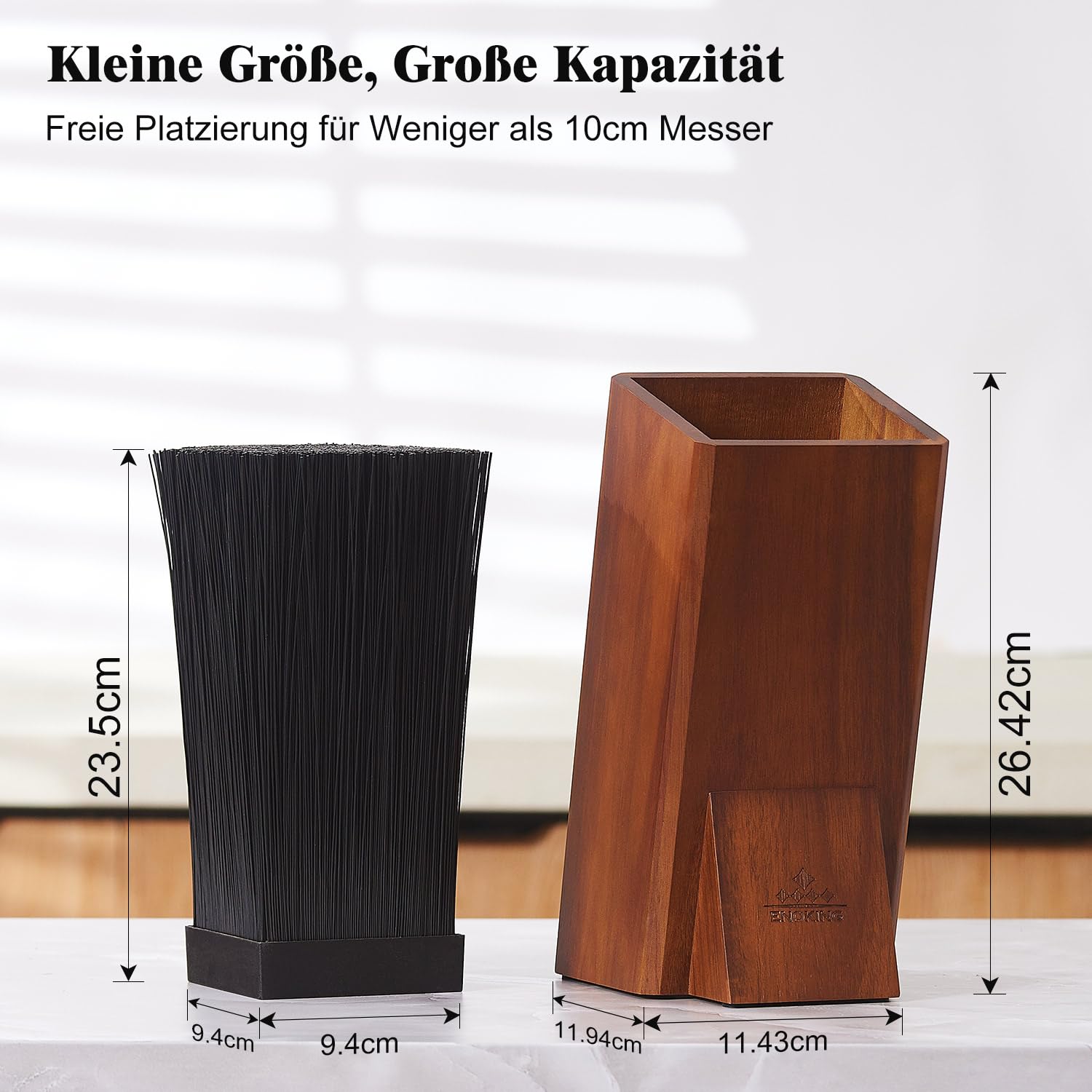 ENOKING Messerblock ohne Messer, Akazienholz Messerblock, Messerhalter mit Abnehmbaren Kunststoffborsten, Universal Messerblock Holze für die KüchenzeileEigenschaften:【Eingebaute Kunststoffborsten】Dieser Universal-Messerblock ist in kunststoffborsten eingebaut, er ist dichter und haltbarer, kann messer für eine lange zeit scharf schützen.【Grosse Kapazität】 Geeignet für klingenstärke weniger als 3mm, klingenbreite weniger als 9.9cm klingenlänge weniger als 25.4cm.【Natürliches Akazienholz】 Akazienholz ist ein symbol für hochwertiges material, oft in möbeln, handwerk, stark und langlebig verwendet.【Leicht zu Reinigen】Dieser ENOKING messerblock muss nicht installiert werden, sie können ihn nach erhalt verwenden. Der messerhalter ist aus naturholz und abnehmbaren borsten, wenn sie reinigen müssen, nehmen sie es einfach heraus und verwenden sie ein sauberes tuch, um es abzuwischen.【Rutschfester Boden und atmungsaktives Design】Dieser ENOKING messerblock ist mit einer rutschfesten basis ausgestattet, die verhindert, dass er gefährlich auf Ihrem küchentisch herumrutscht. Belüftung und atmungsaktiv, weg von den bakterien.