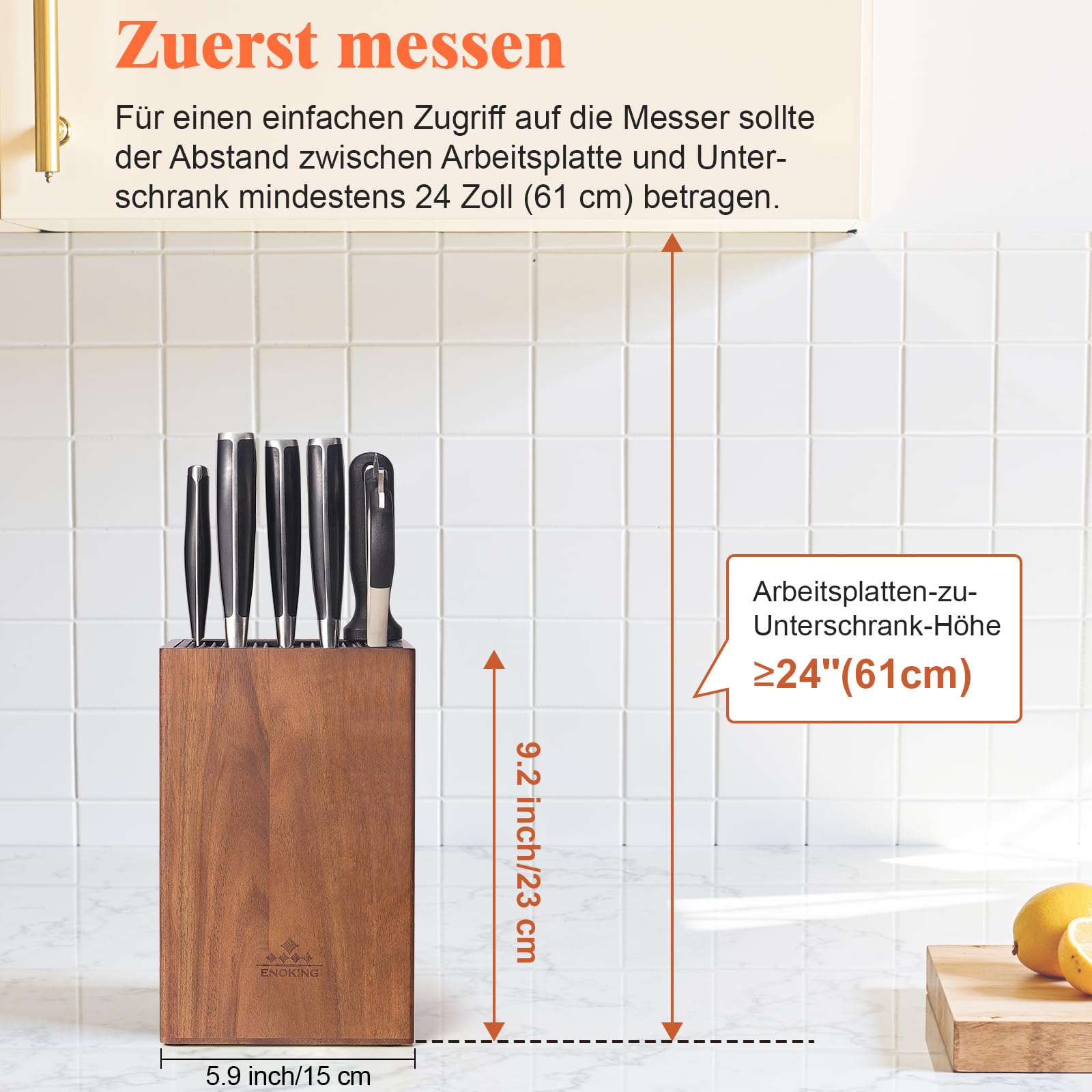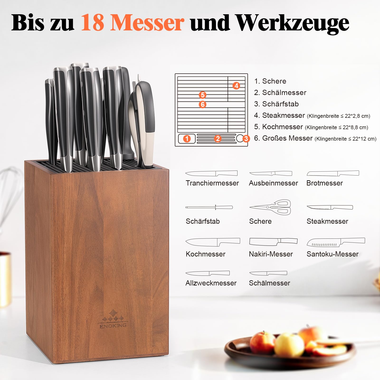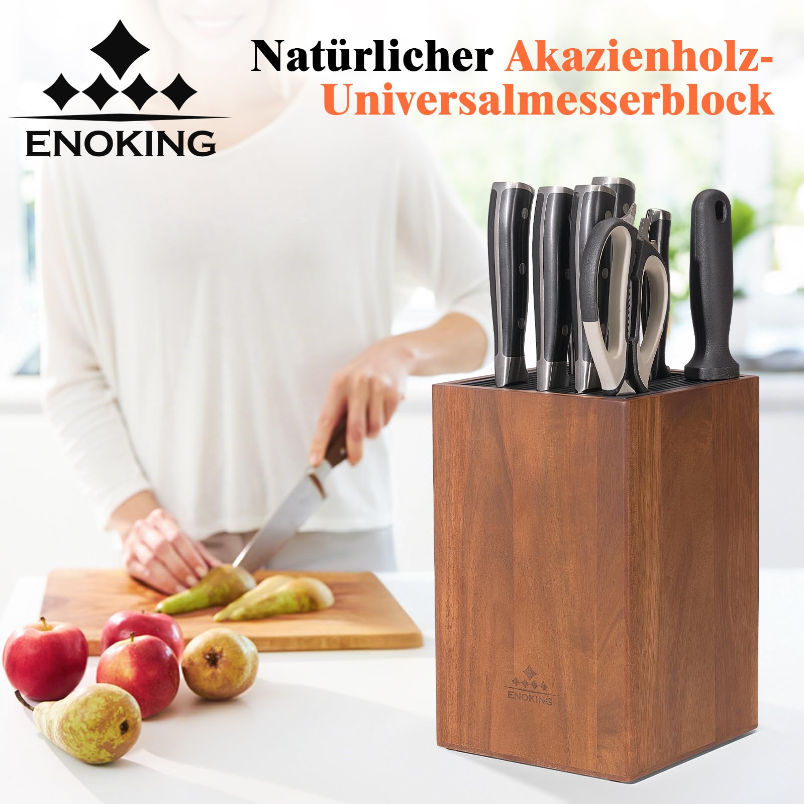 ENOKING Messerblock ohne Messer aus Akazienholz, unbestückte messerblöcke mit Kunststoffdeckel, Hochwertiges universal messerblock für Messer und Geflügelschere/Wetzstahl
