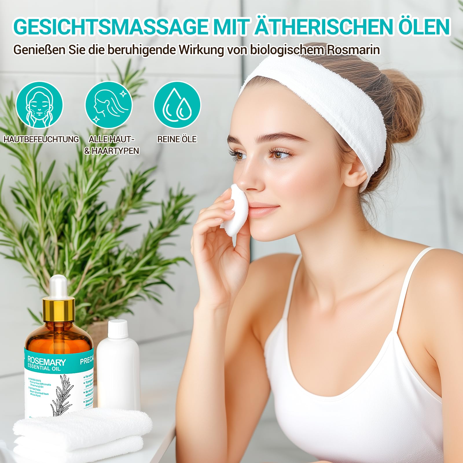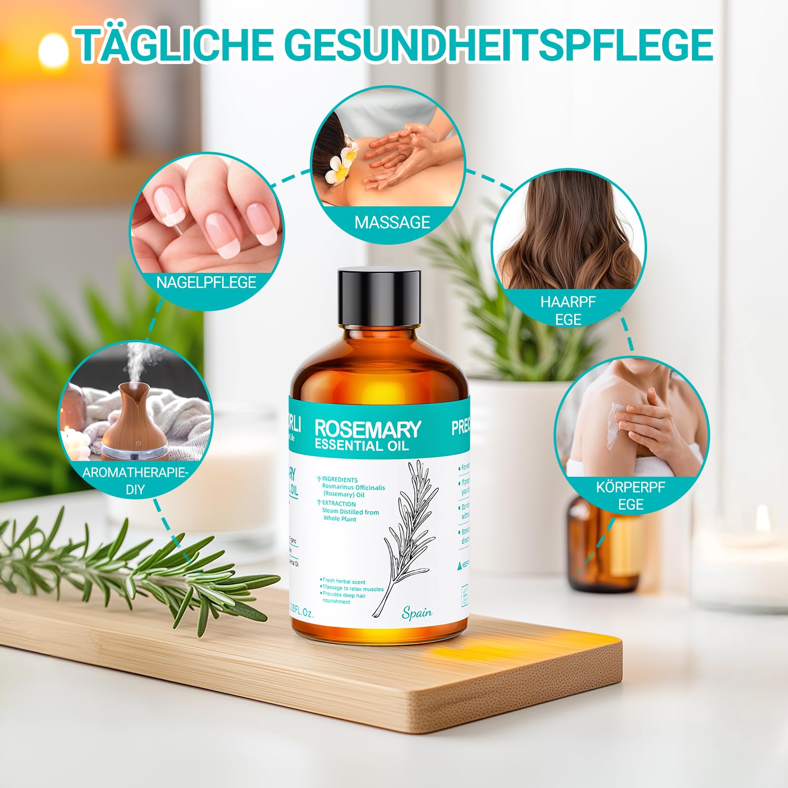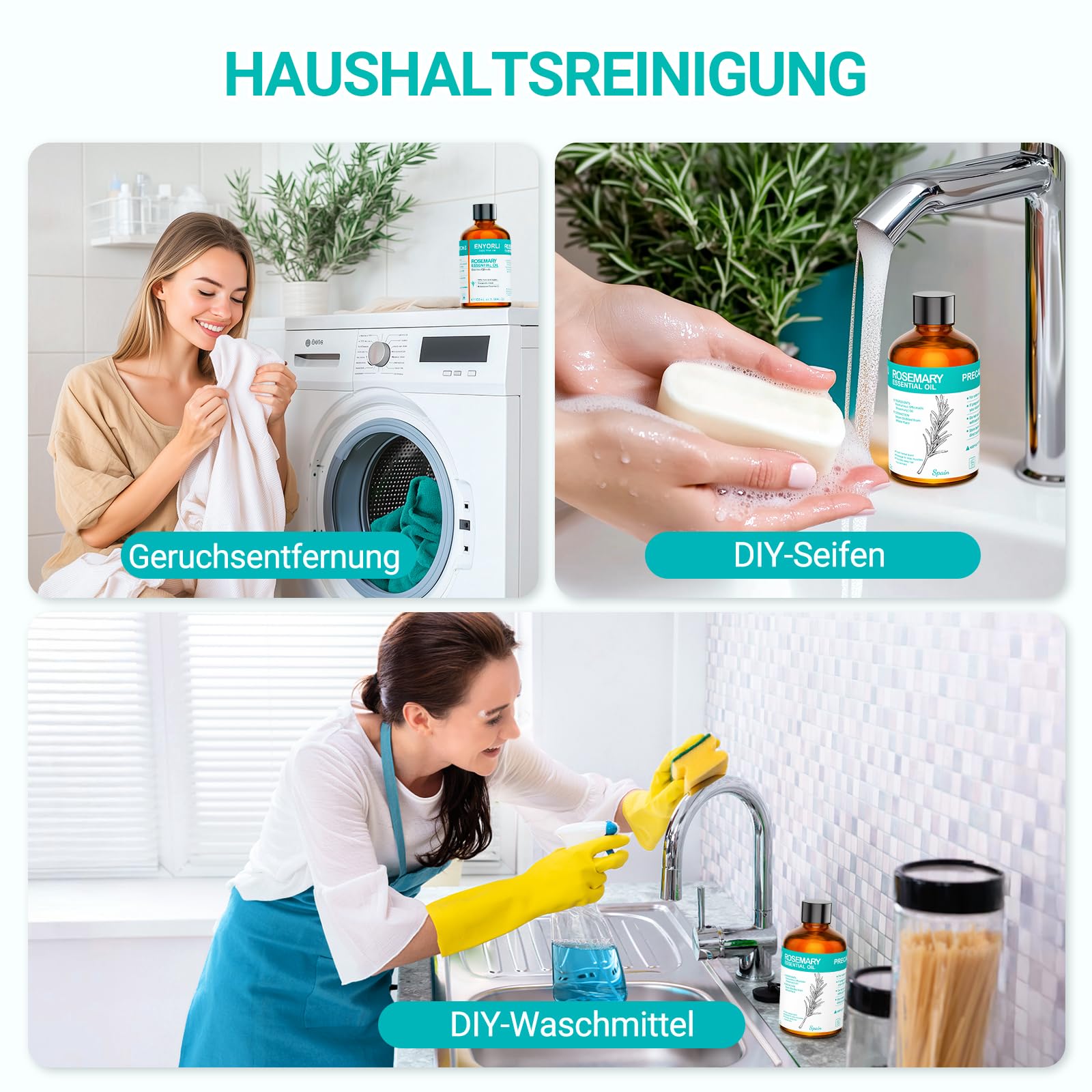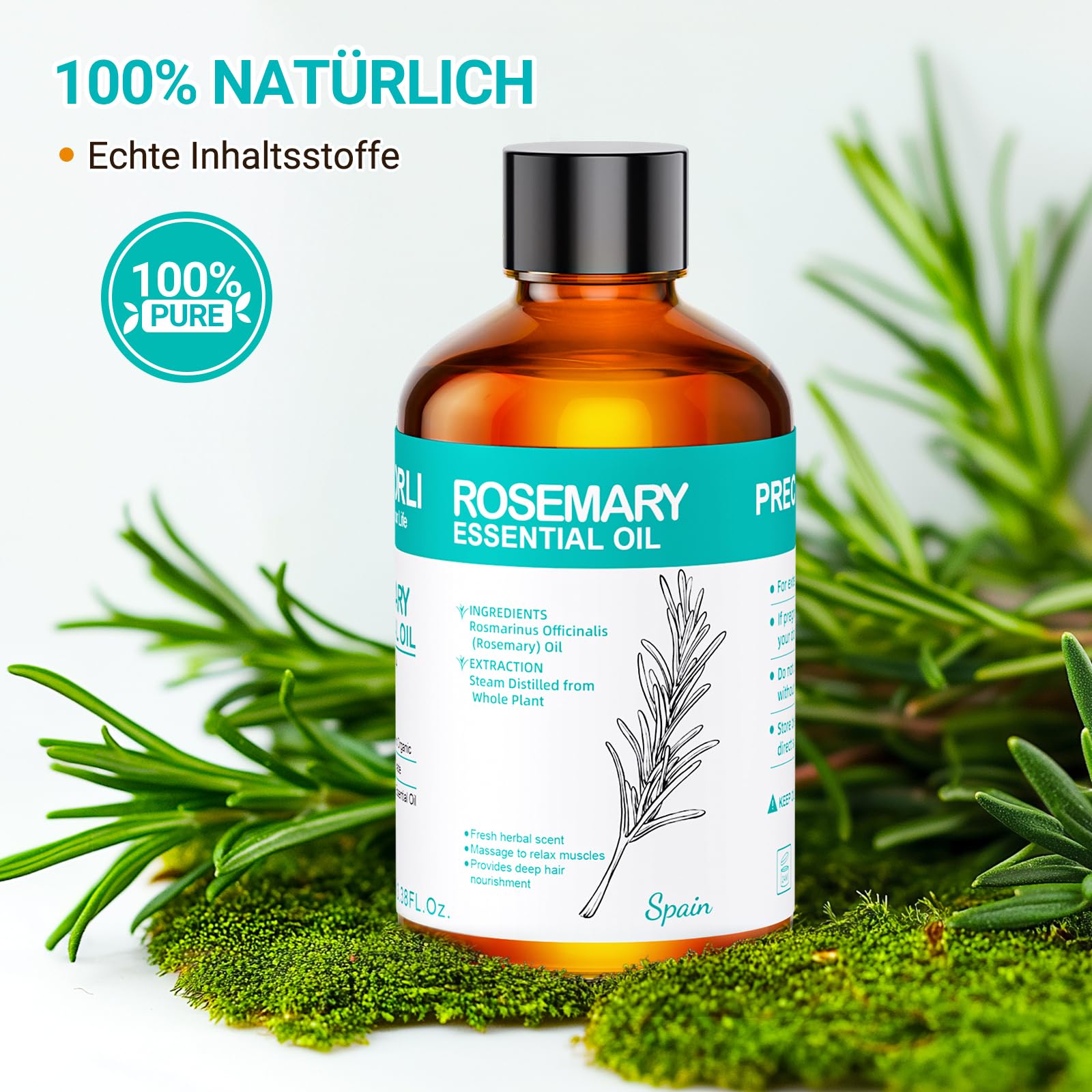 ENYORLI Rosmarinöl 100mL 100% Naturrein Dampfdestilliert für Haarwuchspflege, Hautpflege, Aromatherapie, Massage & Duftkerzen, Mit Pipette
