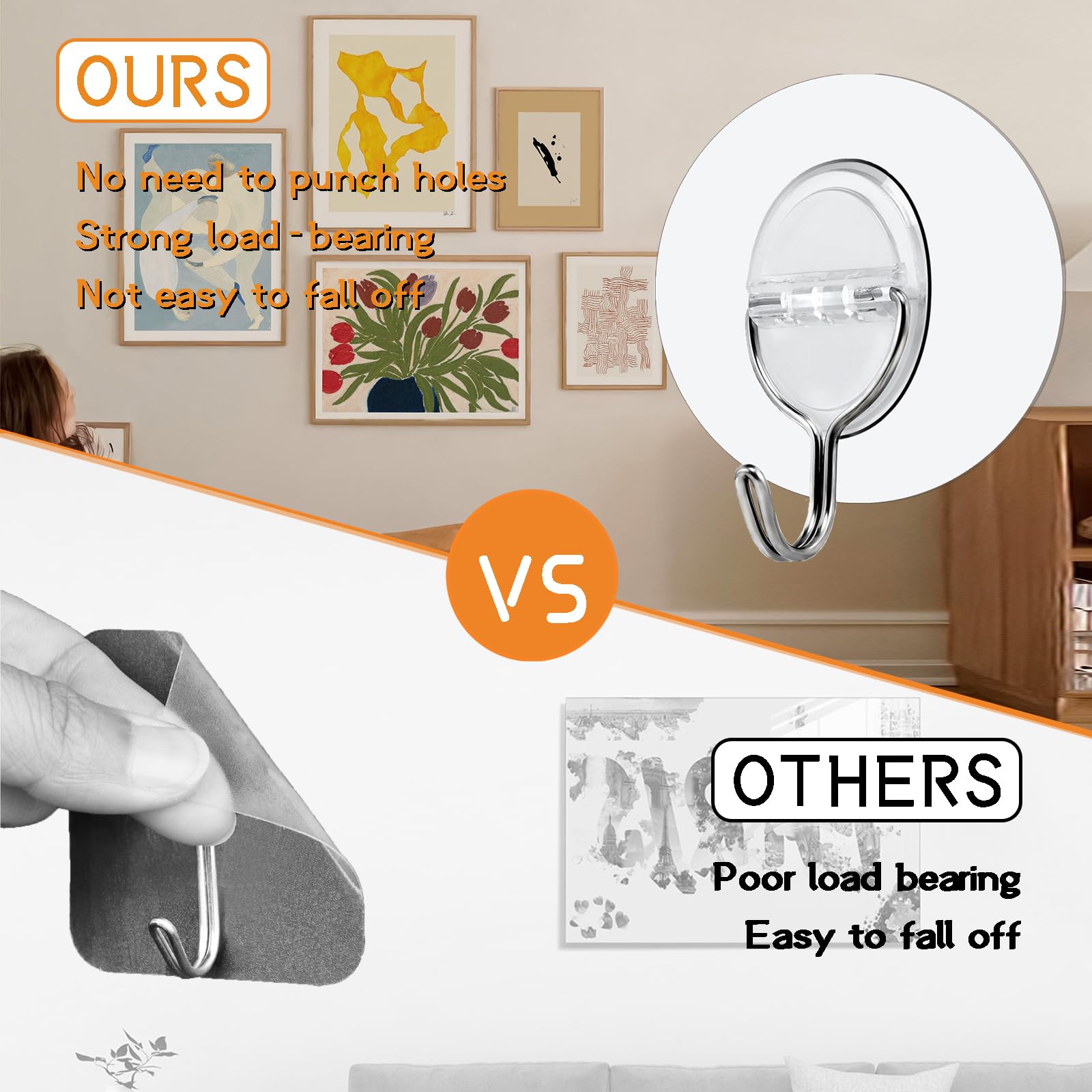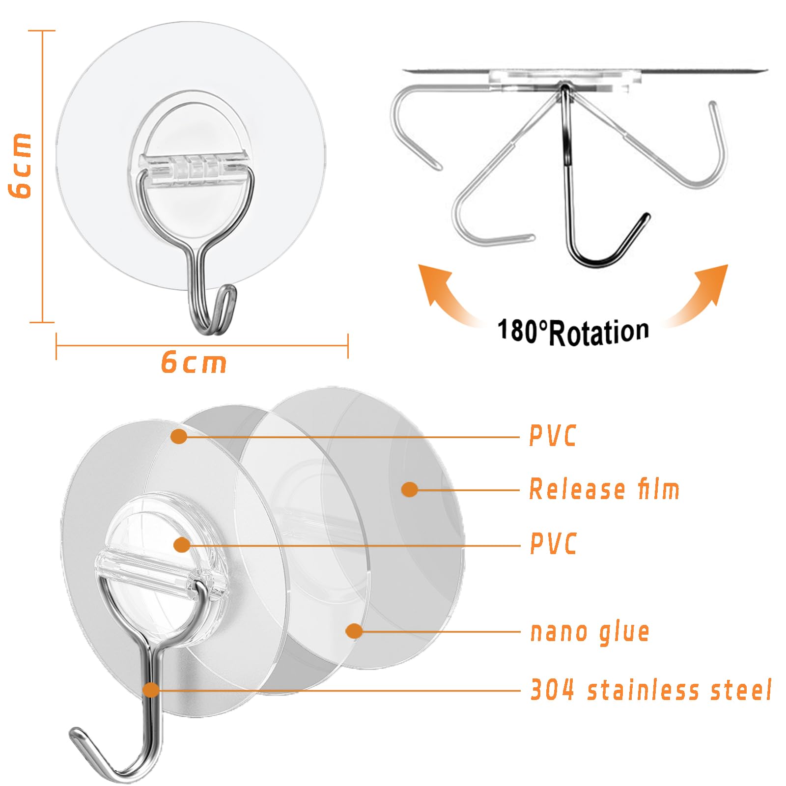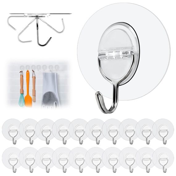 Klebehaken Transparent - 20 Stück Haken Selbstklebend Ohne Bohren (max 8 kg) - Nahtloser klebe haken Wasserdicht und Ölfest Mehrzweck Klebehaken Extra Stark - Klebe haken Decke für Küche Bad (Round)