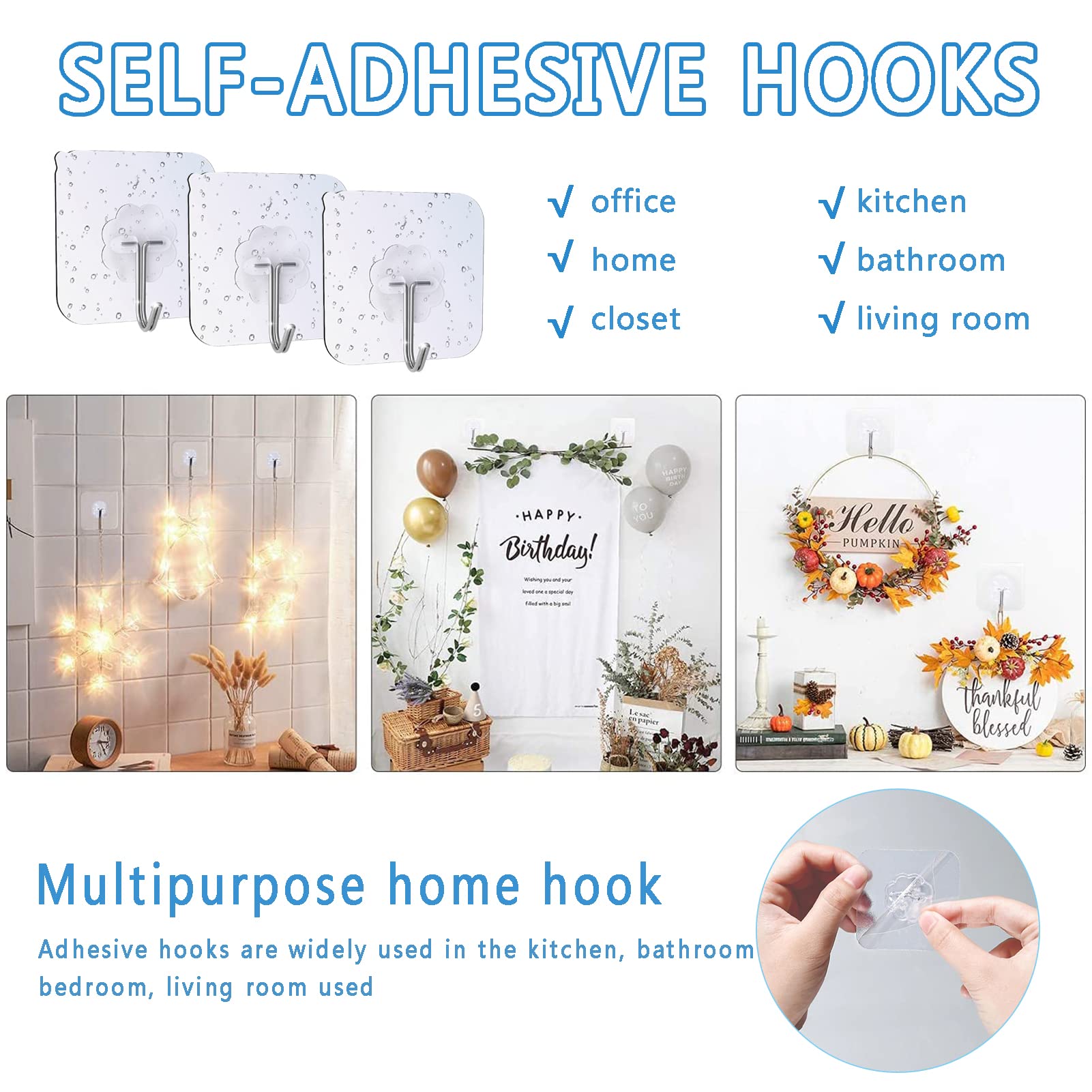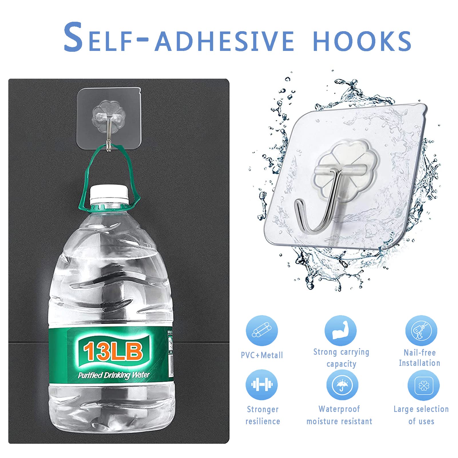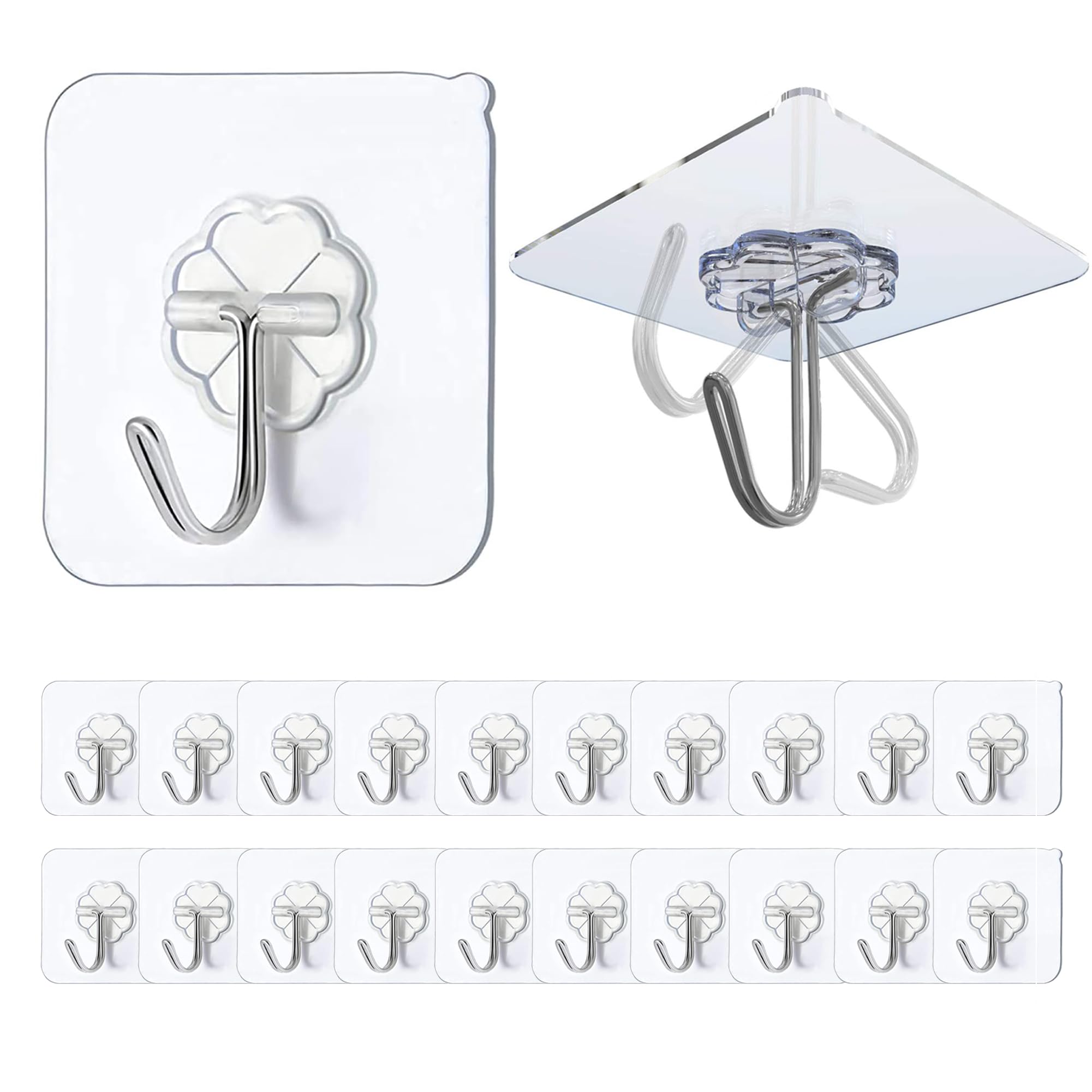 EOSWRU Haken Selbstklebend, 20 Stück Klebehaken Transparent Ohne Bohren (max 10 kg) Nahtloser Wasserdicht und Ölfest Mehrzweck Klebe Haken, Wandhaken Selbstklebend für Küche Bad