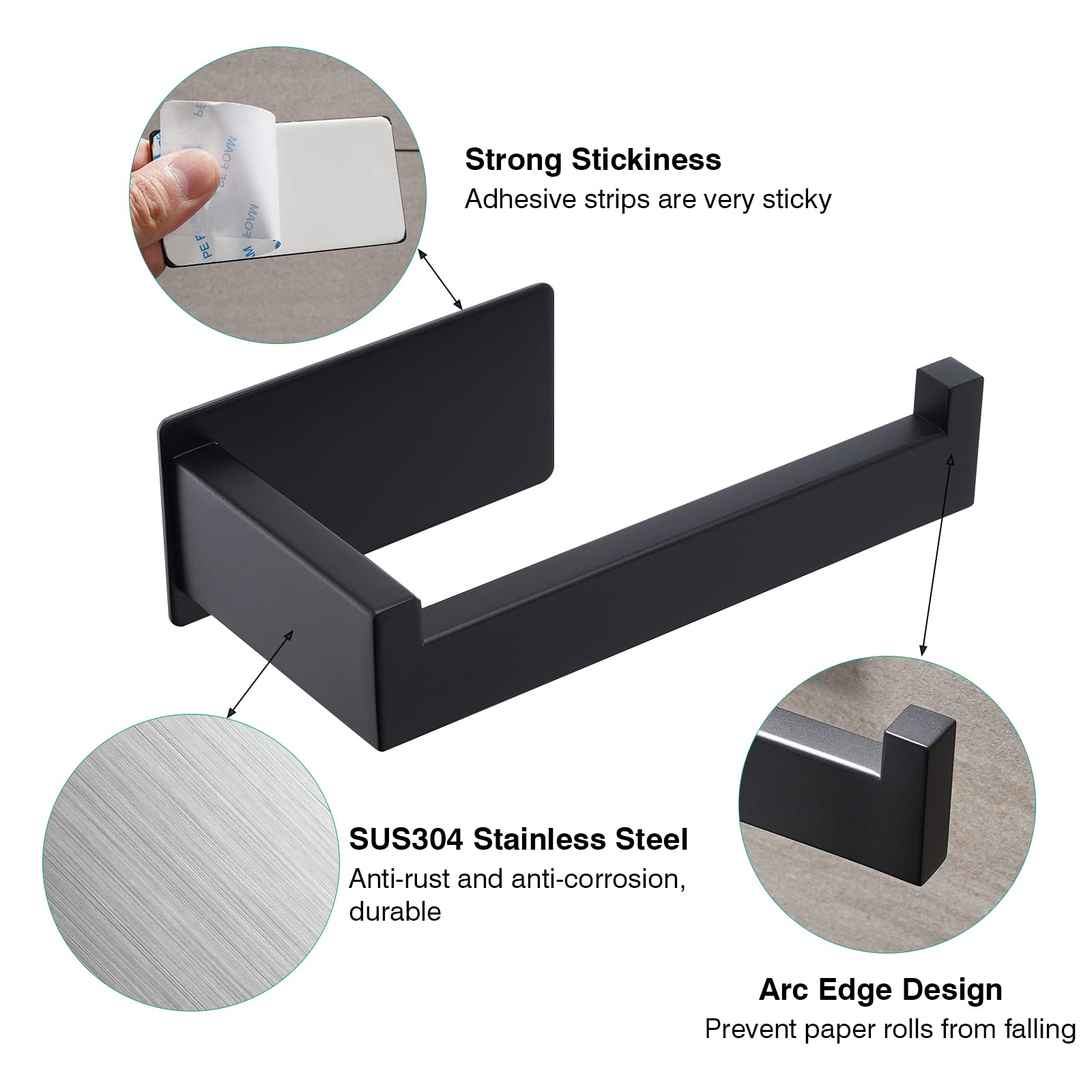 Eowihor Toilettenpapierhalter Ohne Bohren, Selbstklebend Toilettenpapierrollenhalter Edelstahl Klopapierhalter Wc Halter Rollenhalter Klorollenhalter für Küche und Badzimmer, Schwarz
