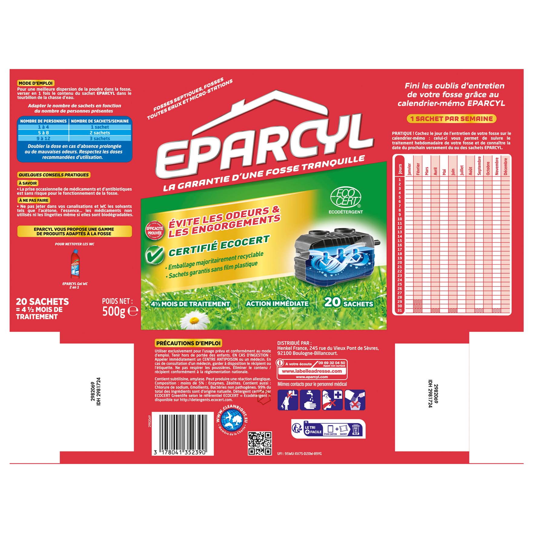 Eparcyl - 20 Beutel – Sofortige Wirkung – 4 Monate und halbe Behandlung – Klärgruben – für alle Wassergruben und Mikro-Stationen – verhindert Gerüche & Verstopfungen – umweltfreundlich &