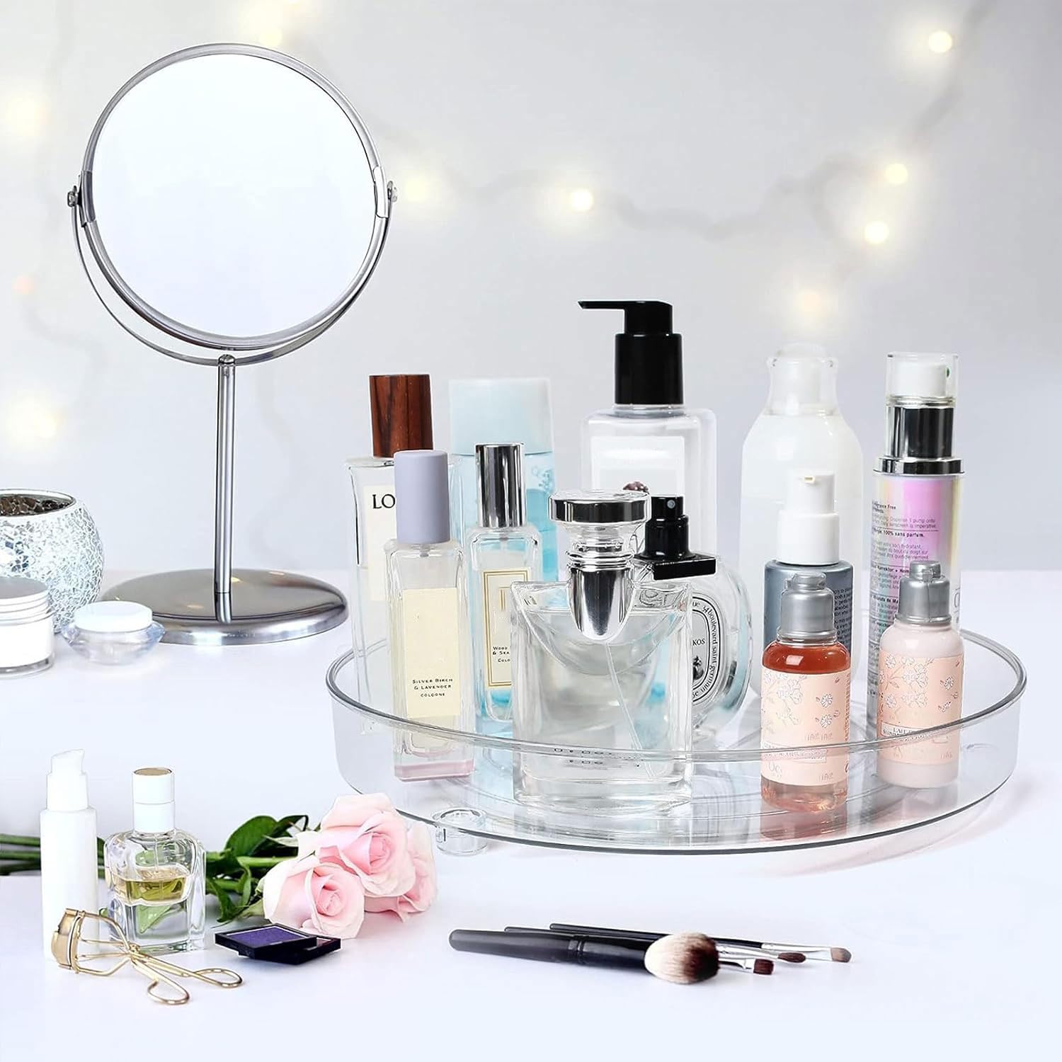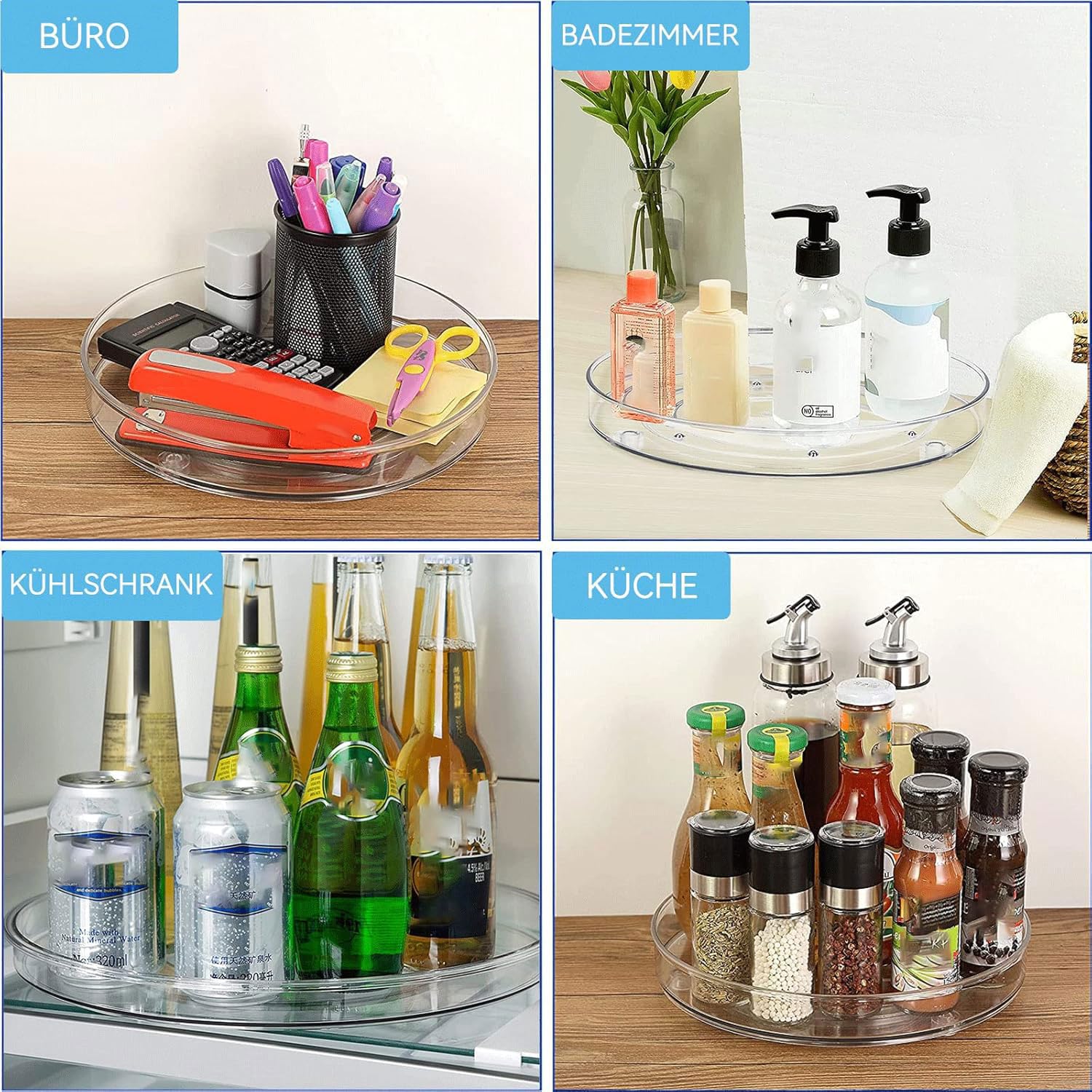 Produktspezifikationen:Name: Drehteller OrganizerFarbe: TransparentMaterial: BPA-freiem und lebensmittelechtem kunststoffGrösse: 27 + 23 cm