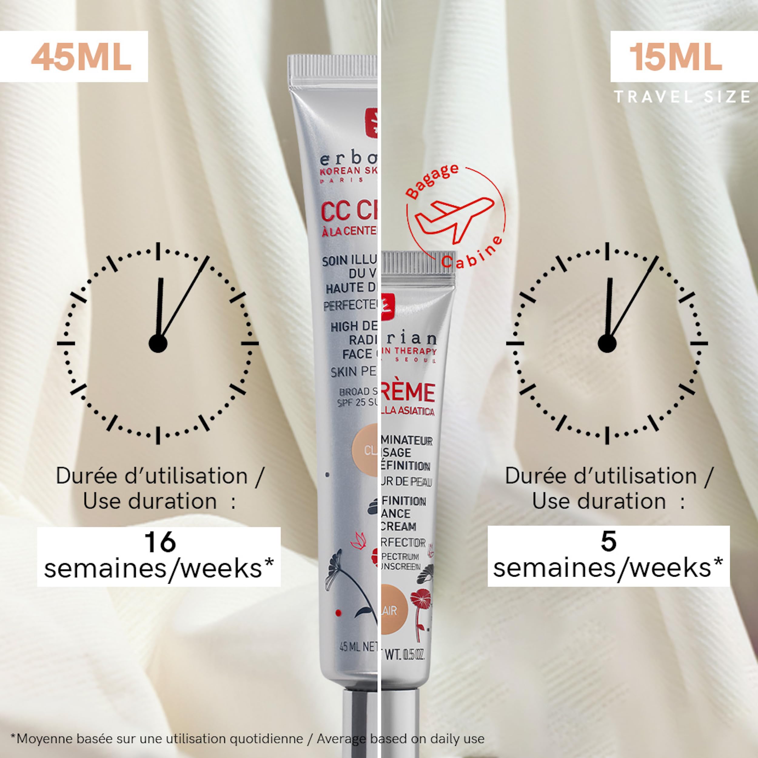 Erborian CC Cream - Getönte Gesichtscreme mit Centella Asiatica - Gesichtspflege aus Korea - Strahlender Teint & Feuchtigkeit LSF 25 - Doré 45 ml