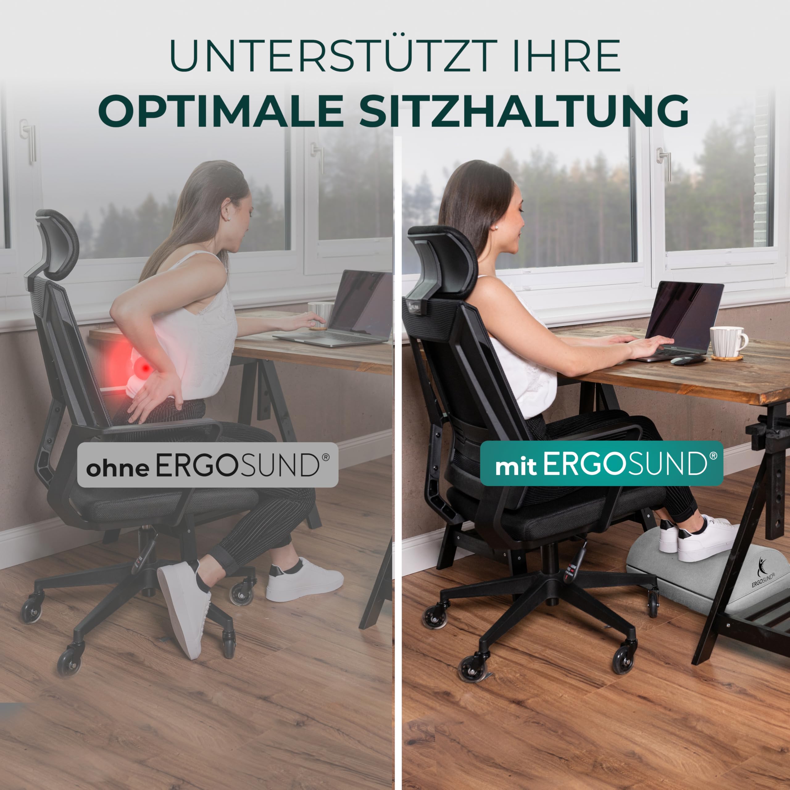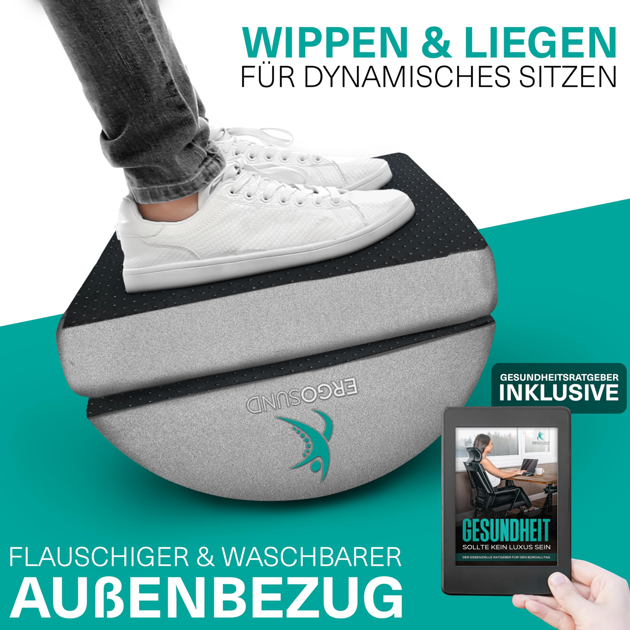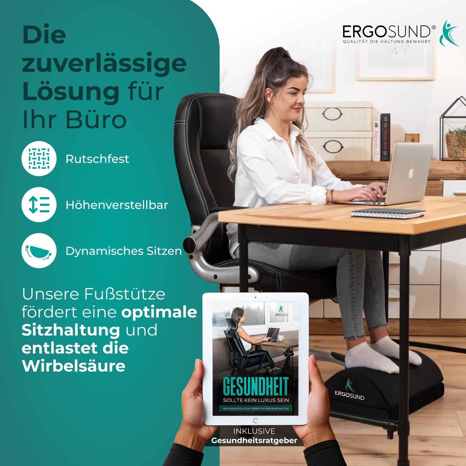 ERGOSUND Fussstütze Schreibtisch [TESTSIEGER] Premium Schaumstoffkern, Höhenverstellbare Fussbank [rutschfest] Ergonomische Fussablage Schreibtisch, Homeoffice Büro Zubehör Fusshocker Footrest Fussstütze