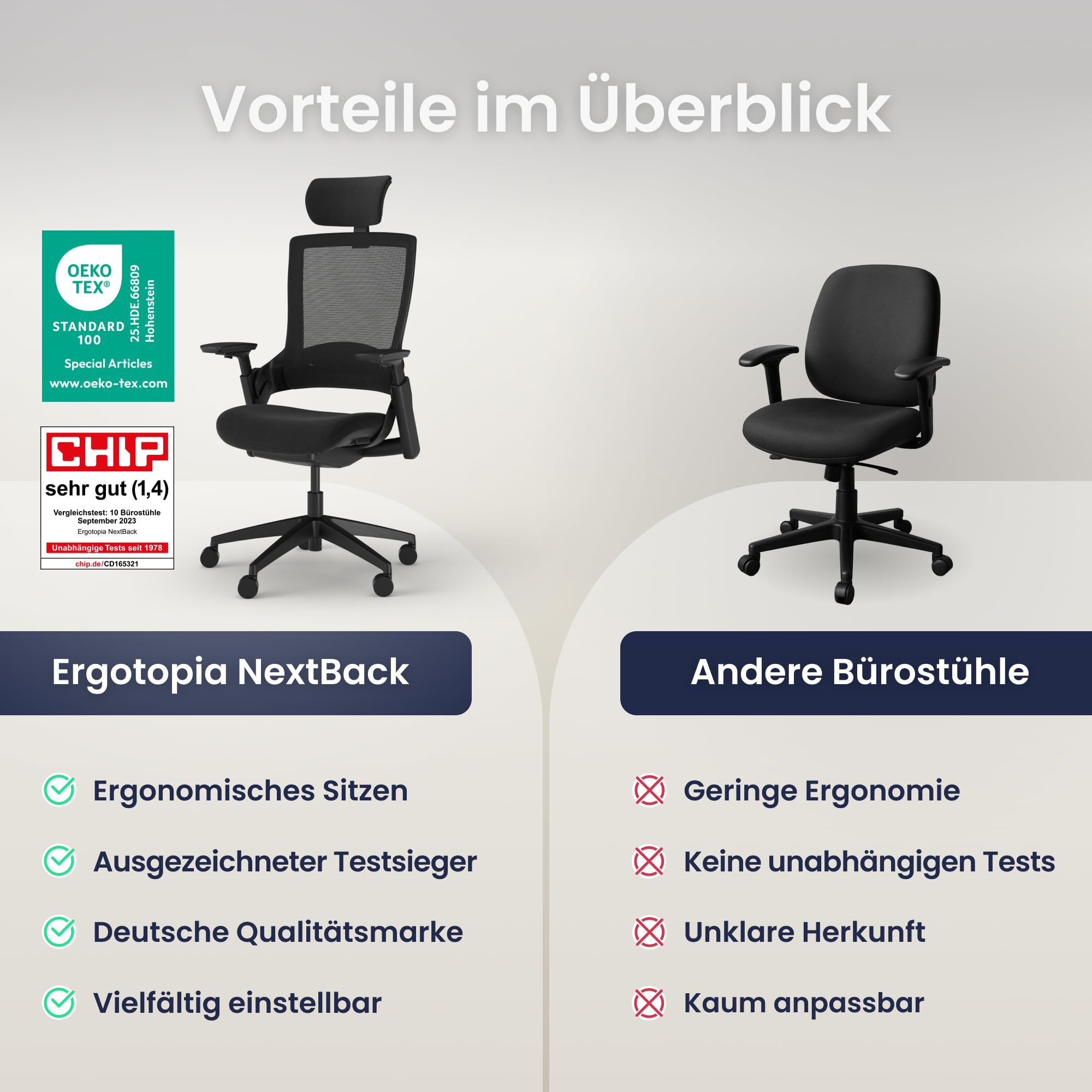Ergotopia NextBack | Ergonomischer Bürostuhl 150kg belastbar gegen Rückenschmerzen | Schreibtischstuhl ergonomisch | Bürostuhl ergonomisch Testsieger, Office Chair - 5 Jahre Garantie