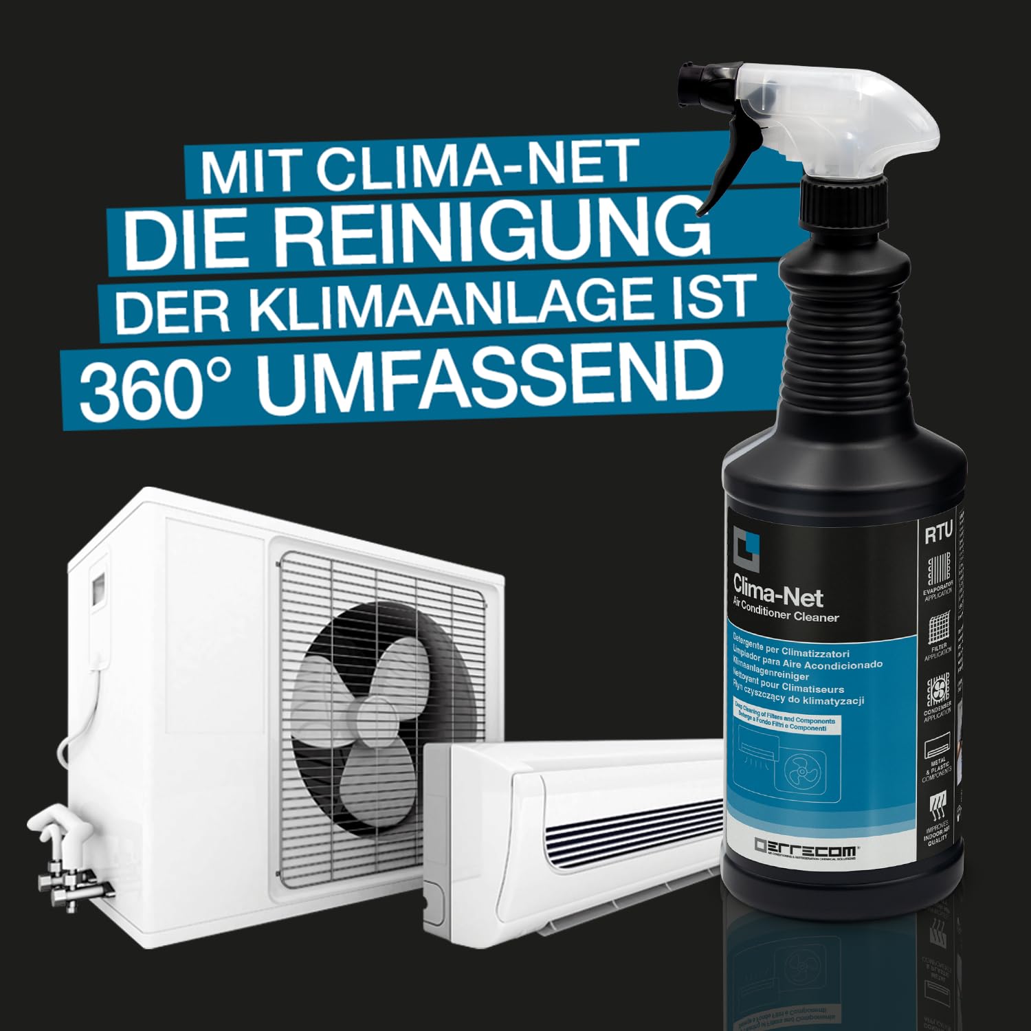 ERRECOM Kit zur Reinigung der Klimaanlage, enthält 1-L Clima-Net Reiniger für Klimaanlagen, Filter, Rippenwärmetauscher, Aussengeräte, 1 Wally Schutzhülle für Reinigung von Splits und Verdampfern.