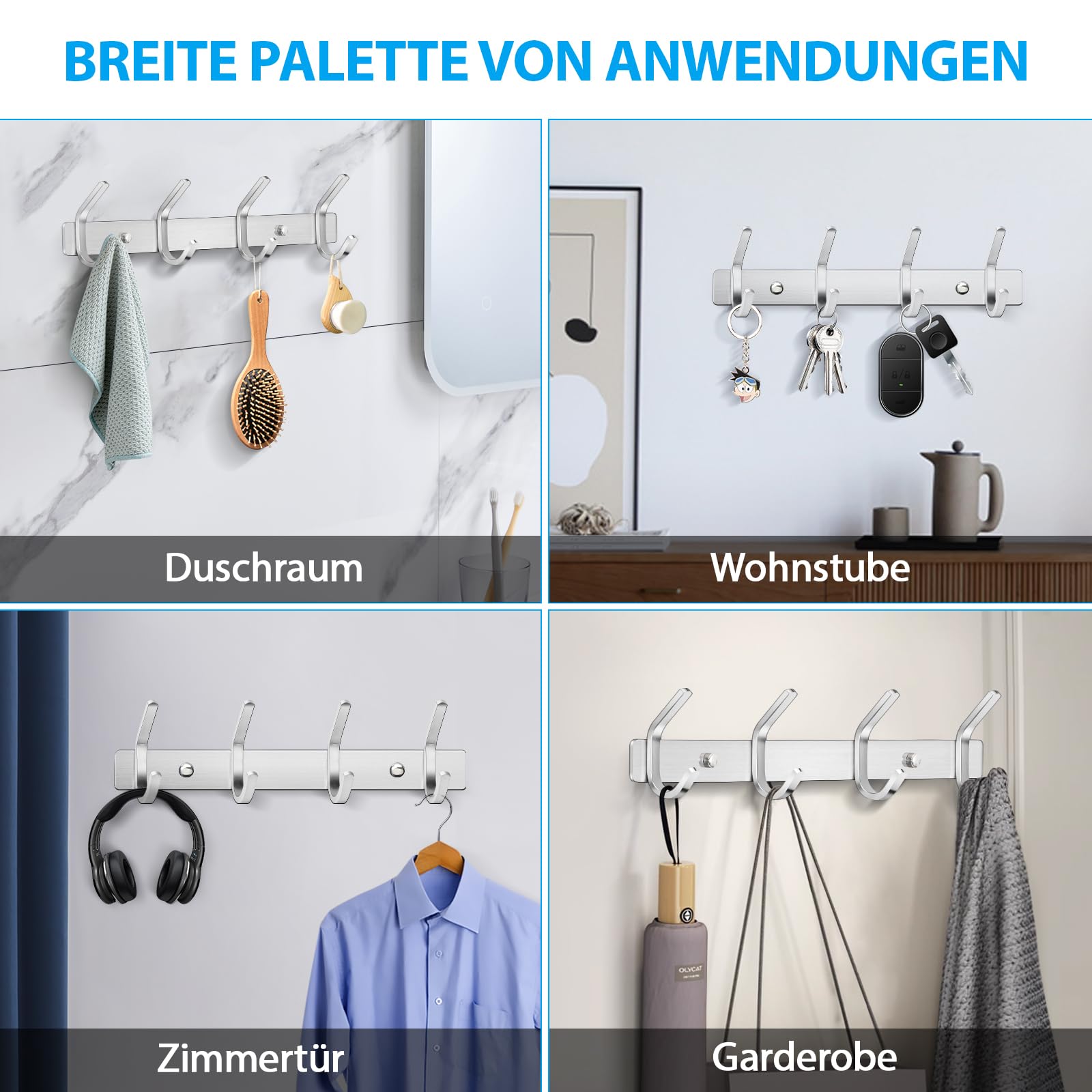 ERWEY hochwertige Hakenleiste aus Edelstahl mit 4 Haken