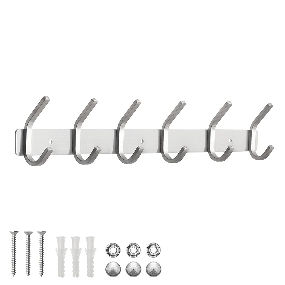 ERWEY 6 Haken Kleiderhaken Wand Hakenleiste Edelstahl Garderobenhaken Garderobe Haken Handtuchhaken Wandmontage Gebürstet ca. 30kg SUS304