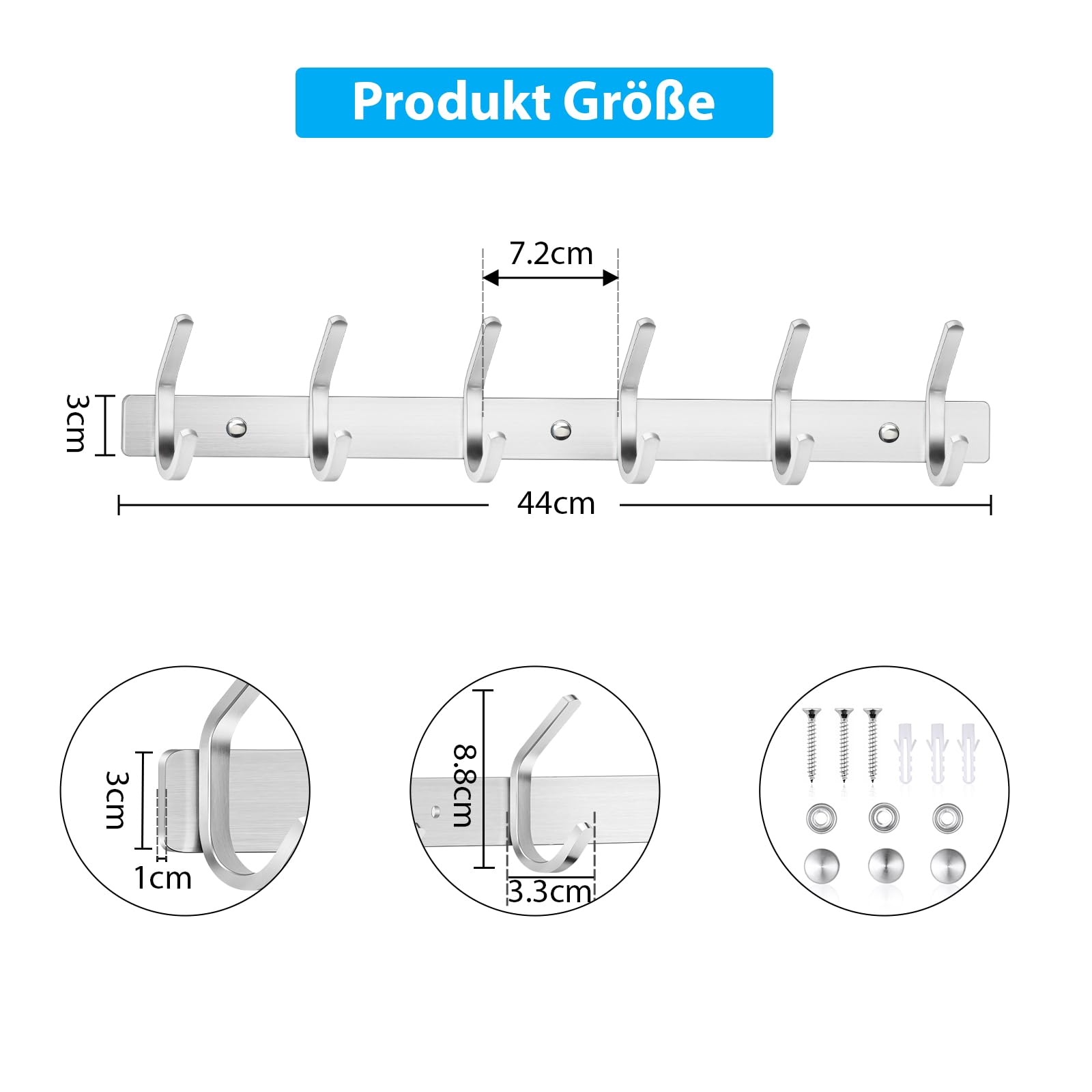 ERWEY hochwertige Hakenleiste aus Edelstahl mit 6 Haken