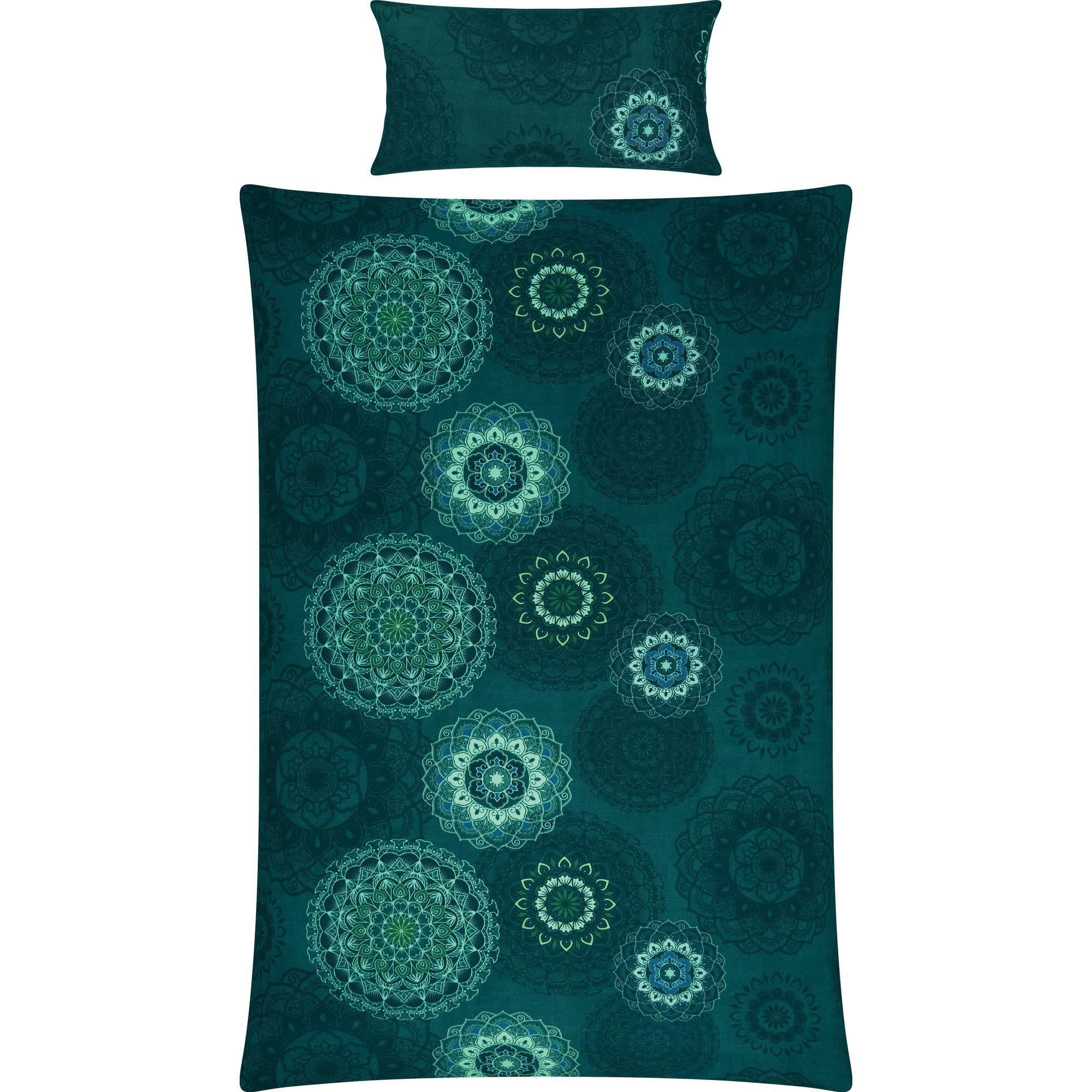 Erwin Müller Bettwäsche, Bettgarnitur Sparpaket 4-TLG. Flanell - Mandala - mollig warm, temperaturregulierend, mit praktischem Reissverschluss - Petrol Grösse 40x80 cm / 155x220 cm
