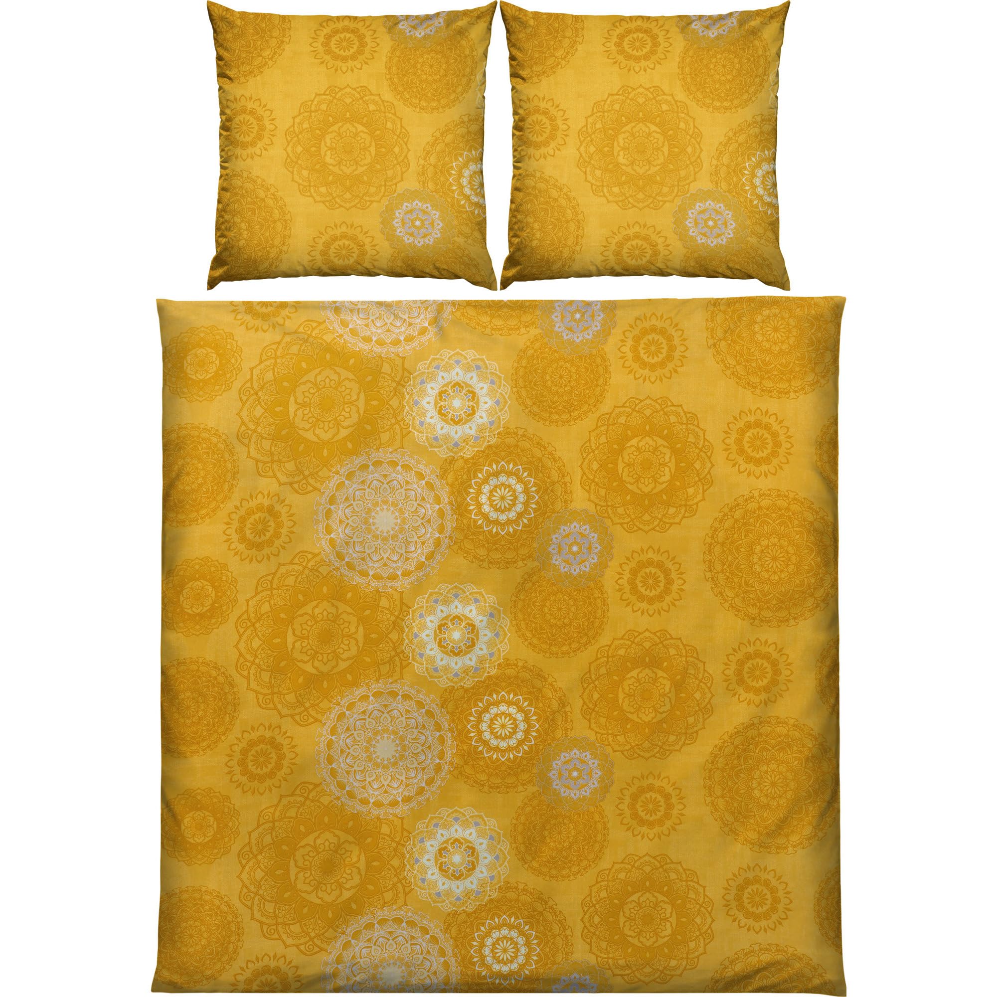 Erwin Müller Bettwäsche, Bettgarnitur Flanell - Mandala - mollig warm, temperaturregulierend, mit praktischem Reissverschluss - Curry Grösse 80x80 cm / 200x220 cm
