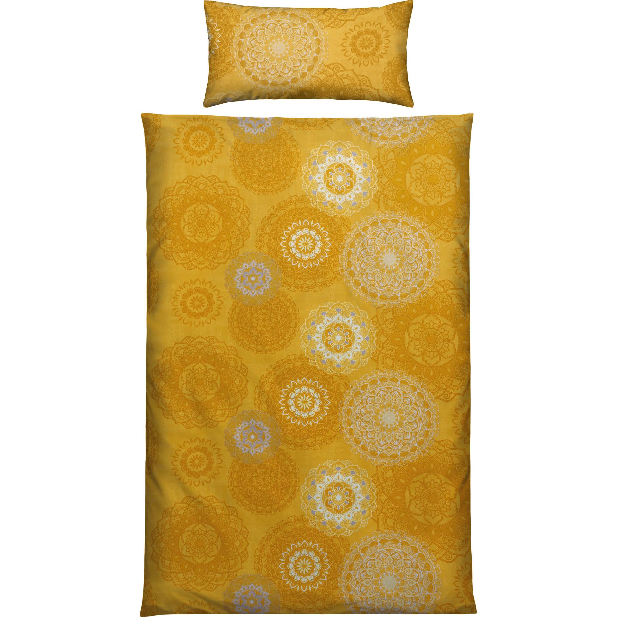 Erwin Müller Bettwäsche, Bettgarnitur Sparpaket 4-TLG. Flanell - Mandala - mollig warm, temperaturregulierend, mit praktischem Reissverschluss - Curry Grösse 40x80 cm / 155x240 cm