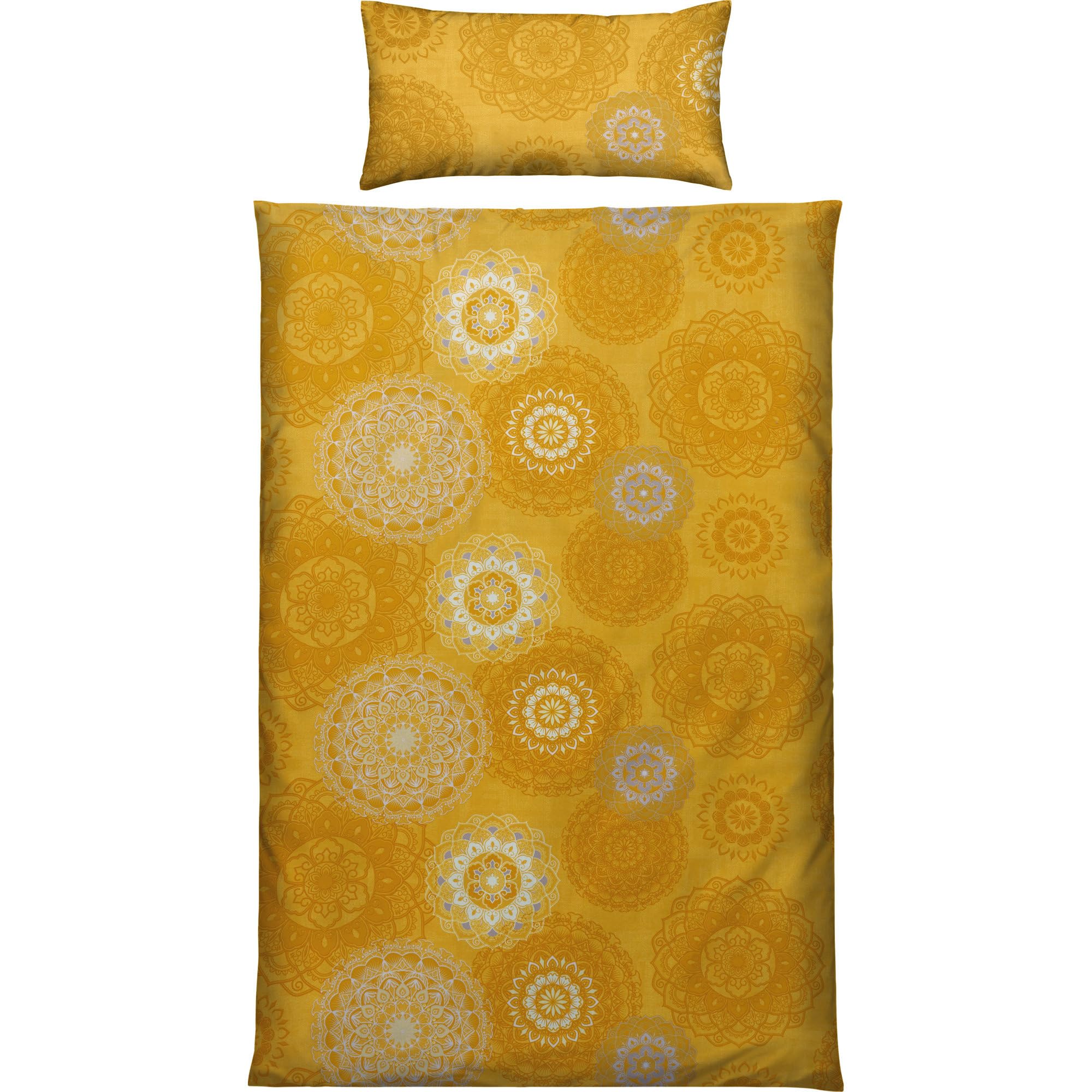 Erwin Müller Bettwäsche, Bettgarnitur Flanell - Mandala - mollig warm, temperaturregulierend, mit praktischem Reissverschluss - Curry Grösse 40x80 cm / 155x200 cm