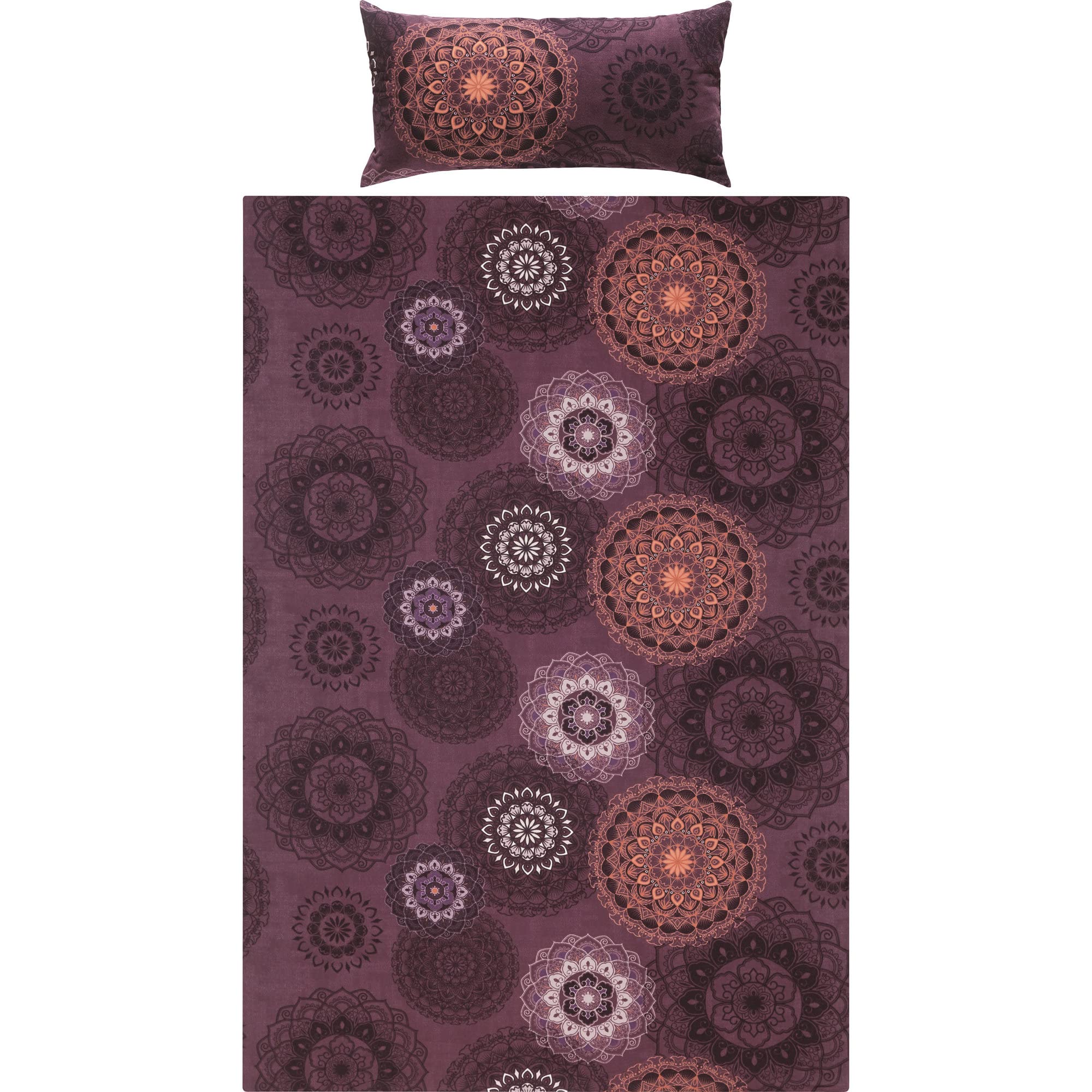 Erwin Müller Bettwäsche, Bettgarnitur Sparpaket 4-TLG. Flanell - Mandala - mollig warm, temperaturregulierend, mit praktischem Reissverschluss - aubergine Grösse 40x80 cm / 155x200 cm