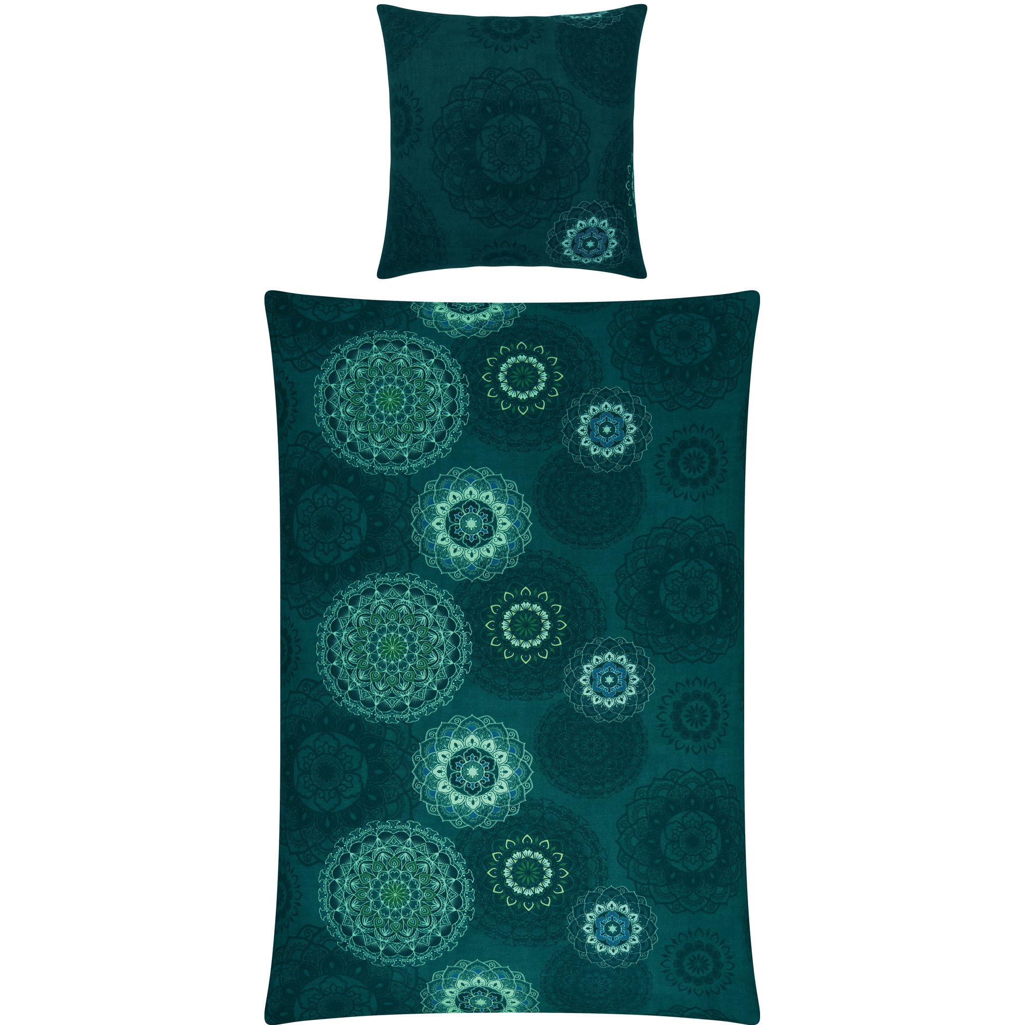 Erwin Müller Bettwäsche, Bettgarnitur Flanell - Mandala - mollig warm, temperaturregulierend, mit praktischem Reissverschluss - Petrol Grösse 80x80 cm / 155x240 cm