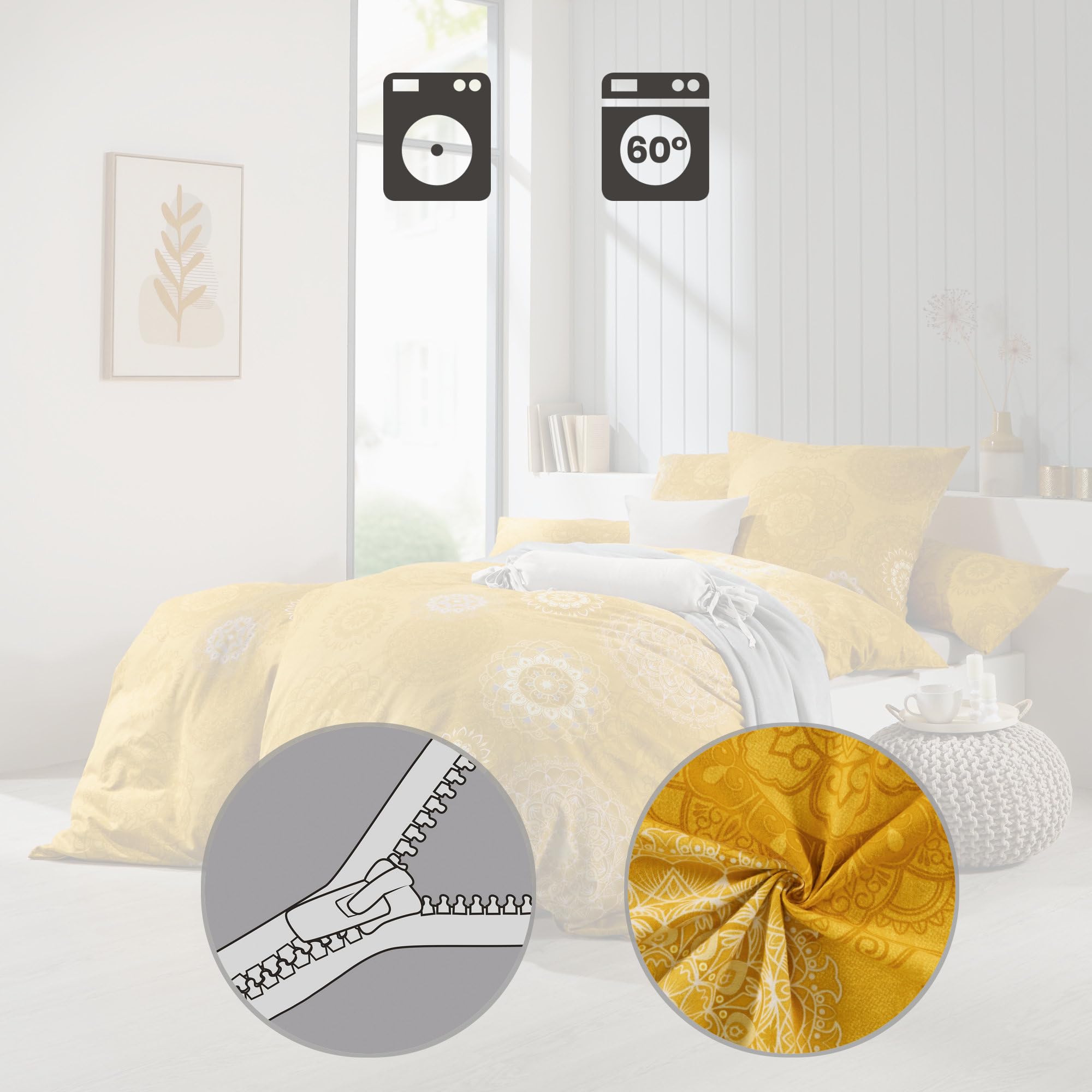 Erwin Müller Bettwäsche, Bettgarnitur Flanell - Mandala - mollig warm, temperaturregulierend, mit praktischem Reissverschluss - Curry Grösse 80x80 cm / 135x220 cm