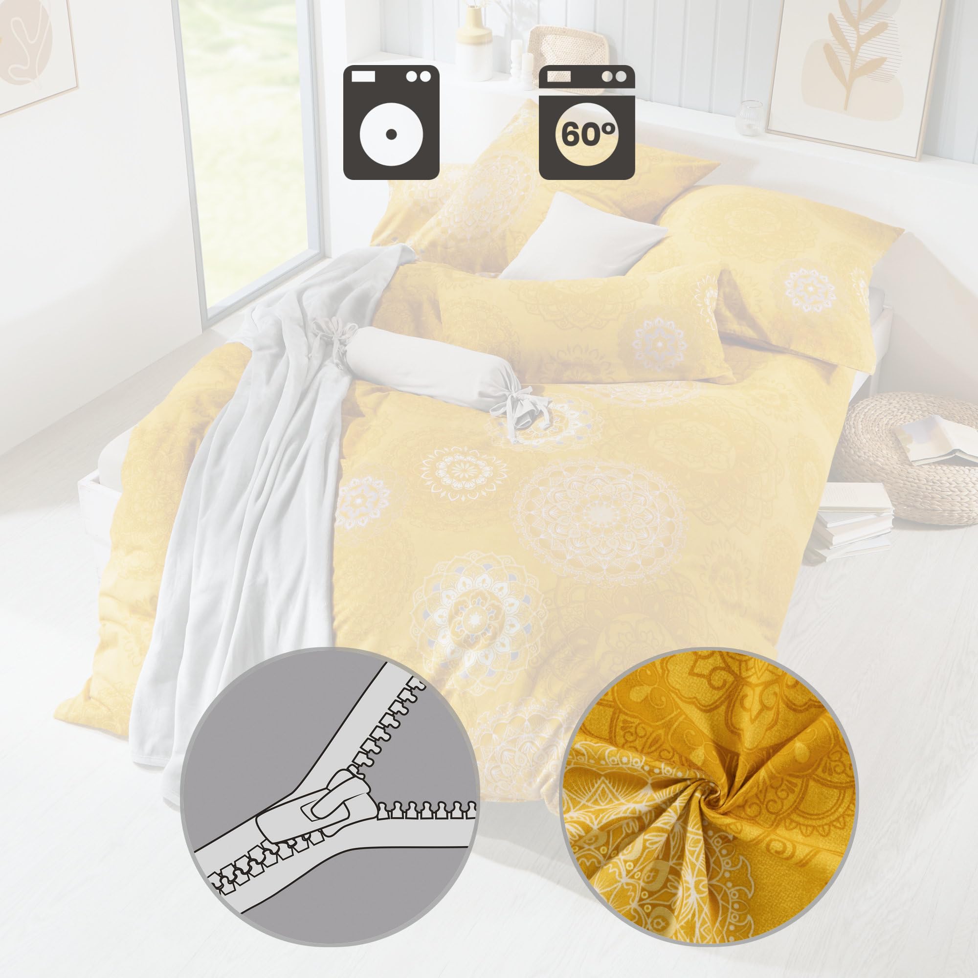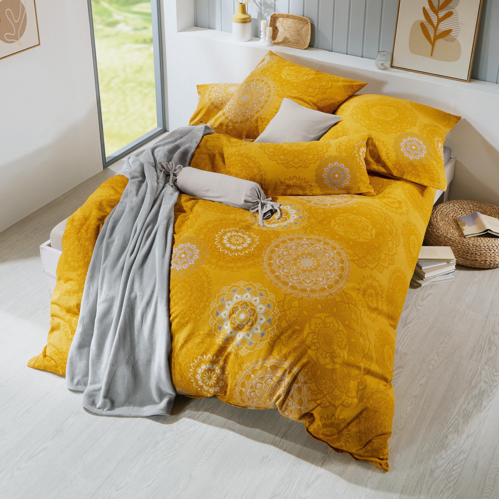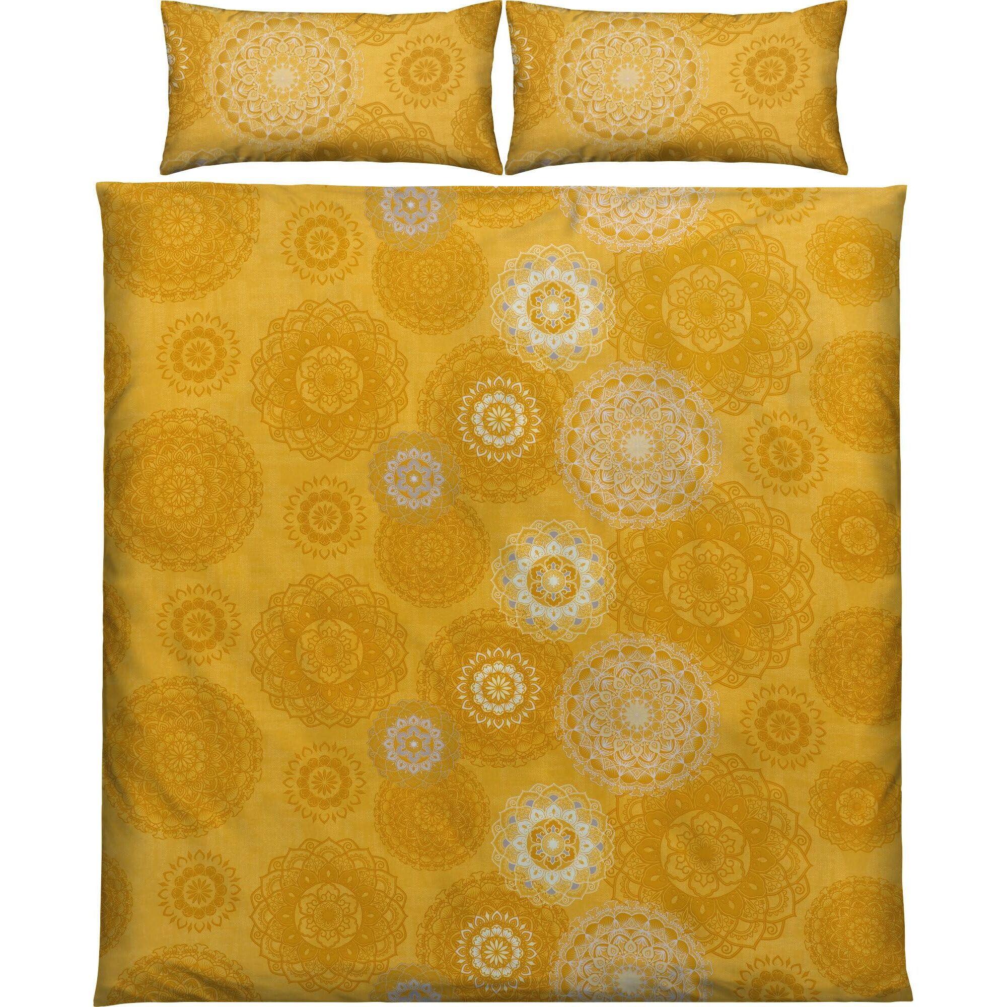 Erwin Müller Bettwäsche, Bettgarnitur Flanell - Mandala - mollig warm, temperaturregulierend, mit praktischem Reissverschluss - Curry Grösse 40x80 cm / 200x200 cm