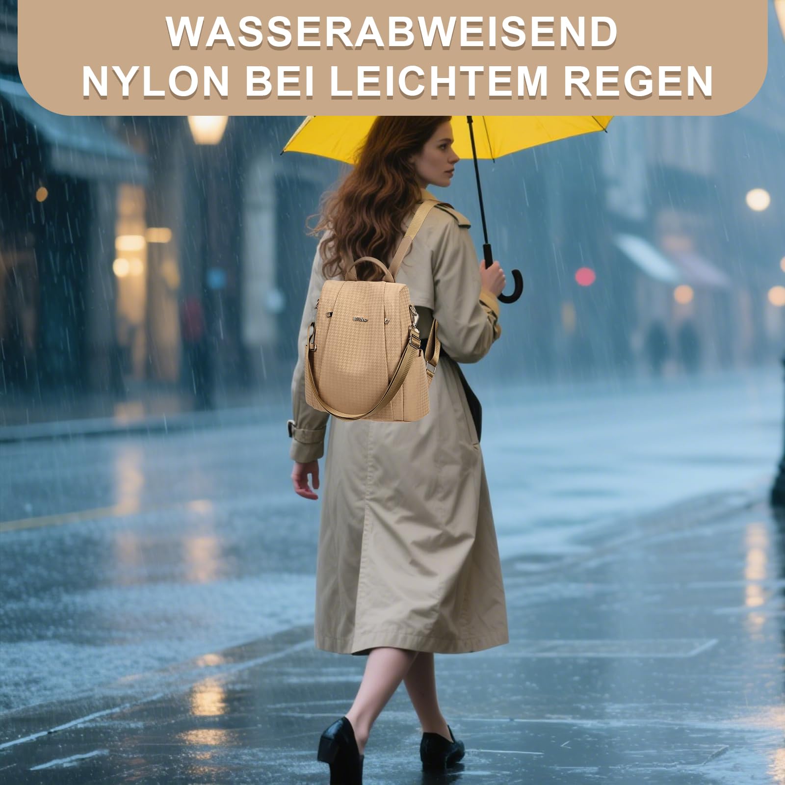 Eshow Damen Rucksack – Der zuverlässige Alltagsbegleiter für moderne Frauen!Sicherheit durch DiebstahlschutzUnser anti diebstahl elegant tagesrucksack schützt Ihre Wertsachen: Das Hauptfach öffnet sich an der Rückseite, sodass Handy und Pass in Menschenmengen oder U-Bahnen sicher bleiben.Praktische OrganisationDieser cityrucksack damen bietet mehrere Fächer für gute Übersicht über Ihre Sachen.Flexibles 3-in-1 DesignDer damen-rucksackhandtaschen passt sich an: Rucksack mit verstellbaren TrägernUmhängetasche mit abnehmbarem GurtHandtasche für kurze Wege Für unterschiedliche Situationen geeignet!Robuste MaterialienAus IPX4-spritzwassergeschütztem Nylon - schützt bei Regen. Der kleiner rucksack damen behält seine Form auch bei täglicher Nutzung.Für verschiedene AnwendungenAls rucksack damen klein nutzbar für: Den Weg zur ArbeitDienstreisenDas BüroDie Universität Dieser damenrucksack modern begleitet Sie zuverlässig.✔ Gute Verarbeitung ✔ Durchdachtes Design ✔ Schönes Aussehen