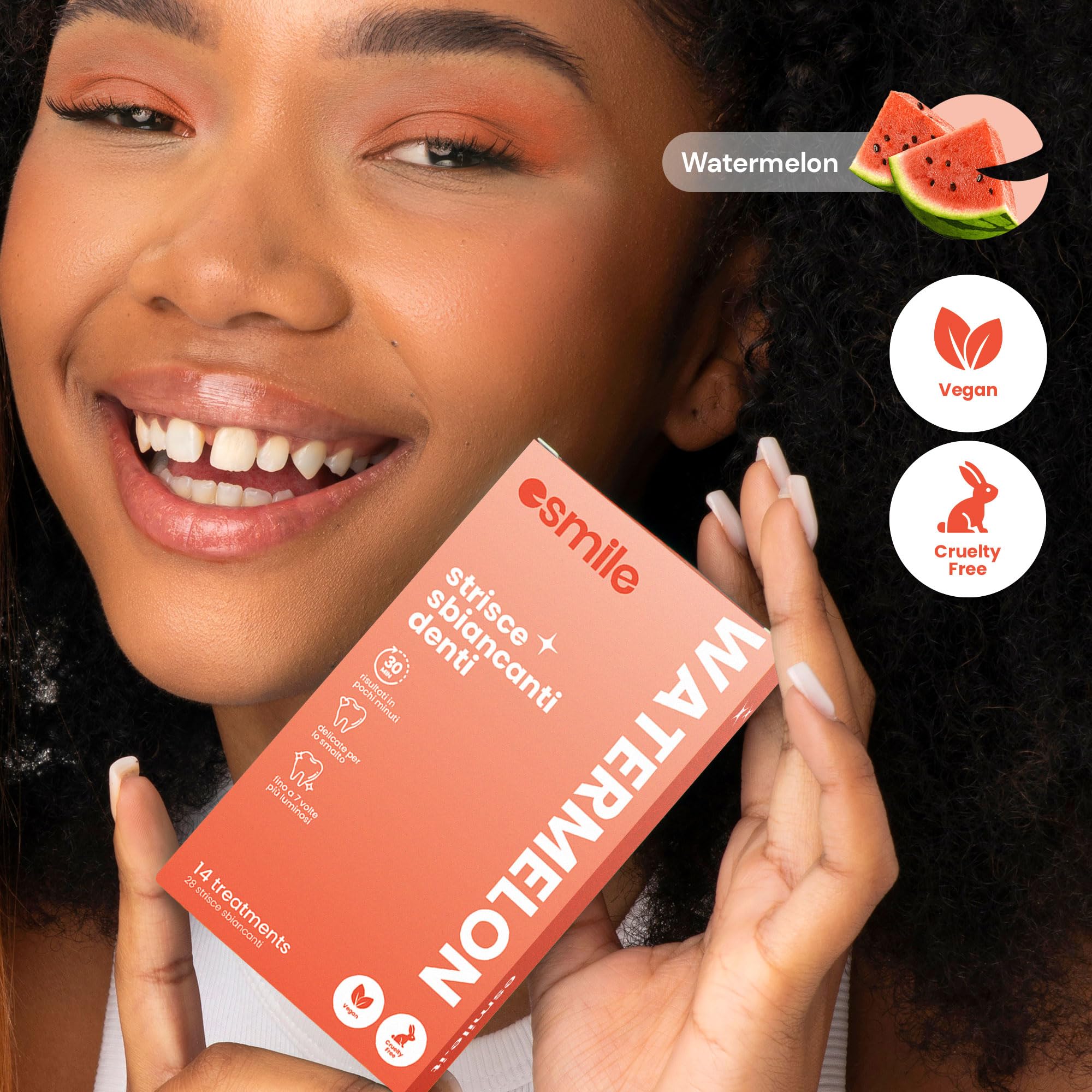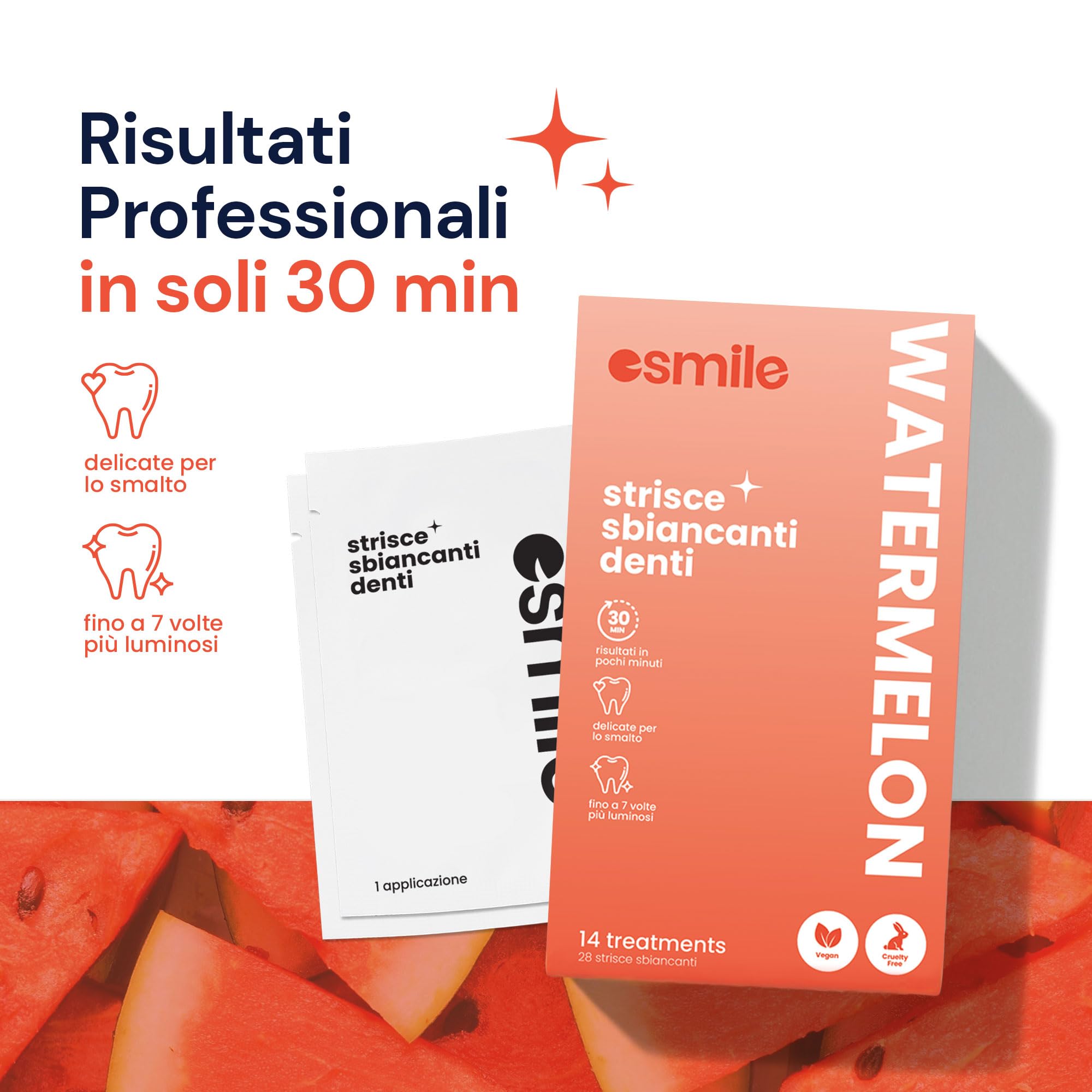 ESMILE 28 Streifen zum Aufhellen von Früchten mit Wassermelonen-Geschmack, professionelle Behandlung zu Hause, schnell und sicher, 14 Behandlungen ideal für Ihre Mundhygiene
