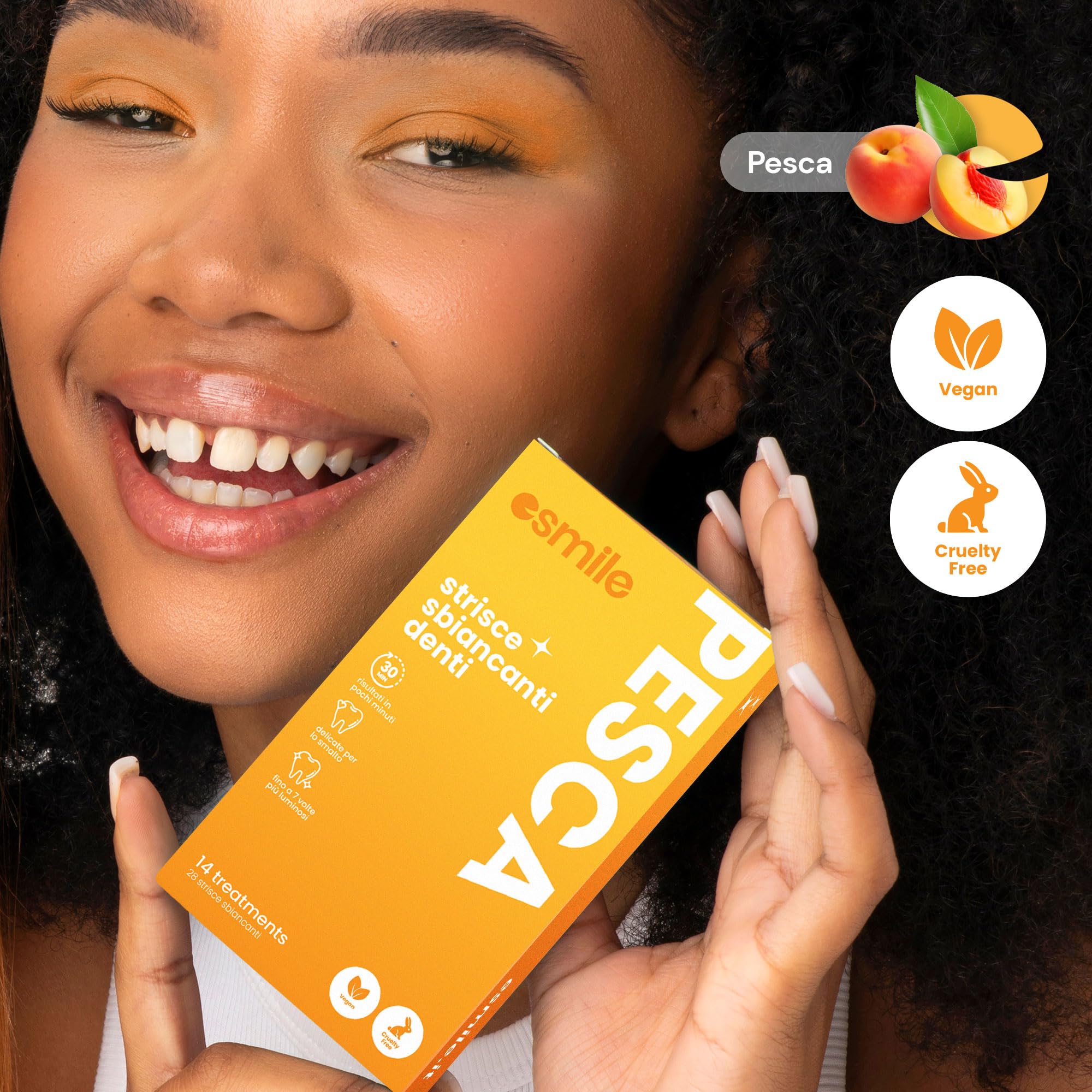 ESMILE 28 Streifen zum Aufhellen von Früchten mit Pfirsichgeschmack, professionelle Behandlung zu Hause, schnell und sicher, 14 Behandlungen ideal für Ihre Mundhygiene