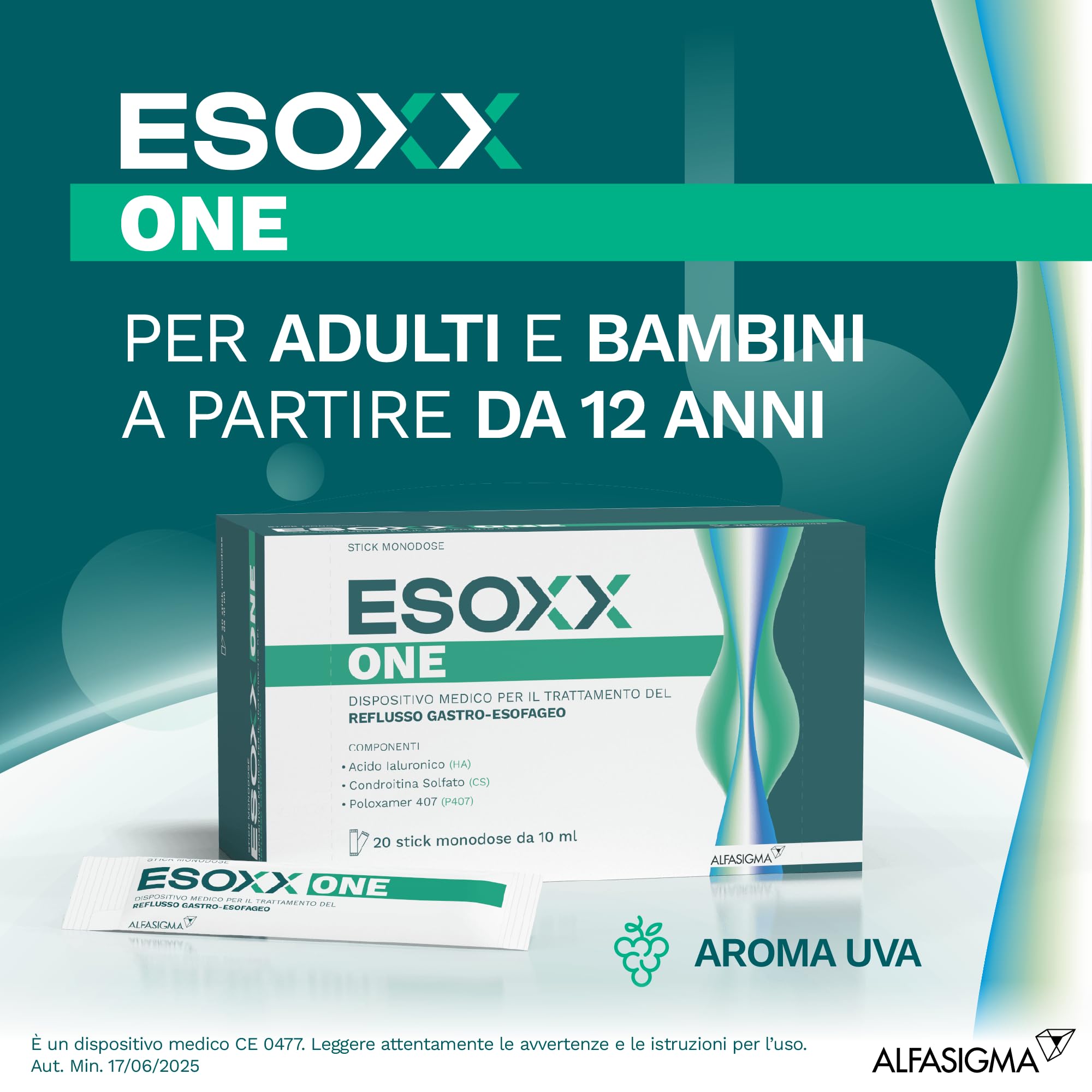 - ESOXX ONE ist eine Kombination aus Hyaluronsäure und Chondroitinsulfat, die einen originellen und innovativen Mechanismus zur Abwehr der gastroösophagealen Schleimhaut ausübt.