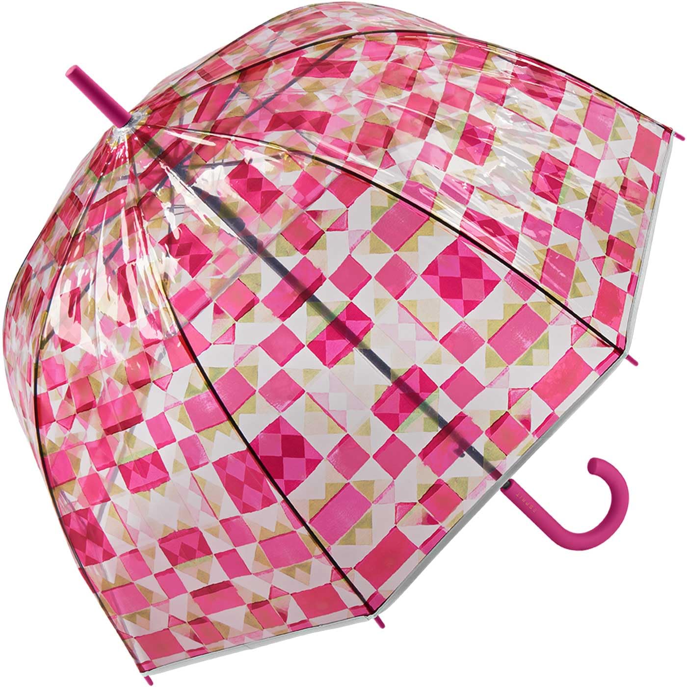 Sollten Sie ein Mensch sein, der auch bei widrigstem Wetter den Durchblick behalten möchte, ist dies genau der richtige Schirm für Sie. Unter der transparent-bunten Glocke mit geometrischem Muster finden Sie den optimalen Schutz vor Wind und Wetter, zugleich ist dieser Regenschirm topmodern.