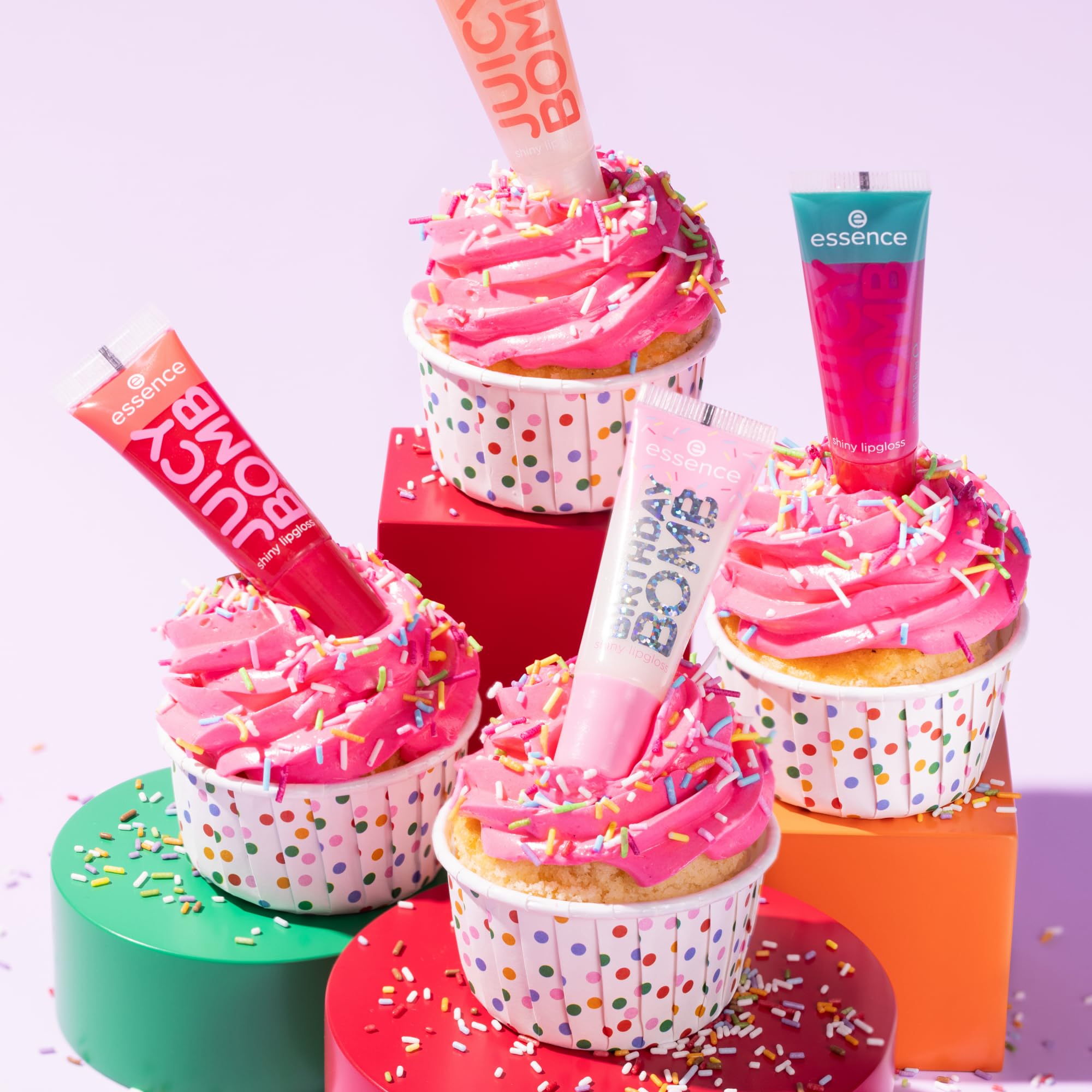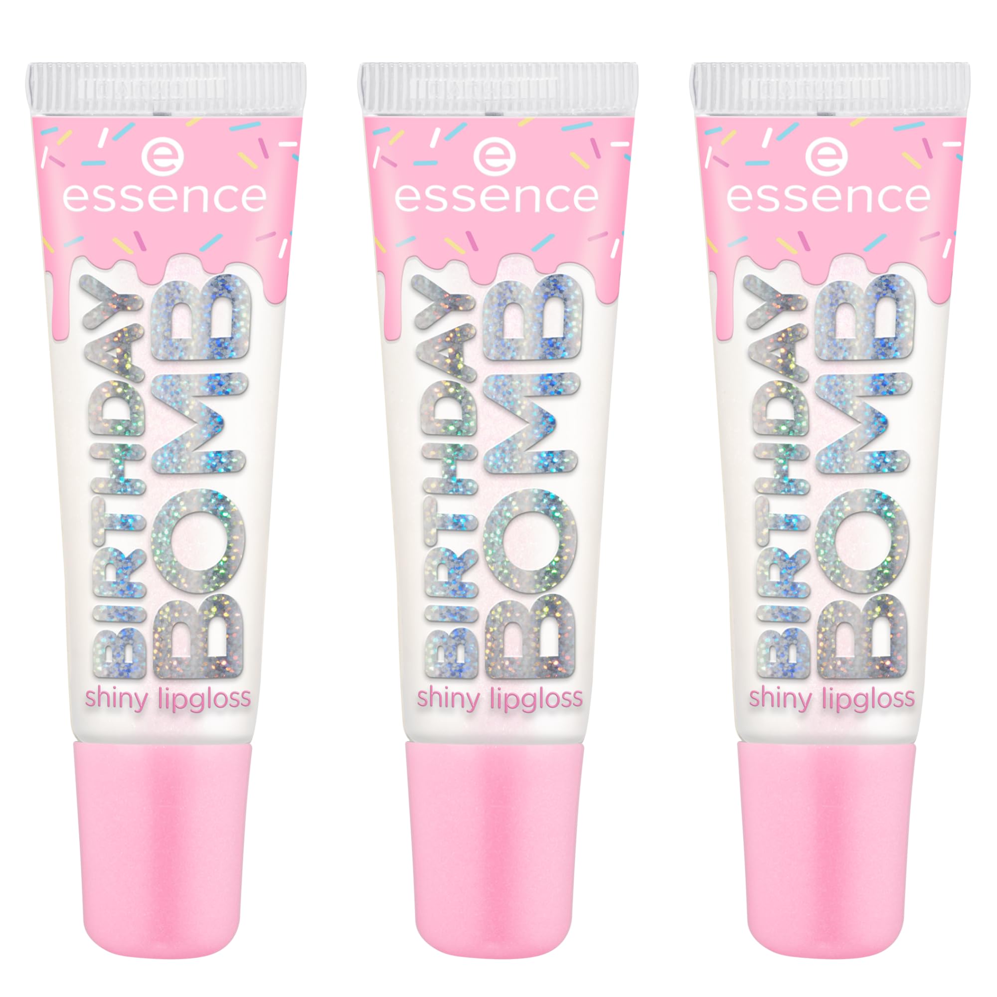 essence BIRTHDAY BOMB shiny lipgloss, Nr. 01, Transparent, natürlich, glänzend, strahlend frisch, schimmernd, vegan, ohne Parabene, ohne Mikroplastikpartikel, Nanopartikel frei, 3er Pack (3x10ml)