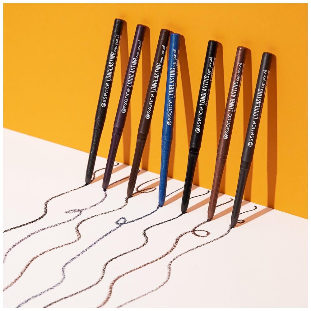 essence cosmetics LONG-LASTING eye pencil, Kajal, Nr. 34 sparkling black, schwarz, langanhaltend, farbintensiv, vegan, wasserfest, Mikroplastik Partikel frei, 2er Pack (0,28g)